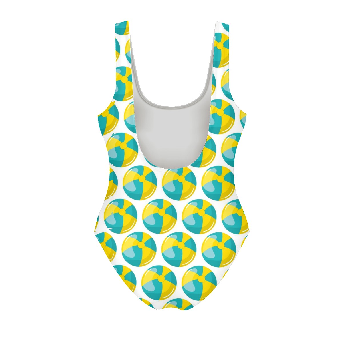 Women Swimsuit Beach Balloons Yellow Blue Lemon Pattern One Piece Swimwear