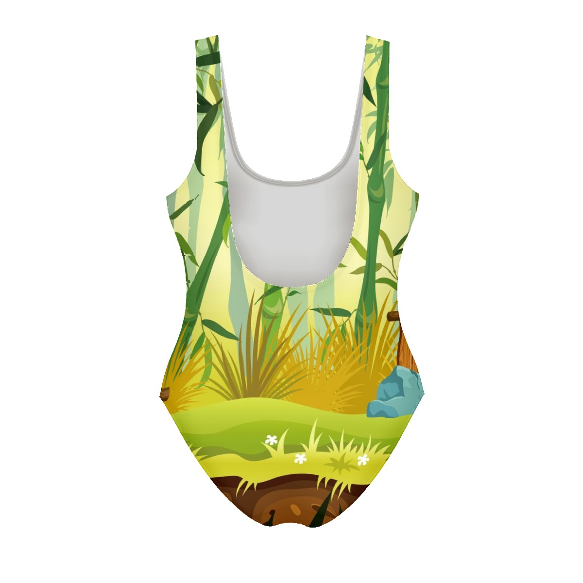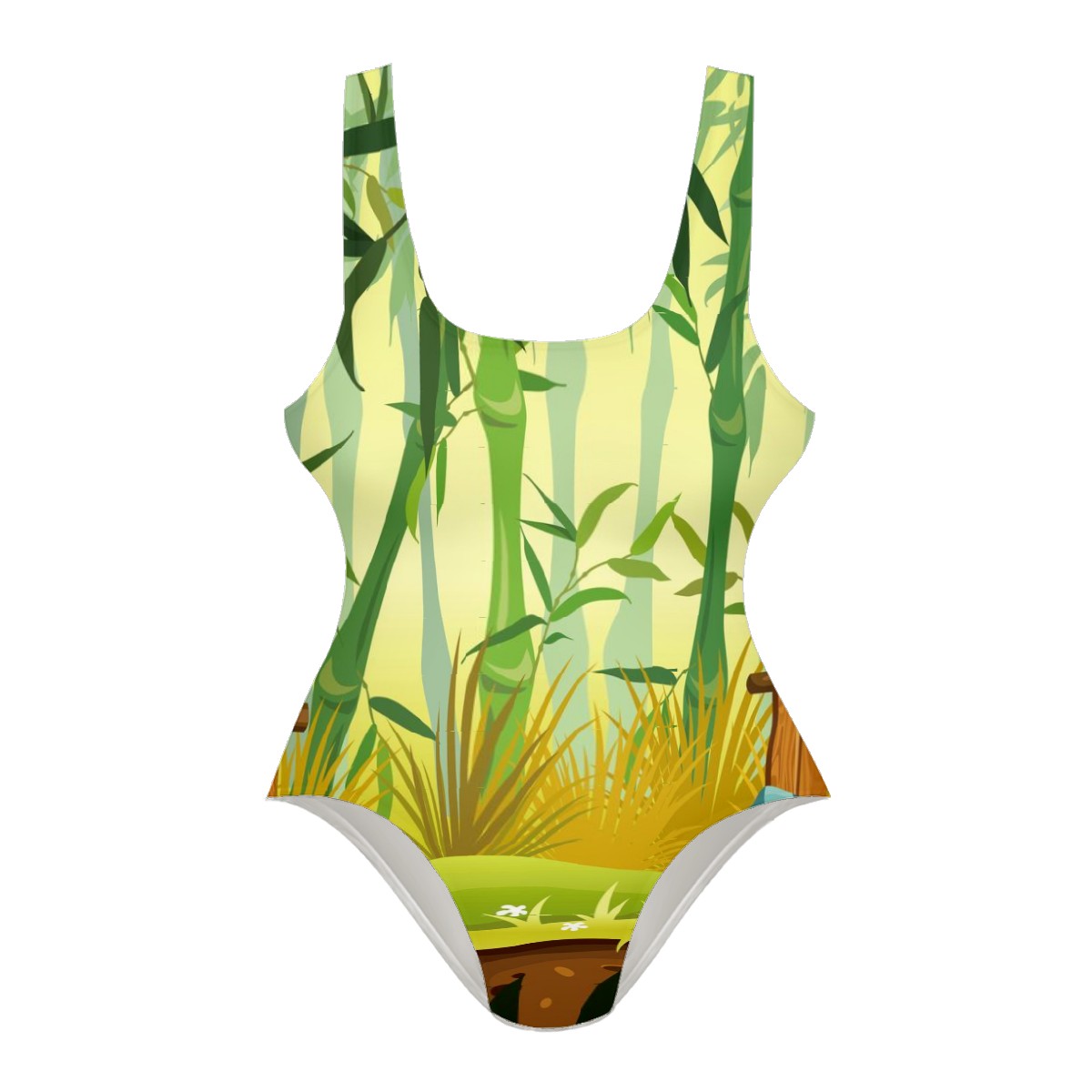 Women Swimsuit Bamboo Forest Fence Grass One Piece Swimwear