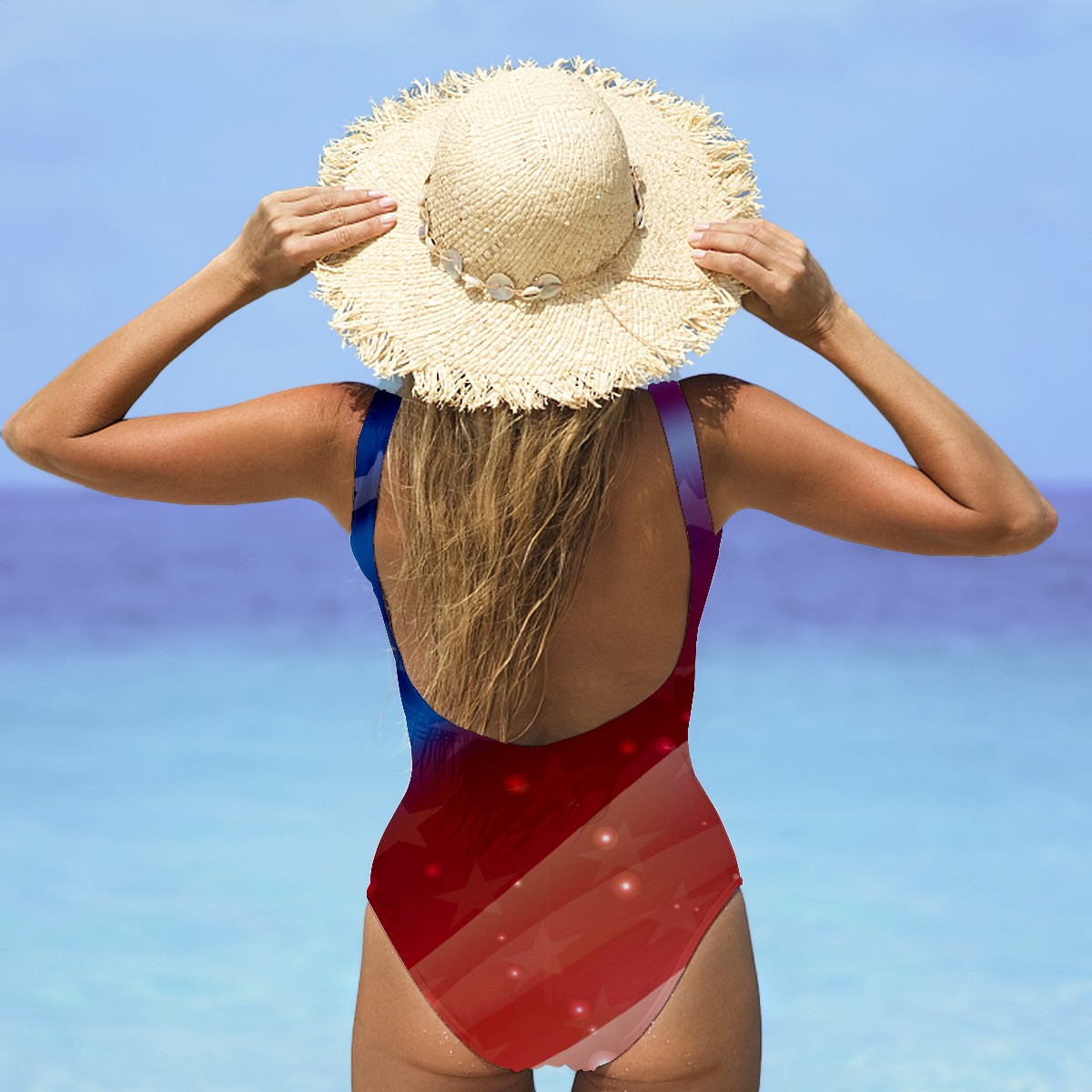 Women Swimsuit America 4th Of July Independence Day USA Flag One Piece Swimwear