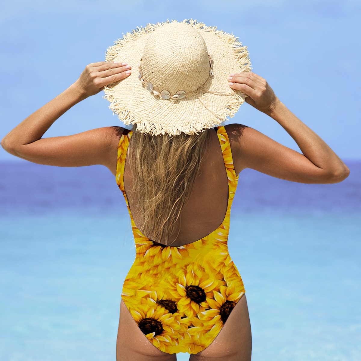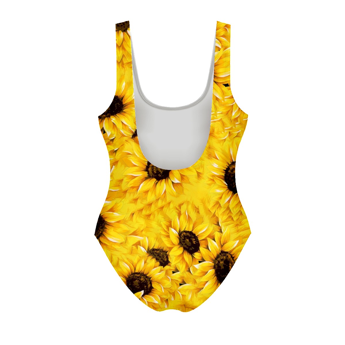 Women Swimsuit Yellow Blooming Sunflowers Pattern Petal One Piece Swimwear
