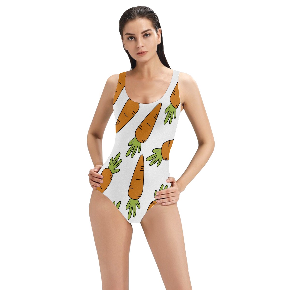 Women Swimsuit Vegetables Carrot Pattern Orange One Piece Swimwear