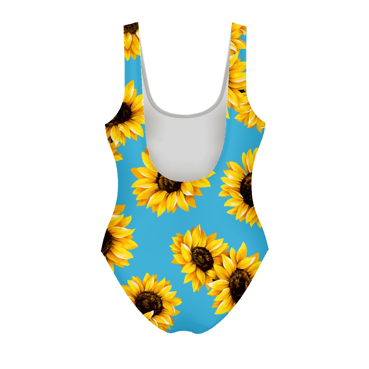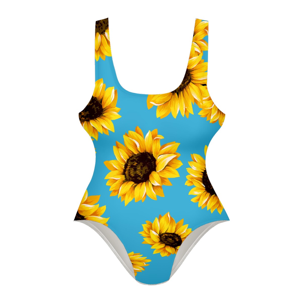 Women Swimsuit Plant Sunflower Pattern Blue Background One Piece Swimwear