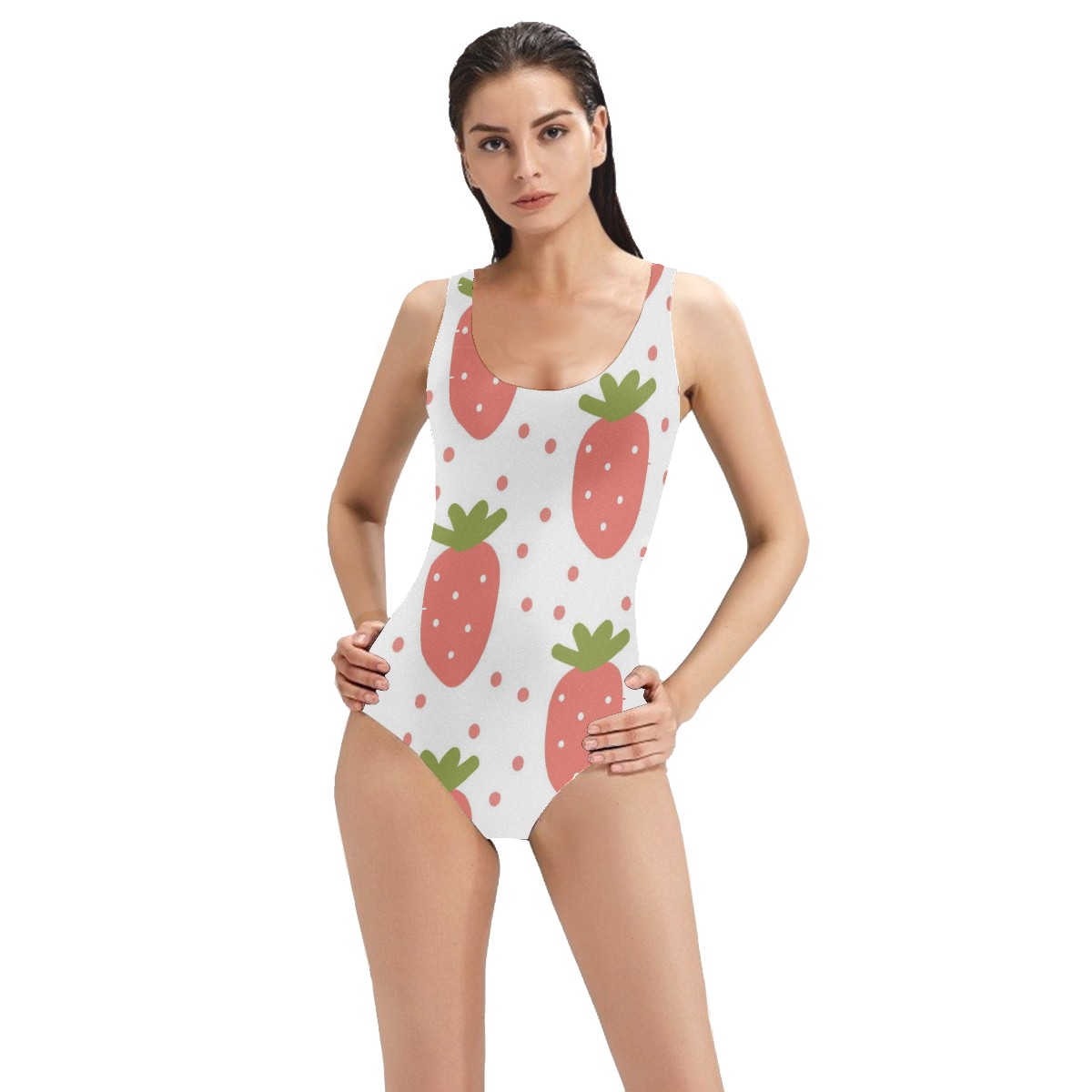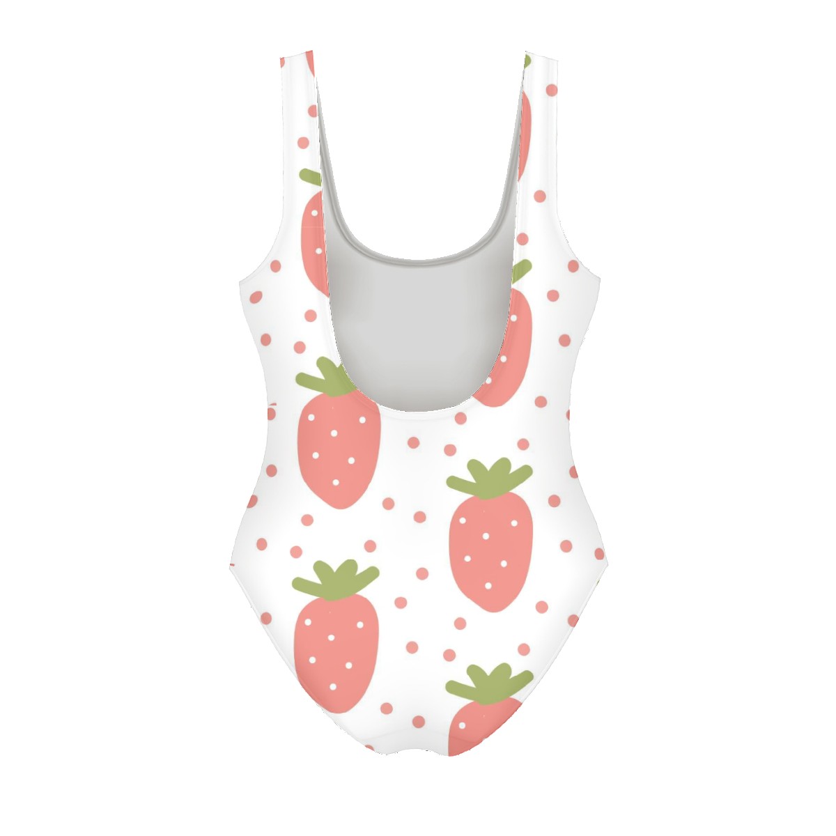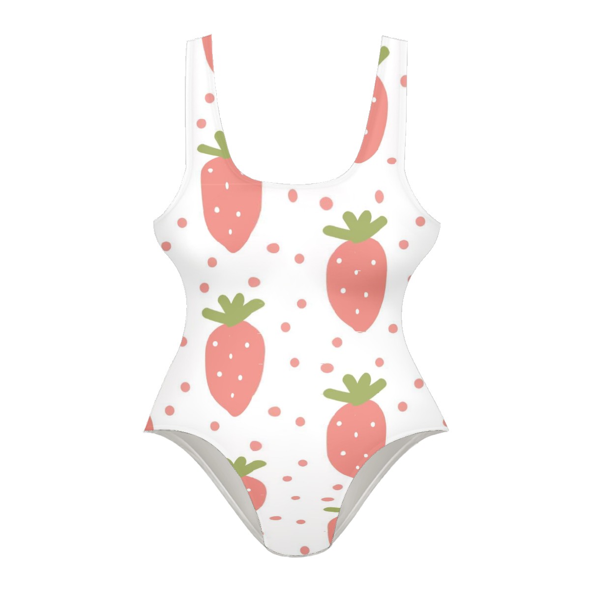 Women Swimsuit Pink Fruit Strawberry Pattern One Piece Swimwear