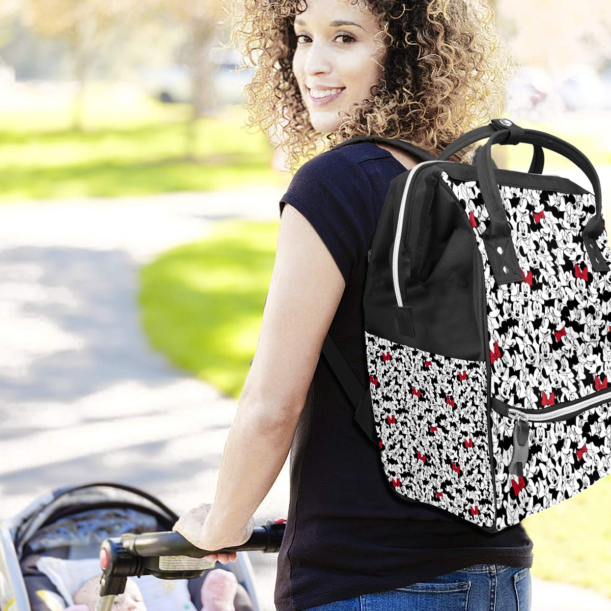Backpack Diaper Bag Mickey Mouse Minnie Red Bow Pattern Waterproof Baby Bag Mom and Dad's Diaper Backpack Lightweight Large Capacity Diaper Bag Travel Daypack