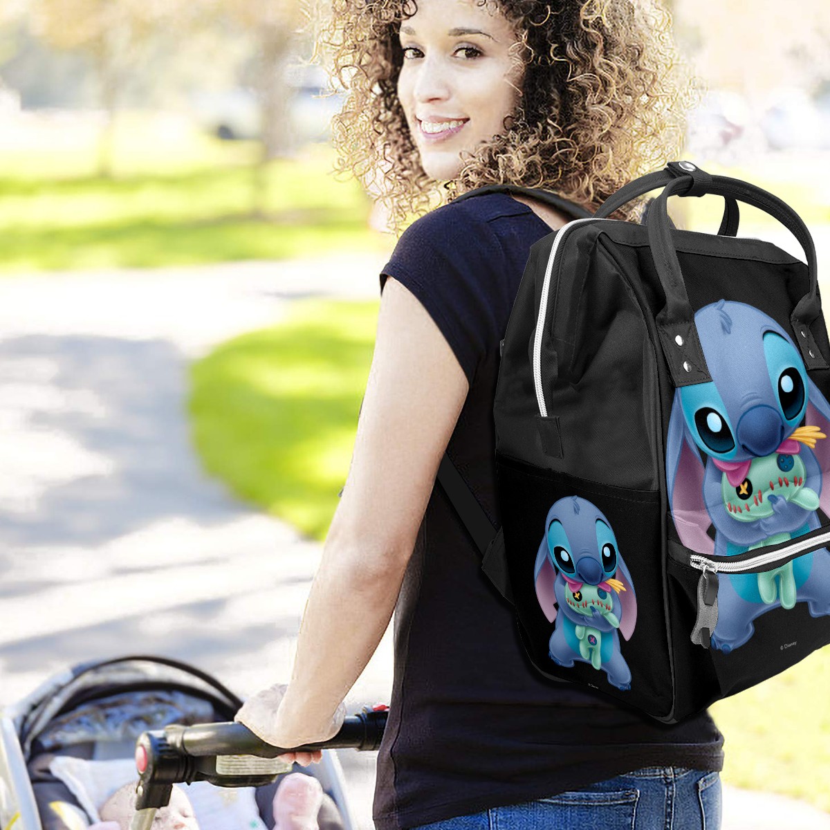 Backpack Diaper Bag Lilo Stich Stitch With Ugly Doll Black Waterproof Baby Bag Mom and Dad's Diaper Backpack Lightweight Large Capacity Diaper Bag Travel Daypack