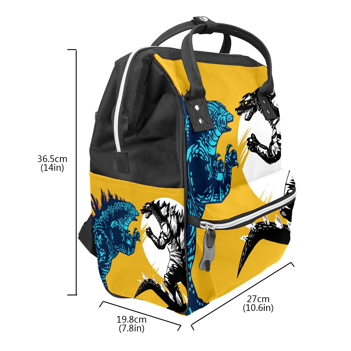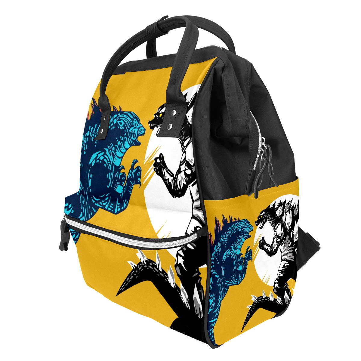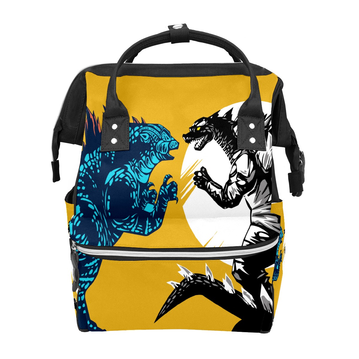 Backpack Diaper Bag Two Godzilla Dinosaur Fight Waterproof Baby Bag Mom and Dad's Diaper Backpack Lightweight Large Capacity Diaper Bag Travel Daypack