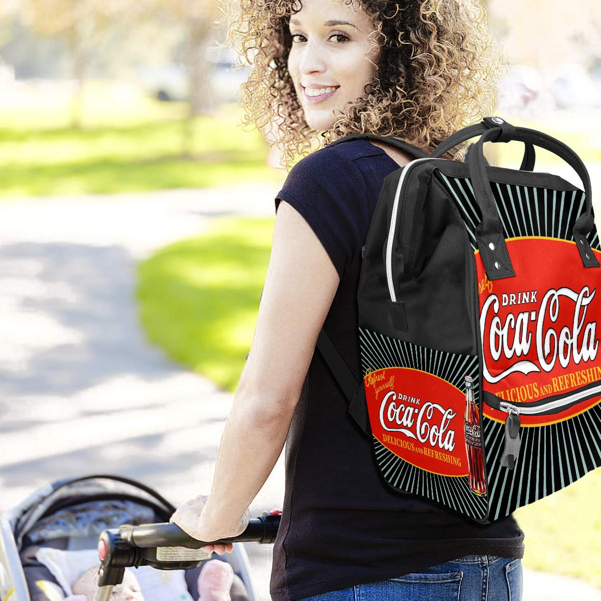 Backpack Diaper Bag Coca Cola Waterproof Baby Bag Mom and Dad's Diaper Backpack Lightweight Large Capacity Diaper Bag Travel Daypack