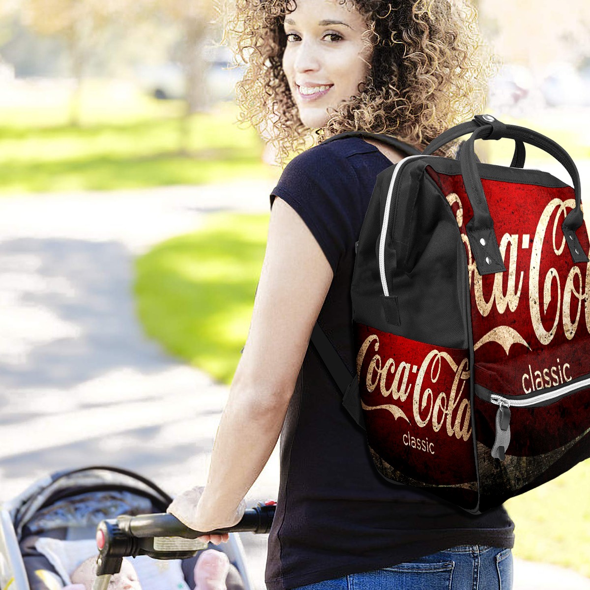 Backpack Diaper Bag Vintage Classic Coca-Cola Waterproof Baby Bag Mom and Dad's Diaper Backpack Lightweight Large Capacity Diaper Bag Travel Daypack