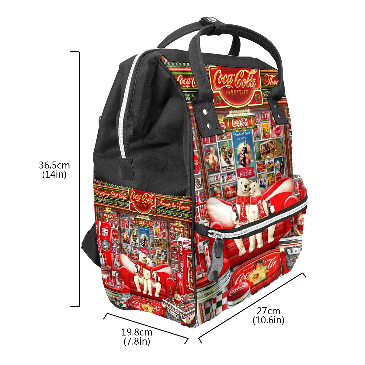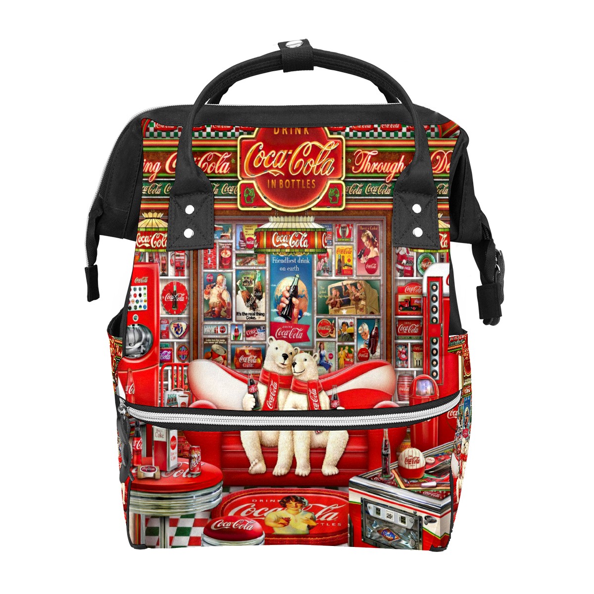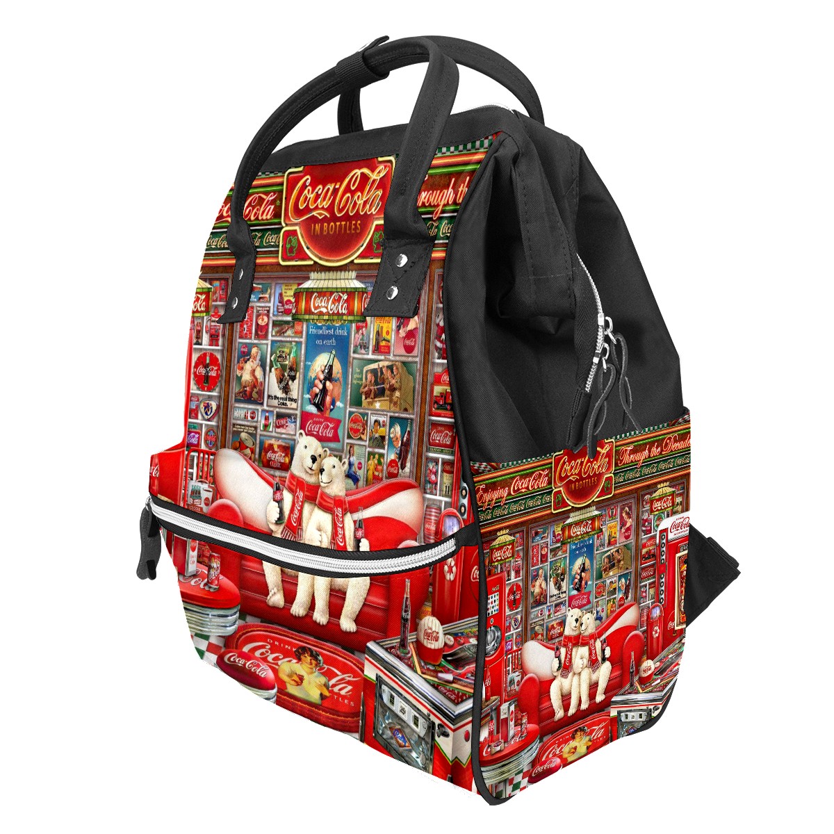 Backpack Diaper Bag Coca-Cola White Bear Vintage Waterproof Baby Bag Mom and Dad's Diaper Backpack Lightweight Large Capacity Diaper Bag Travel Daypack