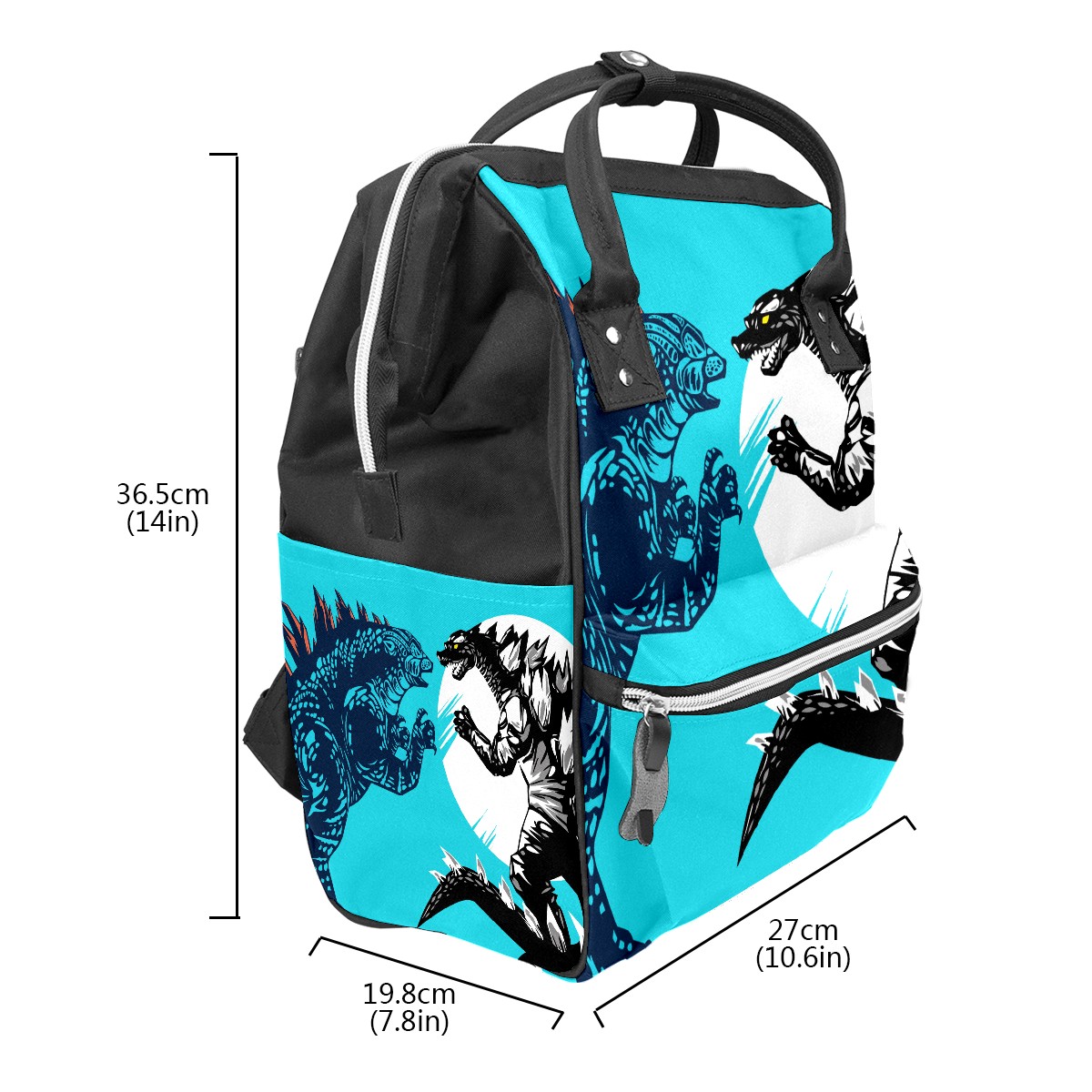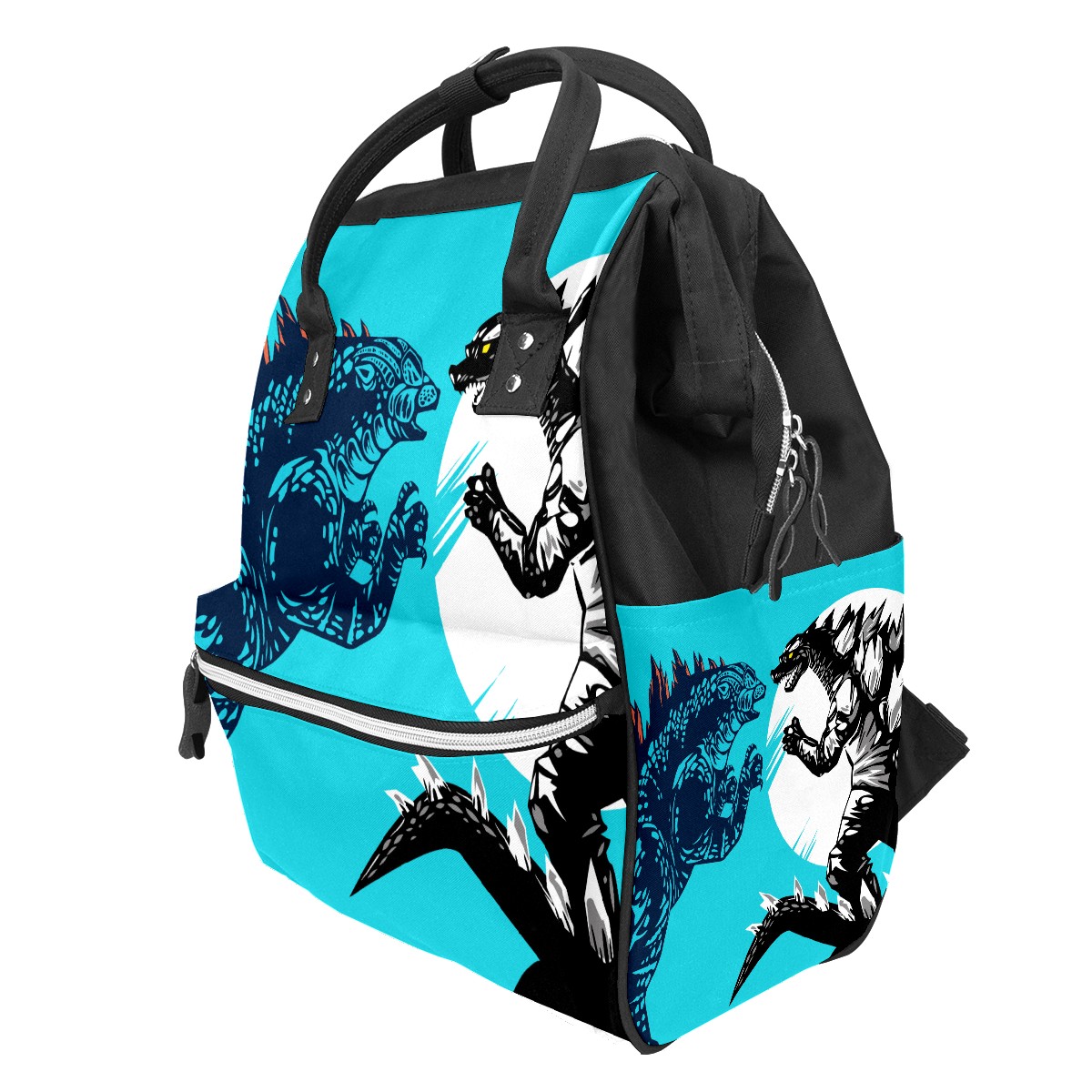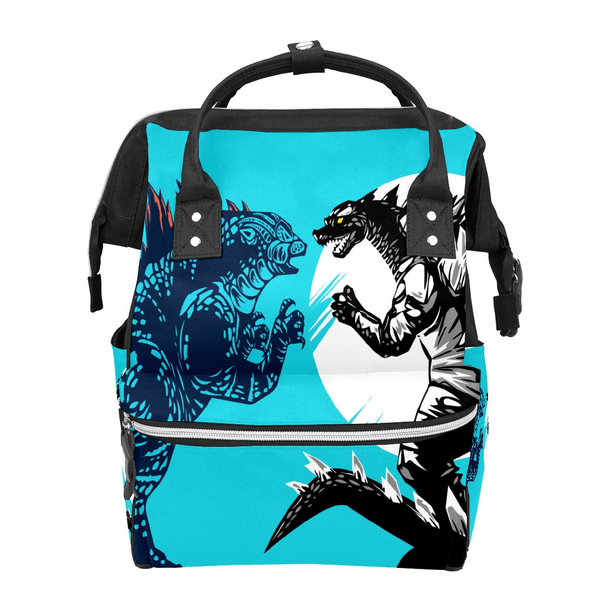 Backpack Diaper Bag Two Godzilla Dinosaur Fight Blue Waterproof Baby Bag Mom and Dad's Diaper Backpack Lightweight Large Capacity Diaper Bag Travel Daypack