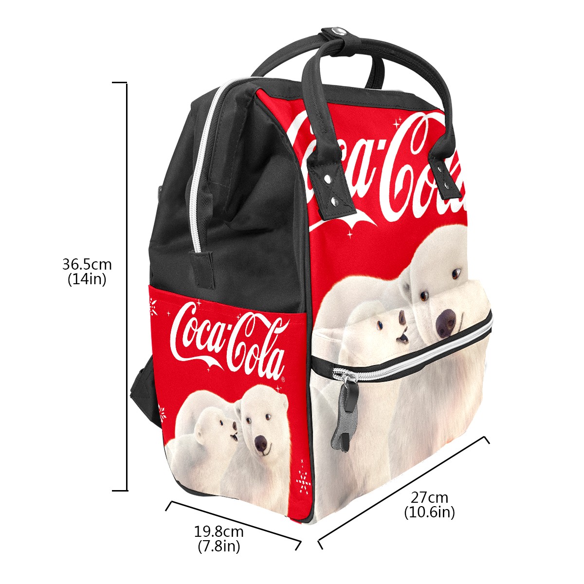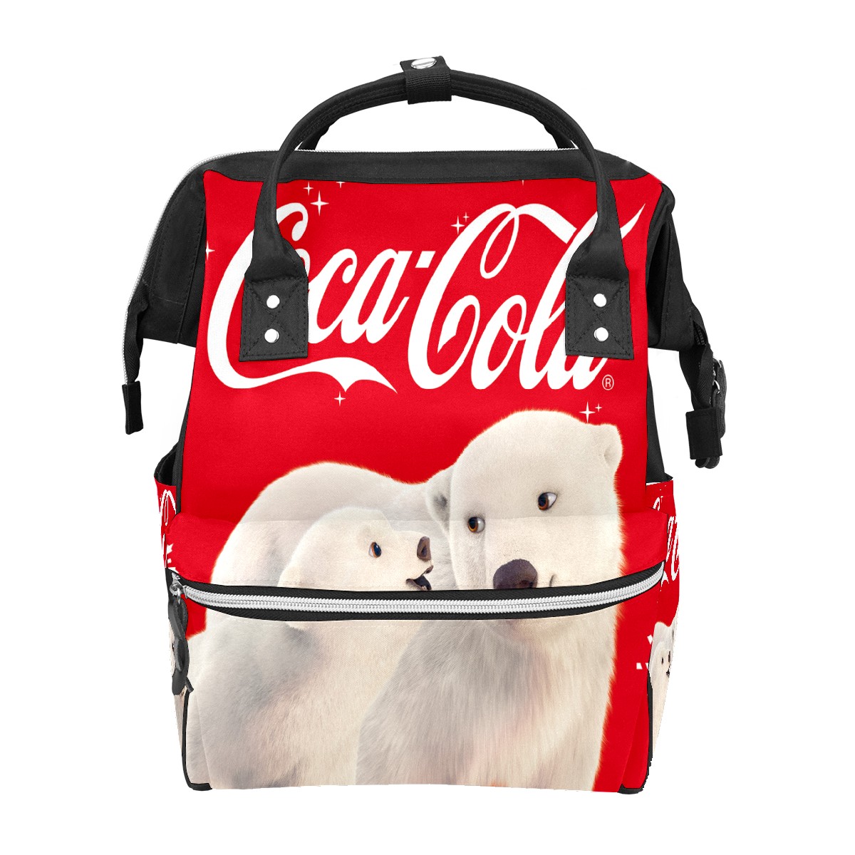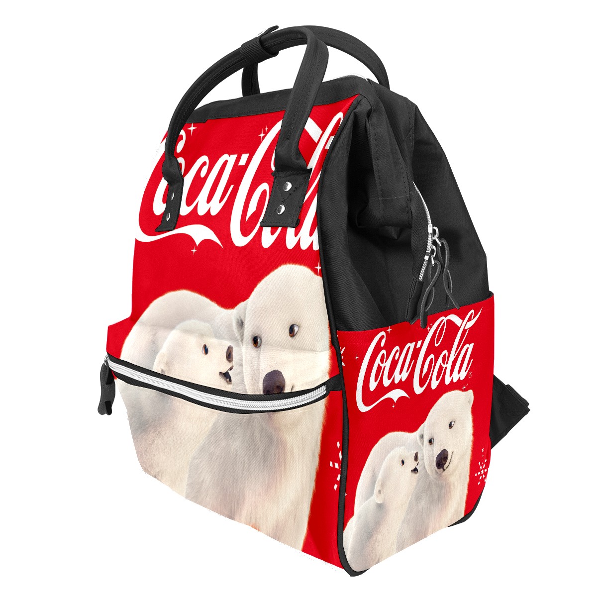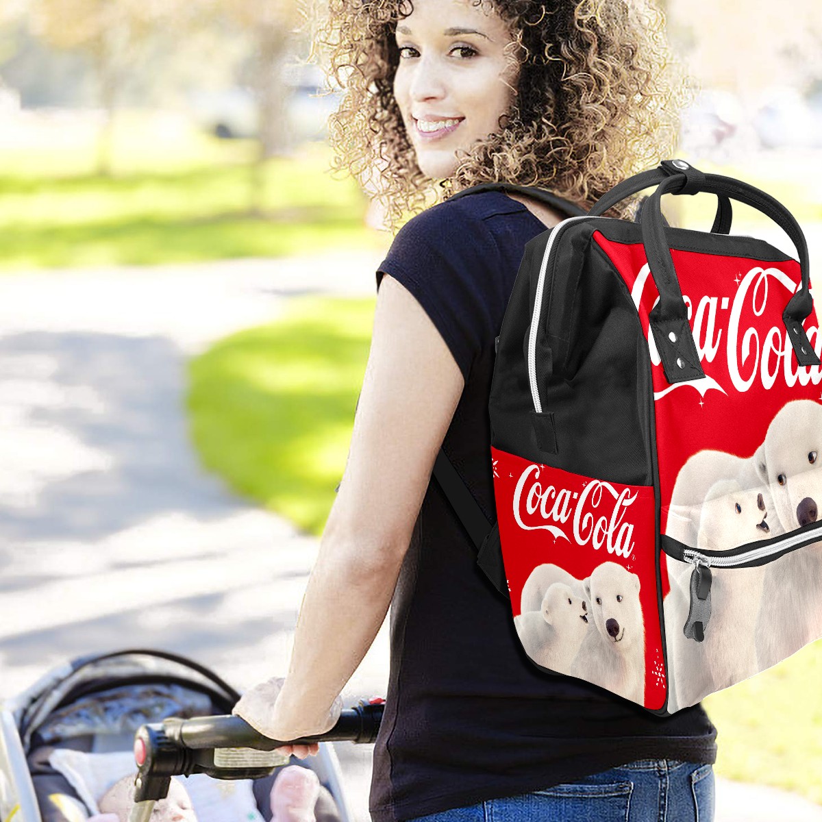 Backpack Diaper Bag Coca-Cola White Polar Bear Snowflake Waterproof Baby Bag Mom and Dad's Diaper Backpack Lightweight Large Capacity Diaper Bag Travel Daypack