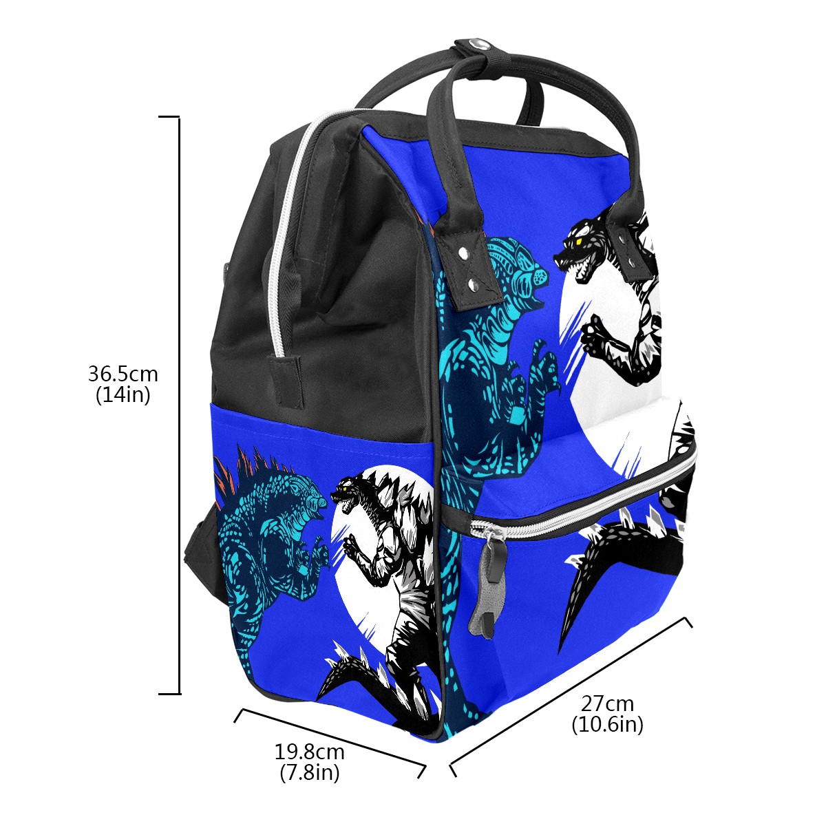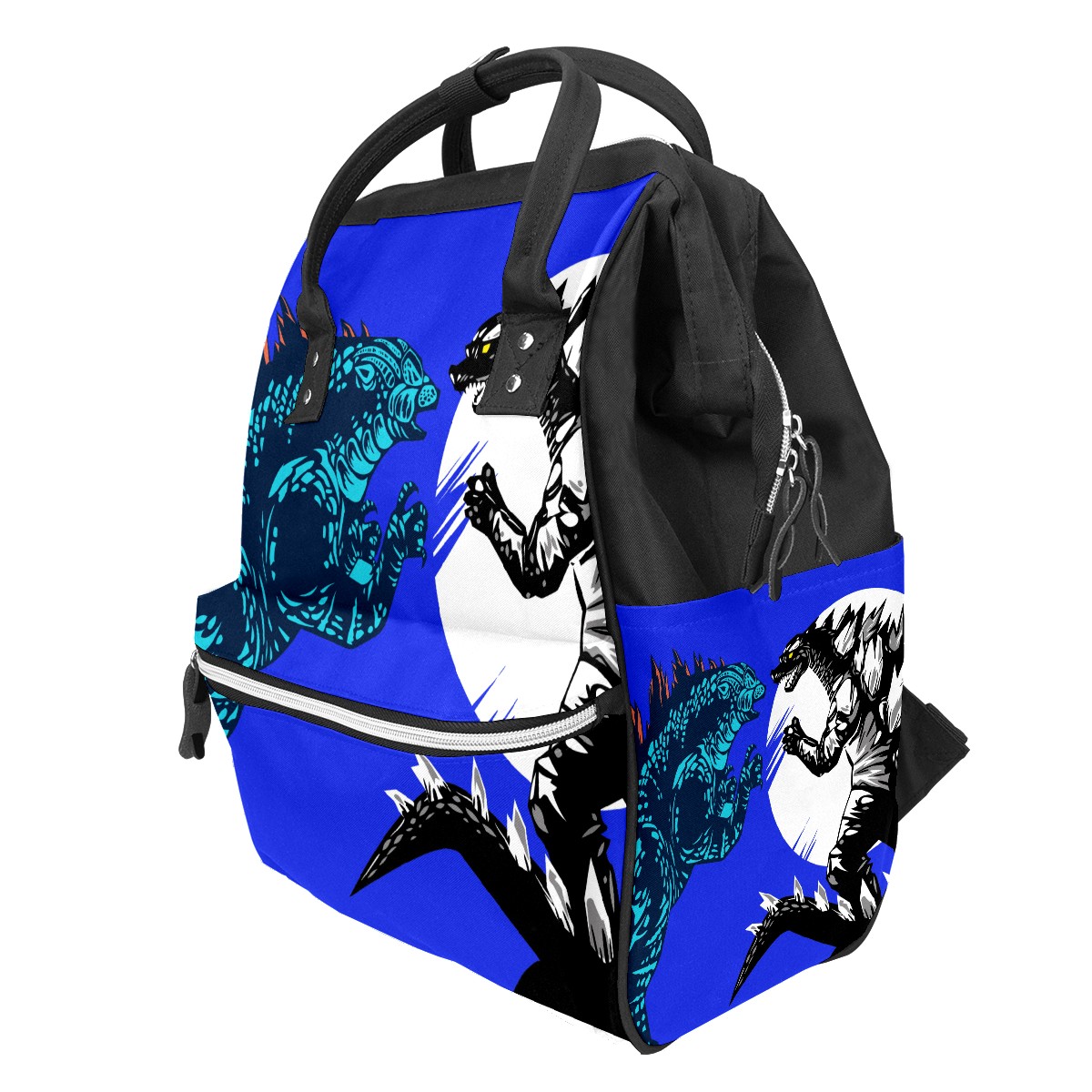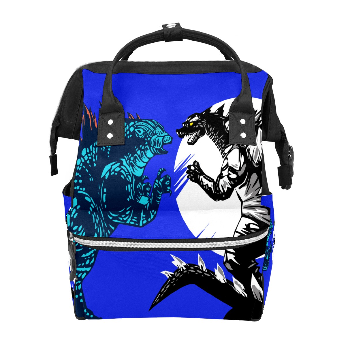 Backpack Diaper Bag Two Godzilla Dinosaur Fight Dark Blue Waterproof Baby Bag Mom and Dad's Diaper Backpack Lightweight Large Capacity Diaper Bag Travel Daypack
