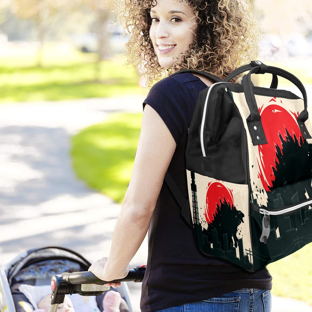 Backpack Diaper Bag Godzilla Waterproof Baby Bag Mom and Dad's Diaper Backpack Lightweight Large Capacity Diaper Bag Travel Daypack