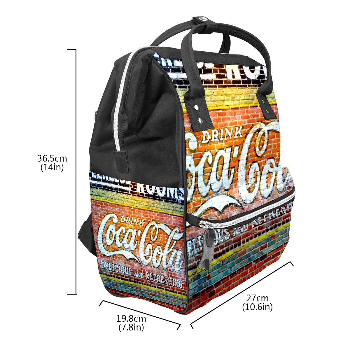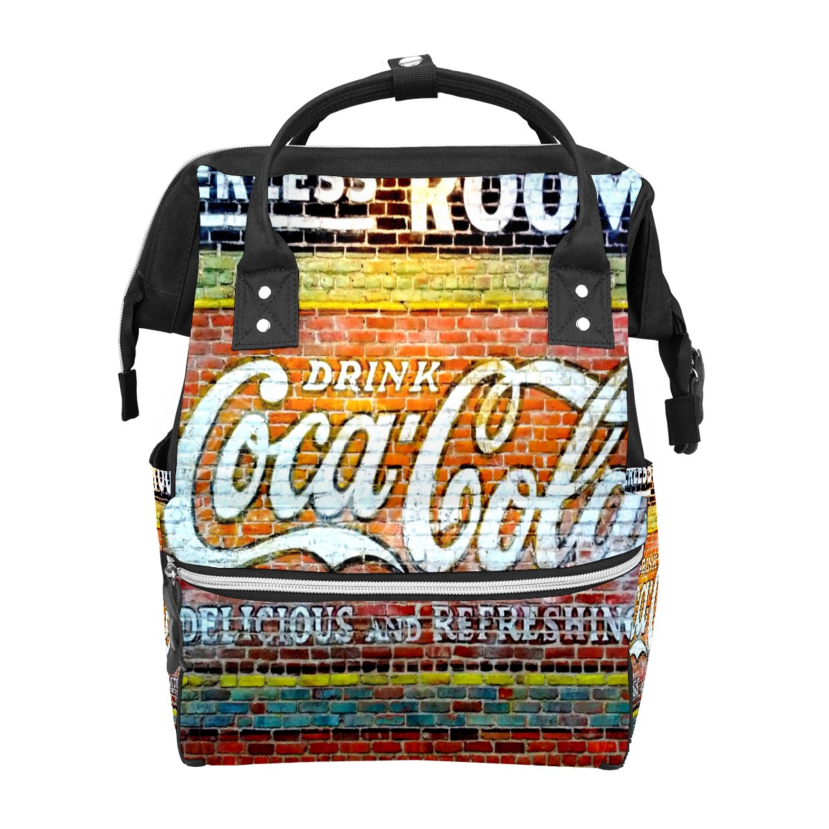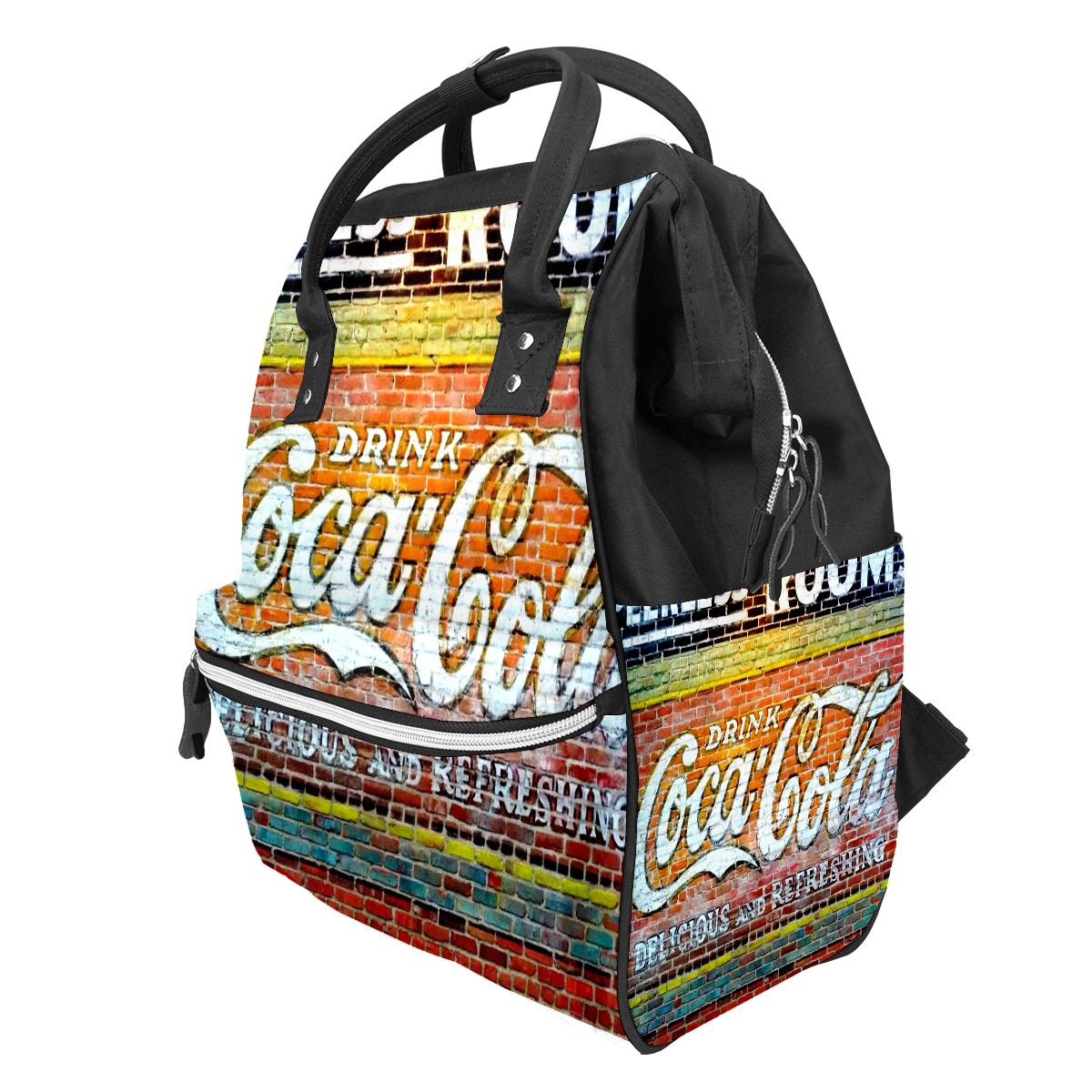Backpack Diaper Bag Retro Coca Cola Brick Wall Waterproof Baby Bag Mom and Dad's Diaper Backpack Lightweight Large Capacity Diaper Bag Travel Daypack