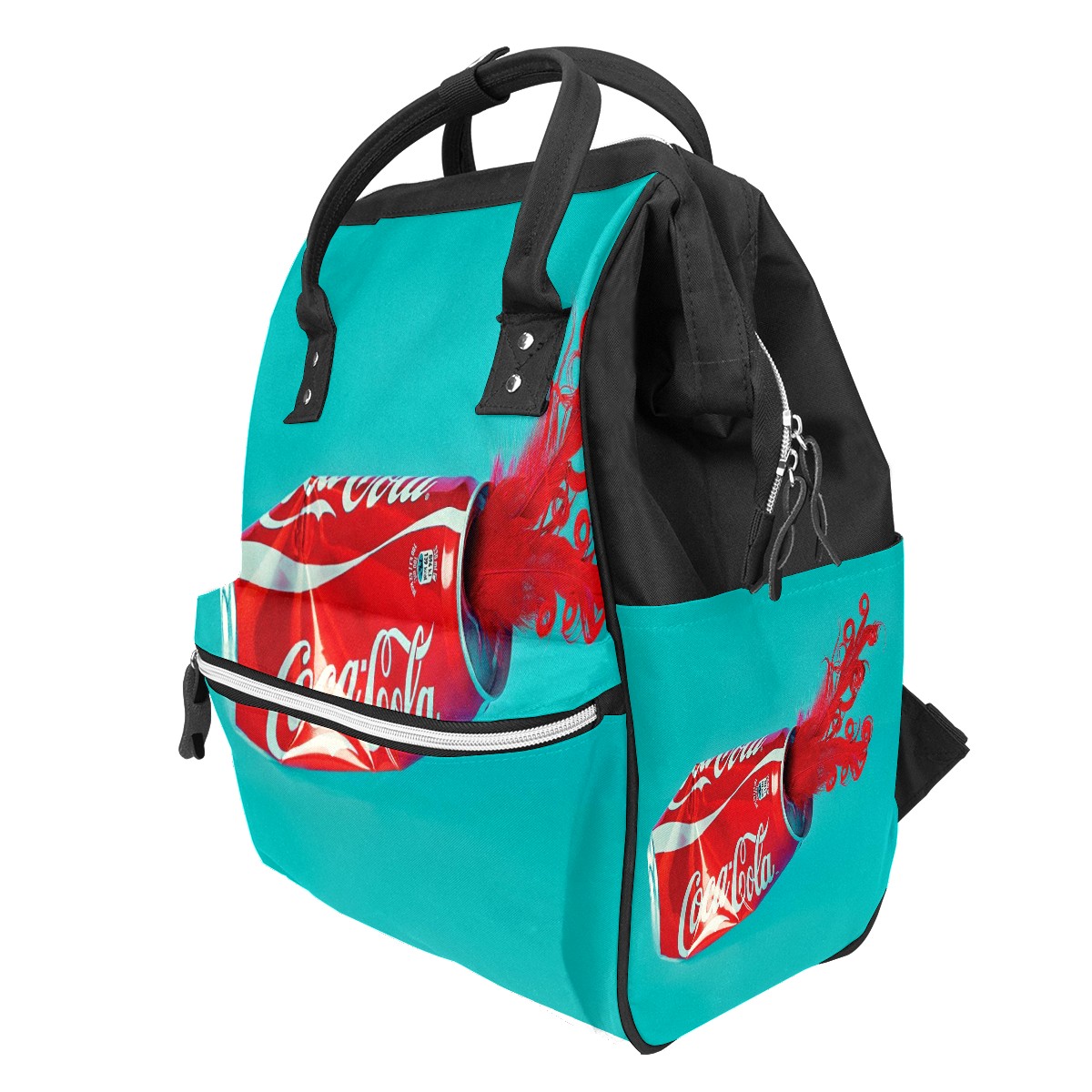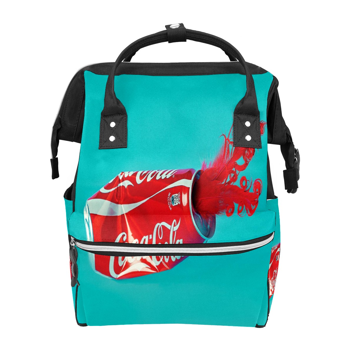 Backpack Diaper Bag Coca-Cola With Feather On Blue Waterproof Baby Bag Mom and Dad's Diaper Backpack Lightweight Large Capacity Diaper Bag Travel Daypack