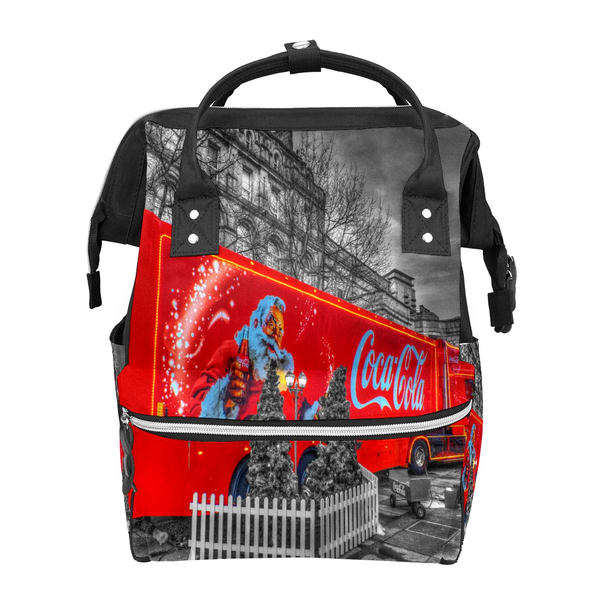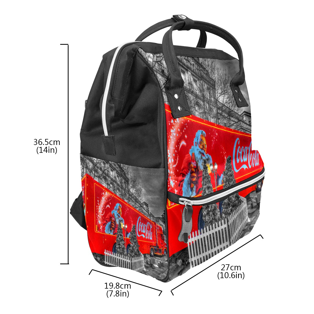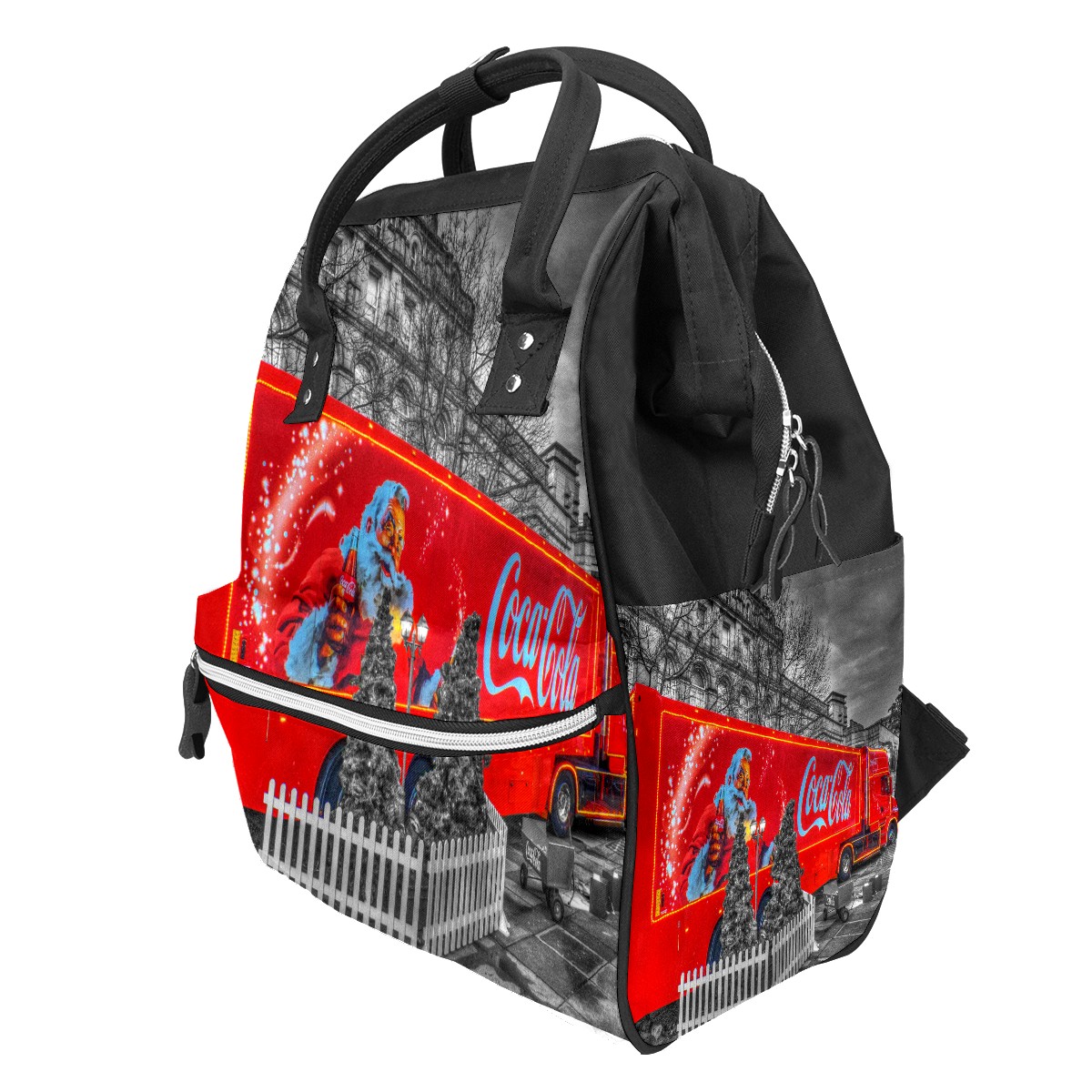 Backpack Diaper Bag Coca-Cola Truck Christmas Santa Claus Waterproof Baby Bag Mom and Dad's Diaper Backpack Lightweight Large Capacity Diaper Bag Travel Daypack
