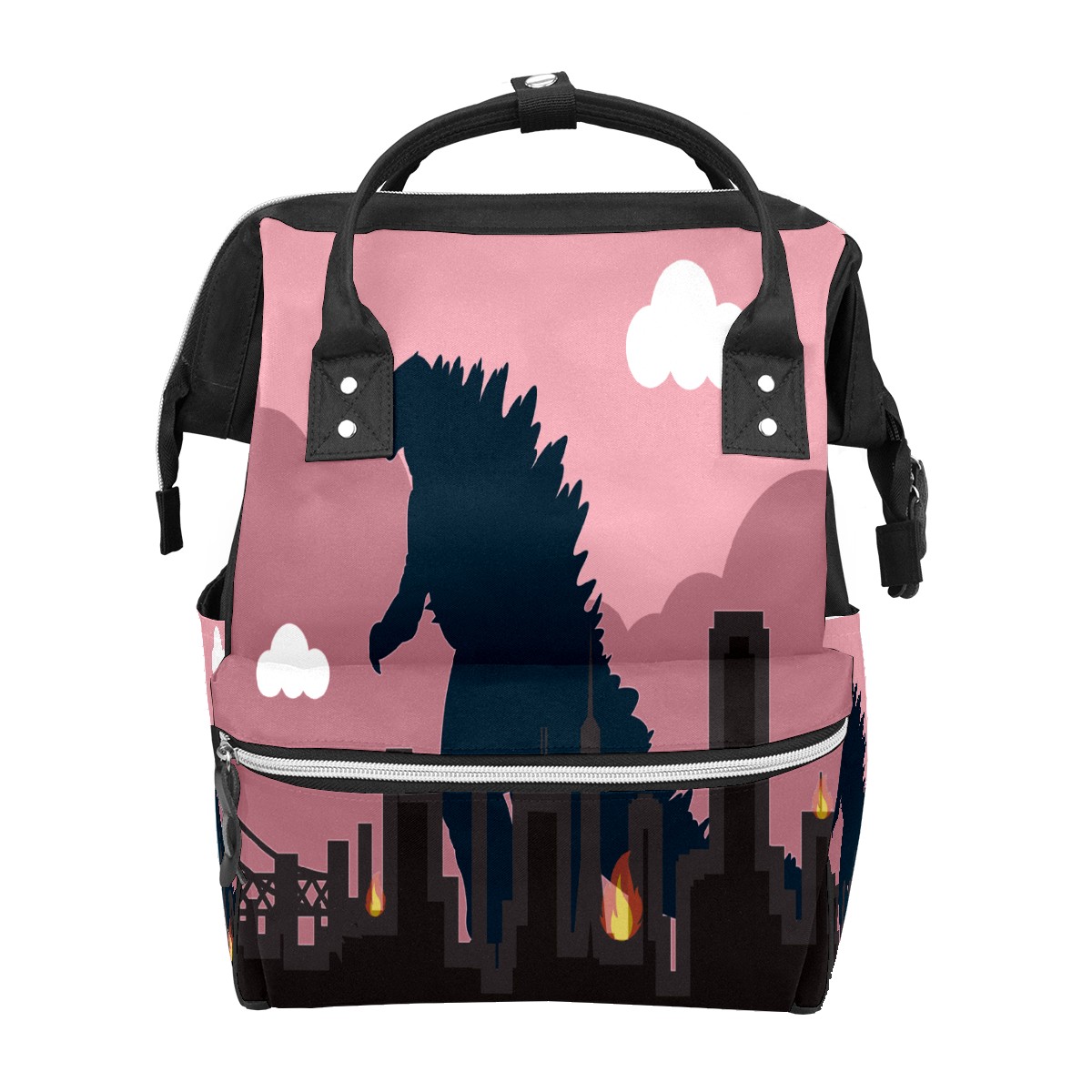 Backpack Diaper Bag Godzilla Dinosaur Waterproof Baby Bag Mom and Dad's Diaper Backpack Lightweight Large Capacity Diaper Bag Travel Daypack