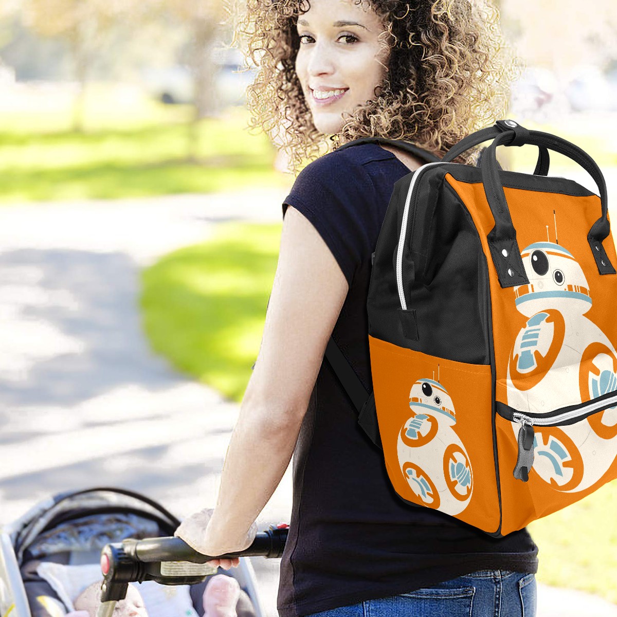 Backpack Diaper Bag Star Wars Robot Bb-8 Waterproof Baby Bag Mom and Dad's Diaper Backpack Lightweight Large Capacity Diaper Bag Travel Daypack