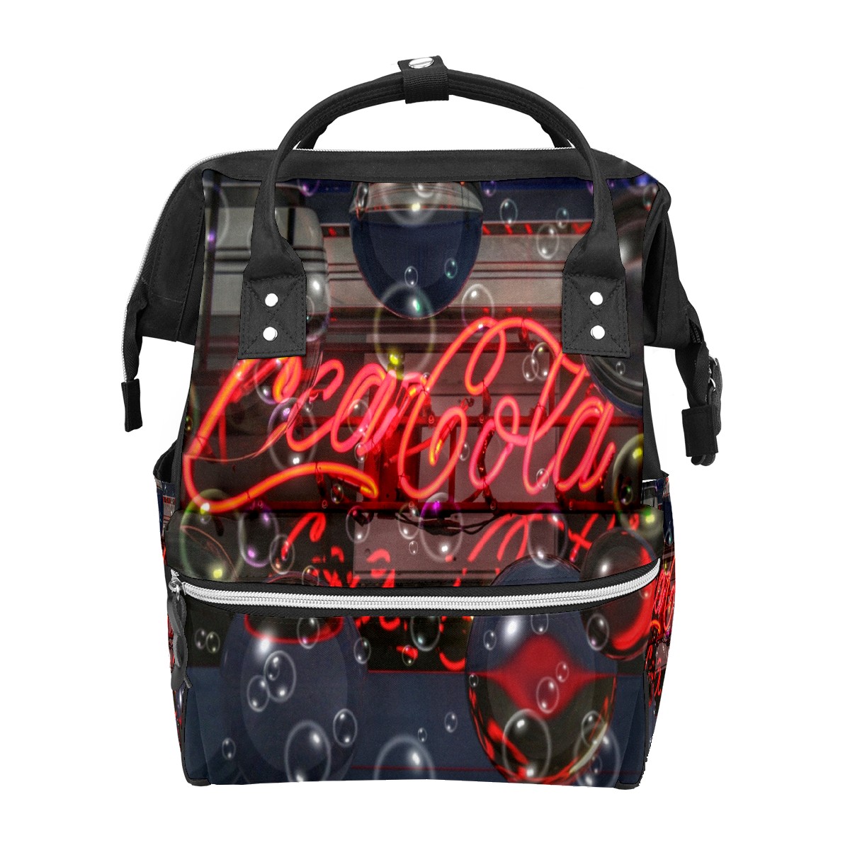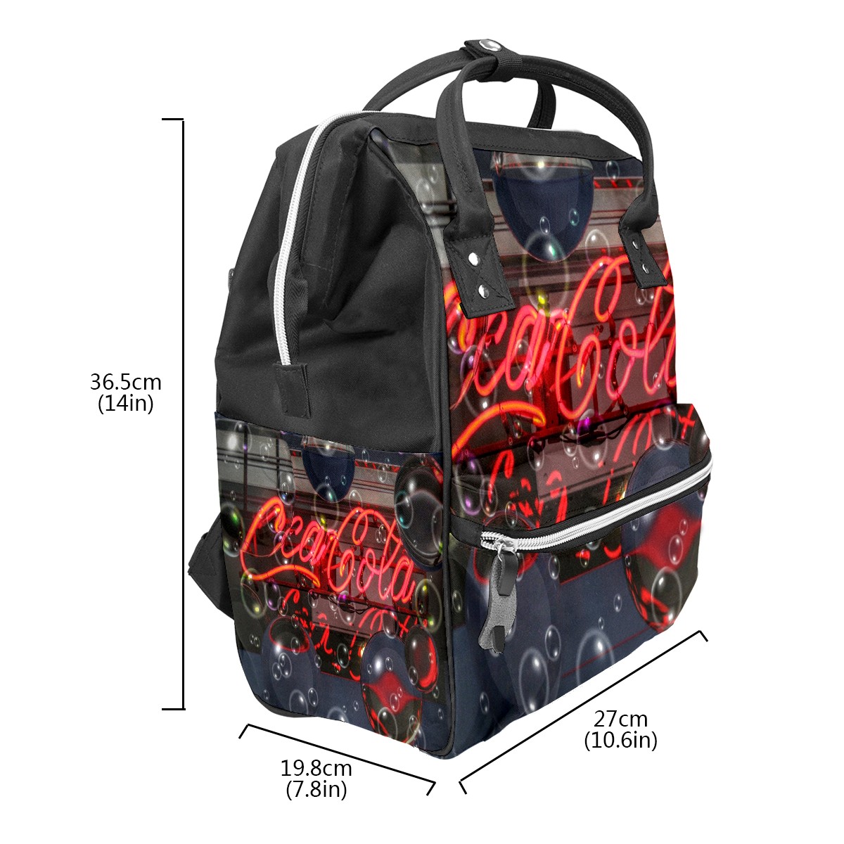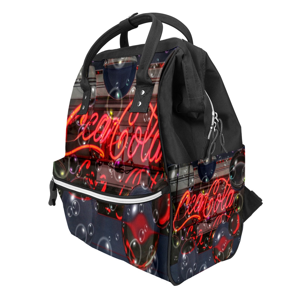 Backpack Diaper Bag Disco Coca-Cola Neon Bubbles Waterproof Baby Bag Mom and Dad's Diaper Backpack Lightweight Large Capacity Diaper Bag Travel Daypack