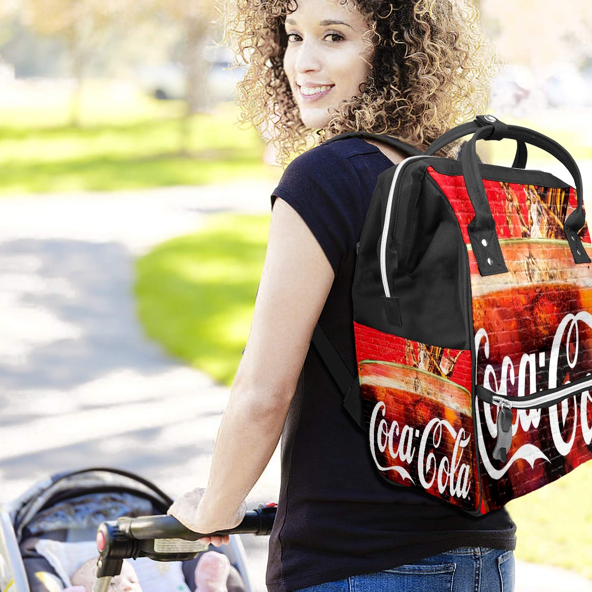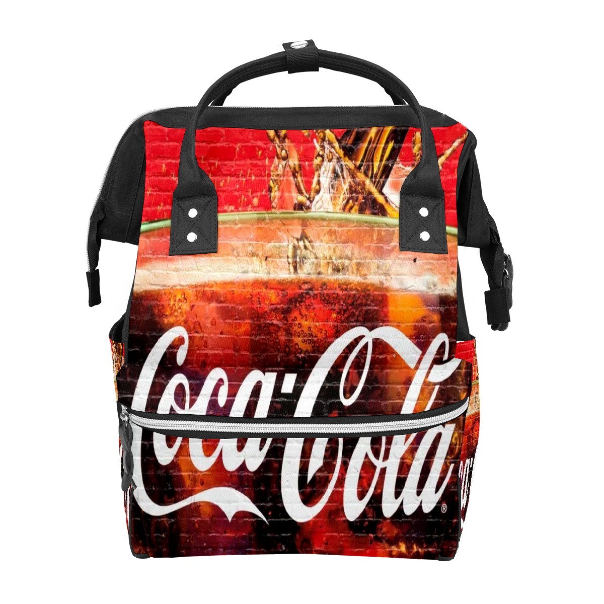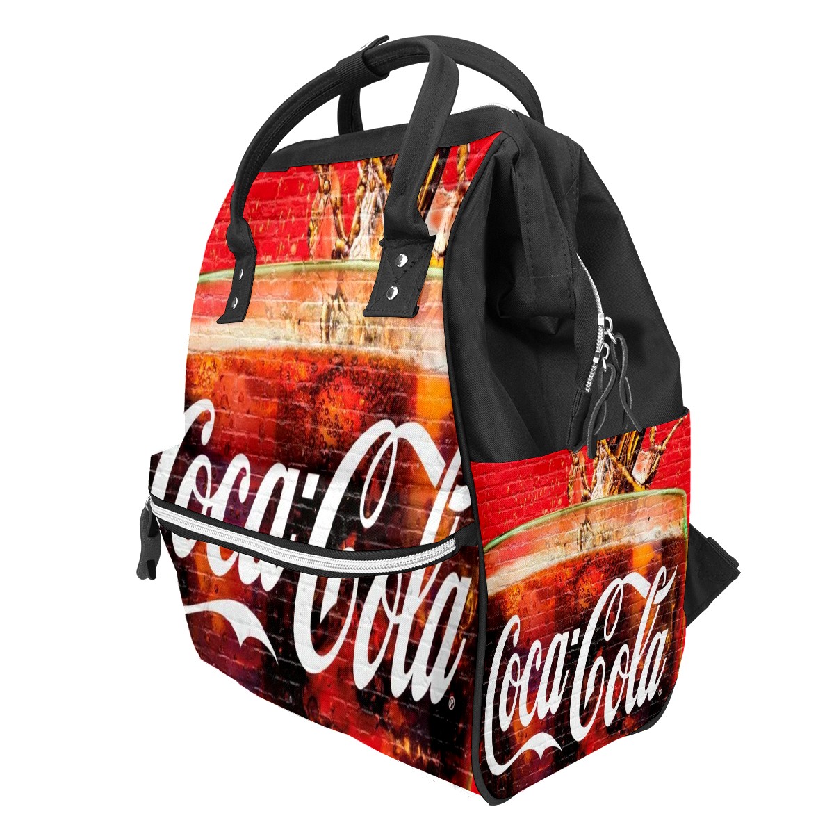 Backpack Diaper Bag Coca-Cola On Red Bricks Wall Waterproof Baby Bag Mom and Dad's Diaper Backpack Lightweight Large Capacity Diaper Bag Travel Daypack