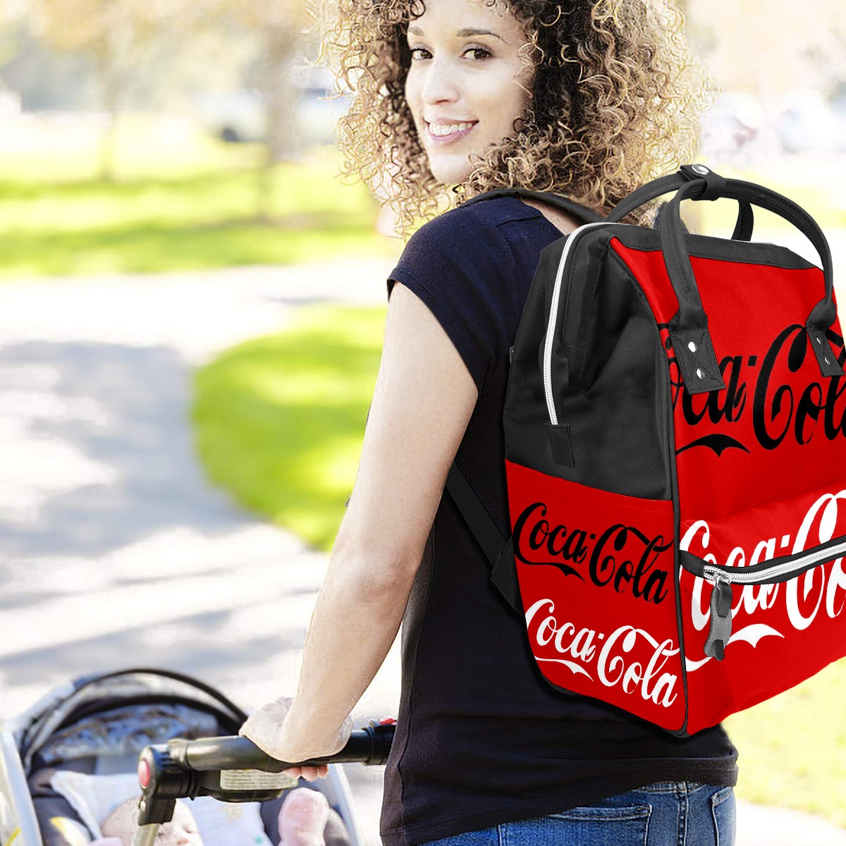 Backpack Diaper Bag Coca-Cola Red Black Waterproof Baby Bag Mom and Dad's Diaper Backpack Lightweight Large Capacity Diaper Bag Travel Daypack