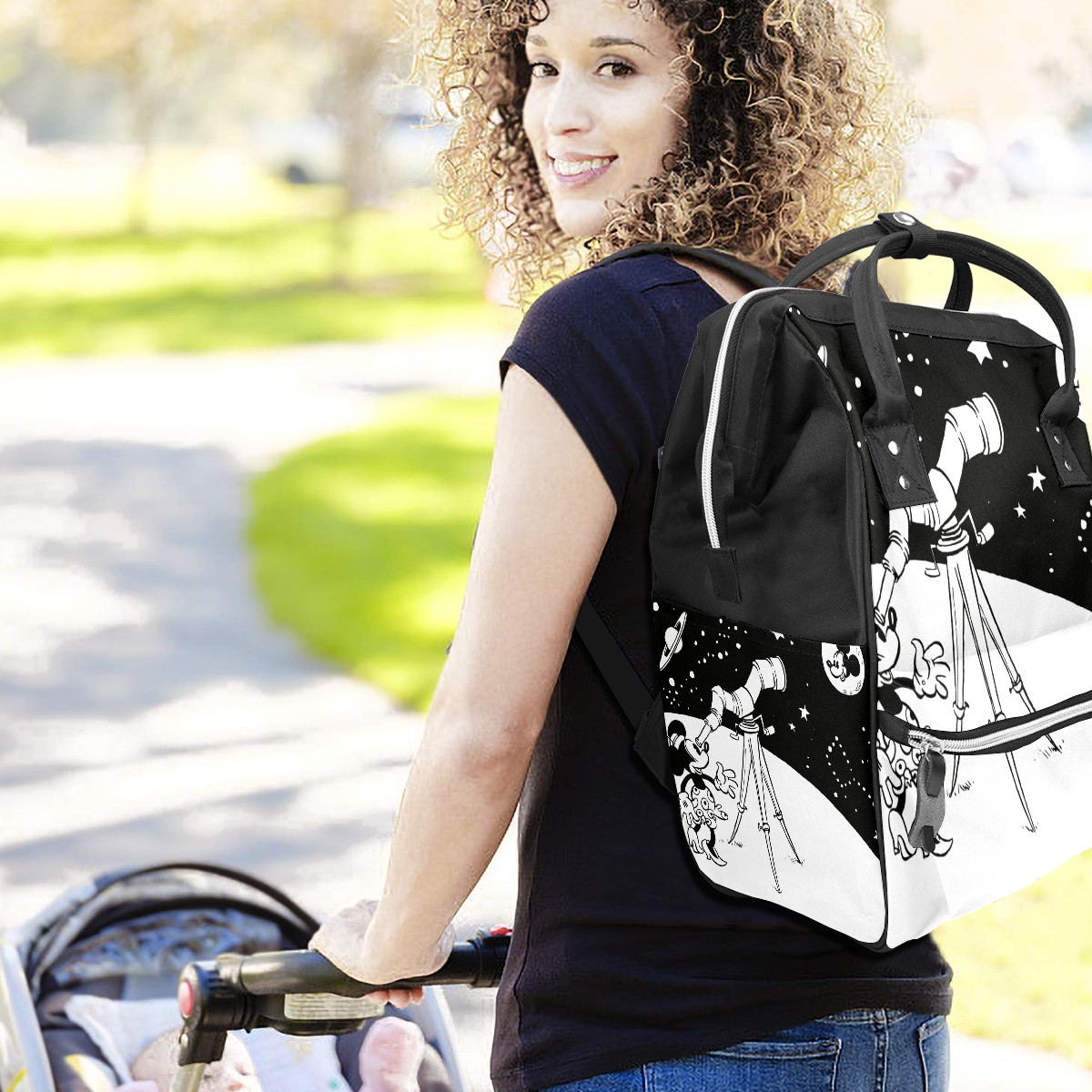 Backpack Diaper Bag Vintage Minne Mickey Biggest Of All Stars Waterproof Baby Bag Mom and Dad's Diaper Backpack Lightweight Large Capacity Diaper Bag Travel Daypack