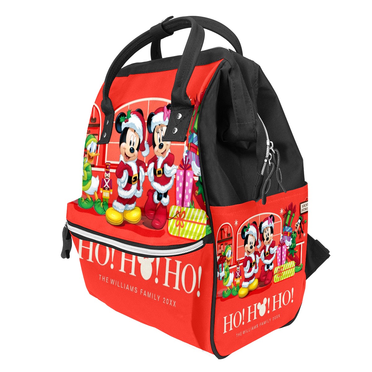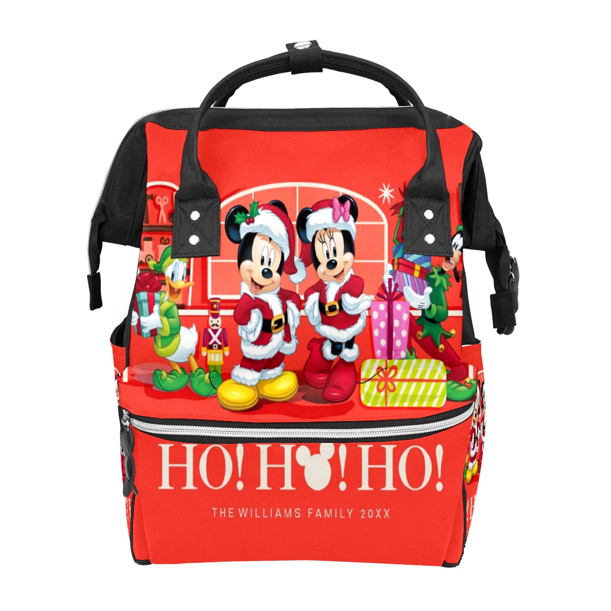 Backpack Diaper Bag Mickey Mouse Minnie Christmas Ho Ho Ho Waterproof Baby Bag Mom and Dad's Diaper Backpack Lightweight Large Capacity Diaper Bag Travel Daypack