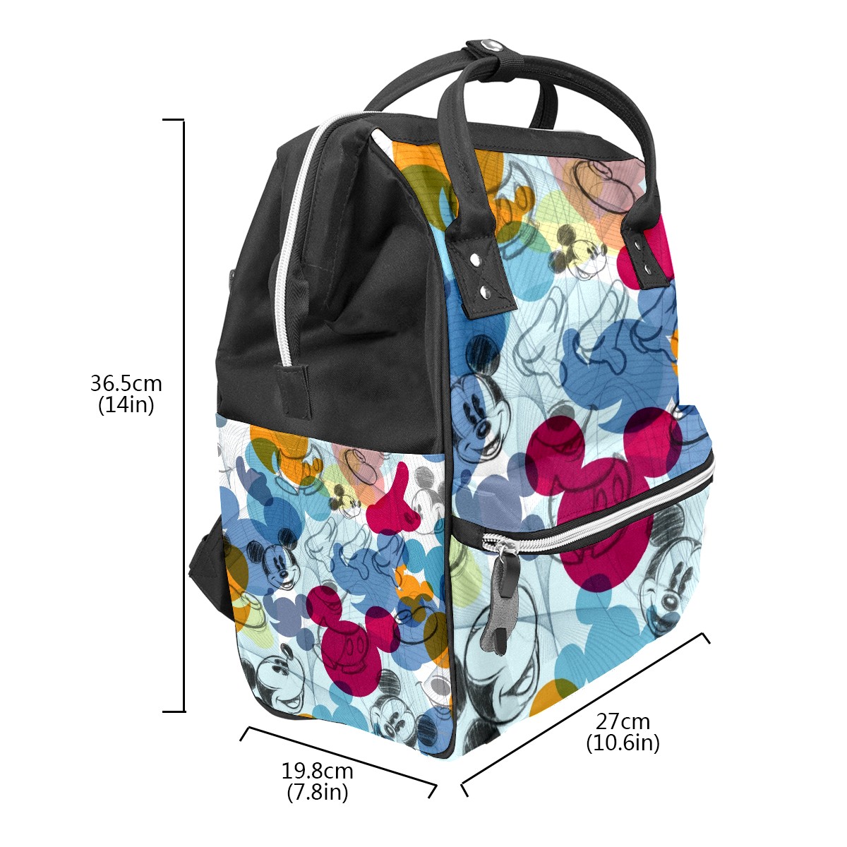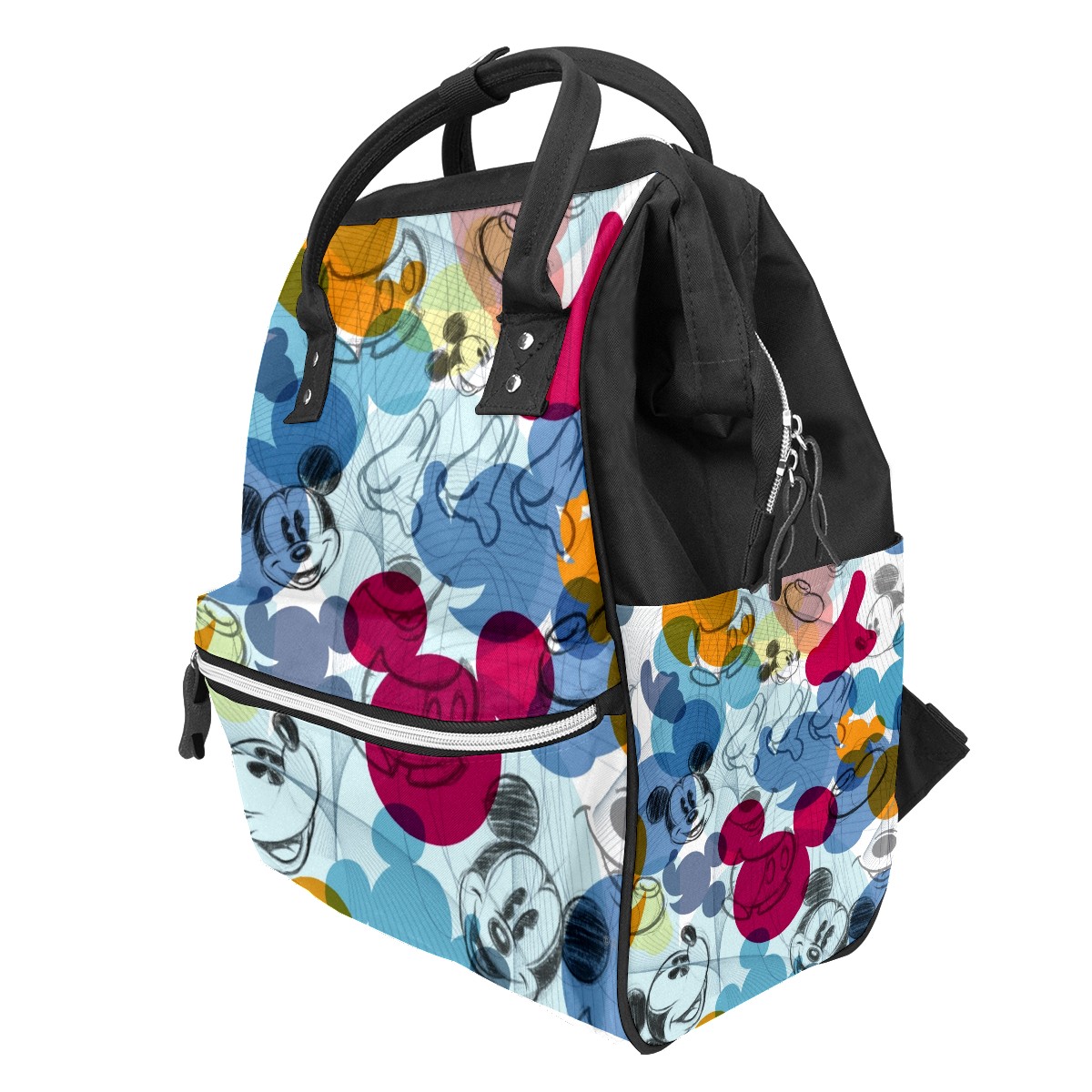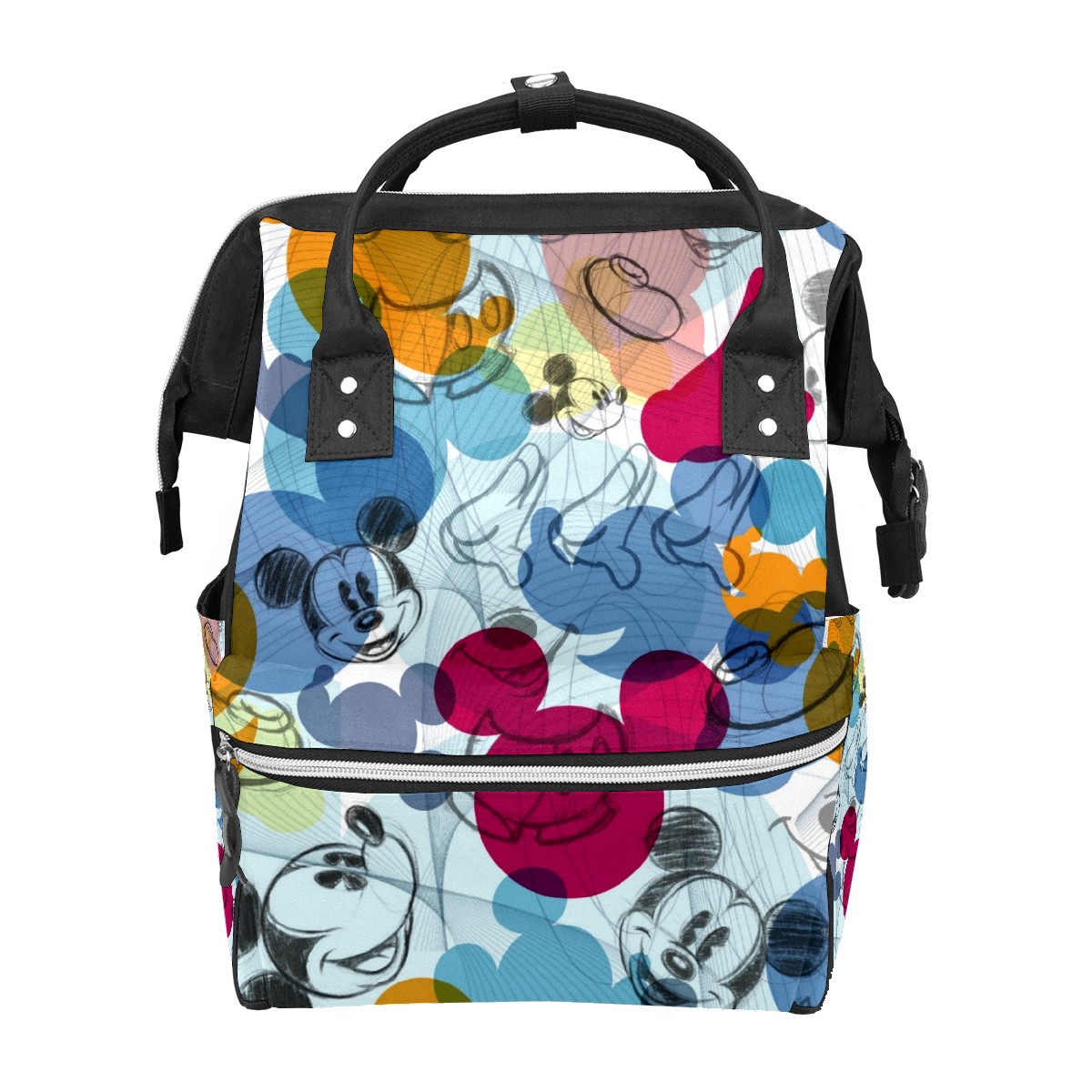 Backpack Diaper Bag Mickey Friends Mouse Head Sketch Pattern Waterproof Baby Bag Mom and Dad's Diaper Backpack Lightweight Large Capacity Diaper Bag Travel Daypack