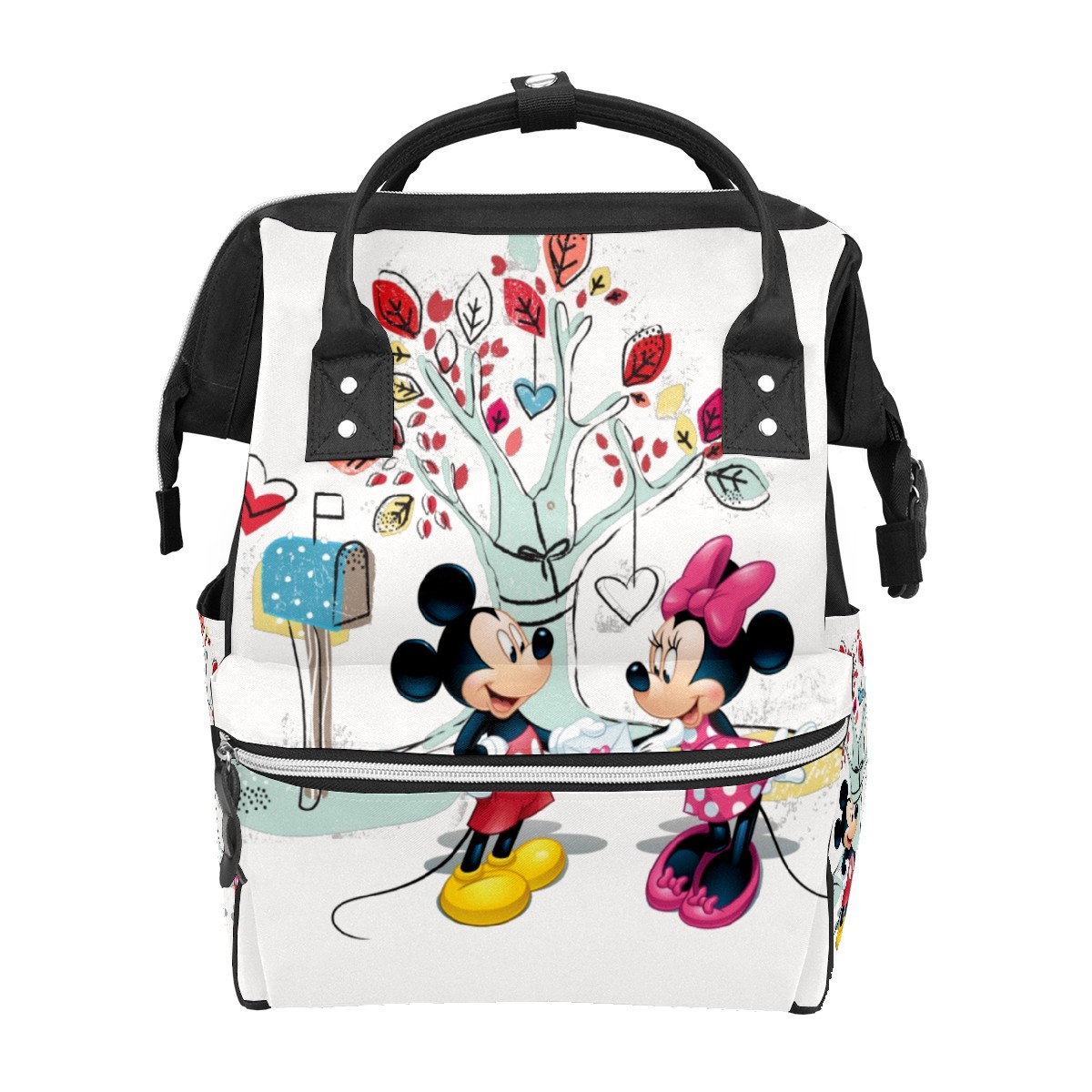 Backpack Diaper Bag Mickey Mouse Minnie Valentine's Day Waterproof Baby Bag Mom and Dad's Diaper Backpack Lightweight Large Capacity Diaper Bag Travel Daypack