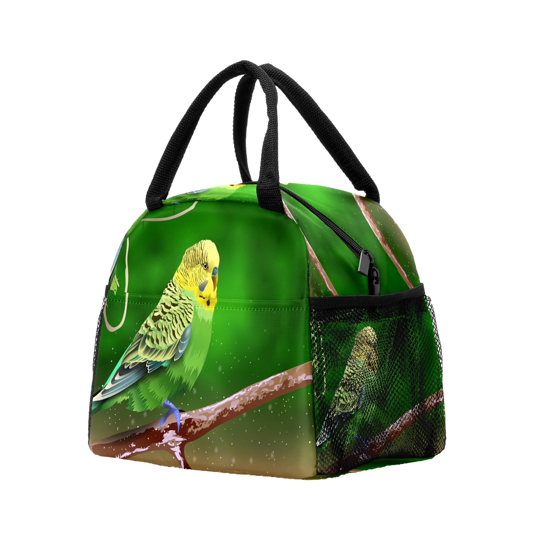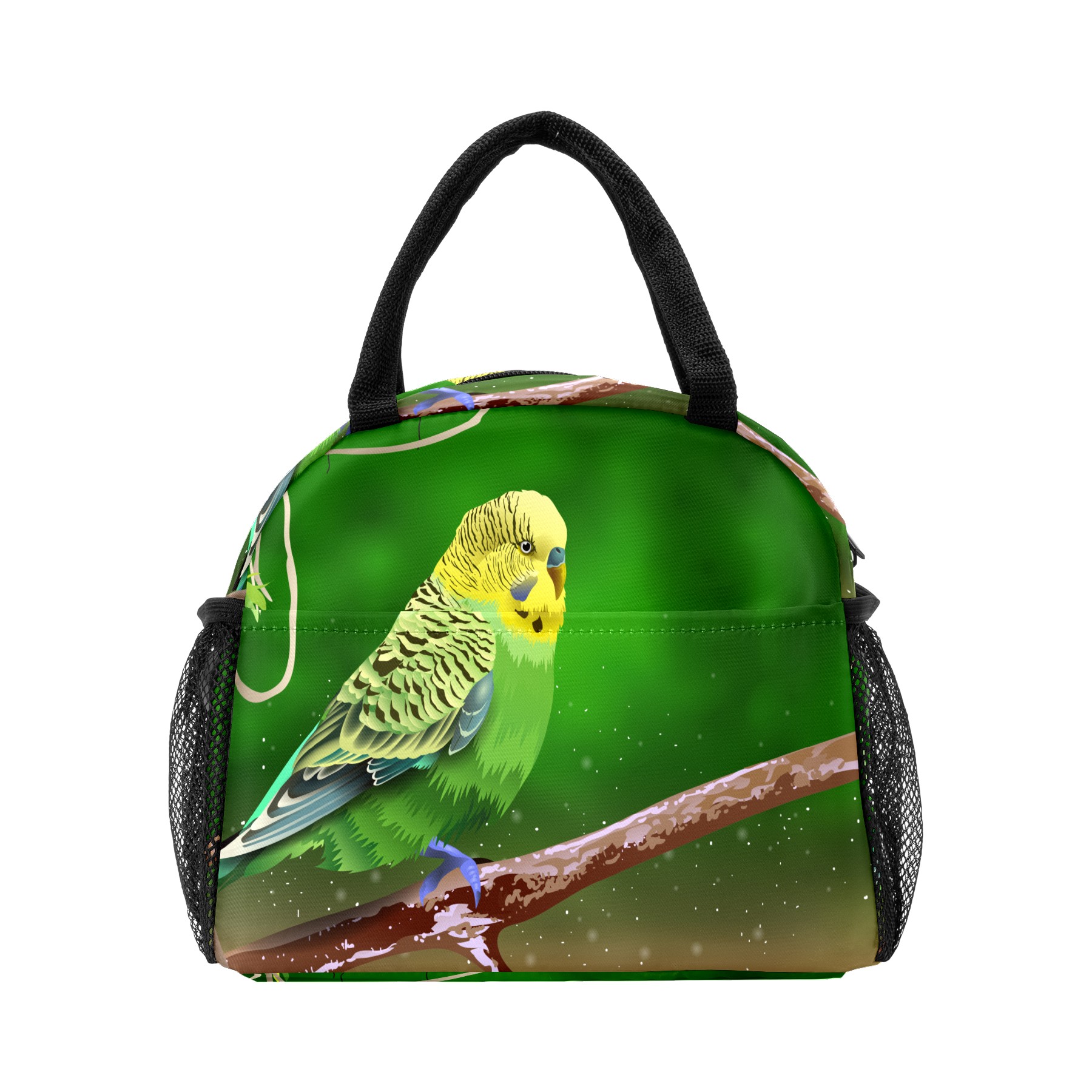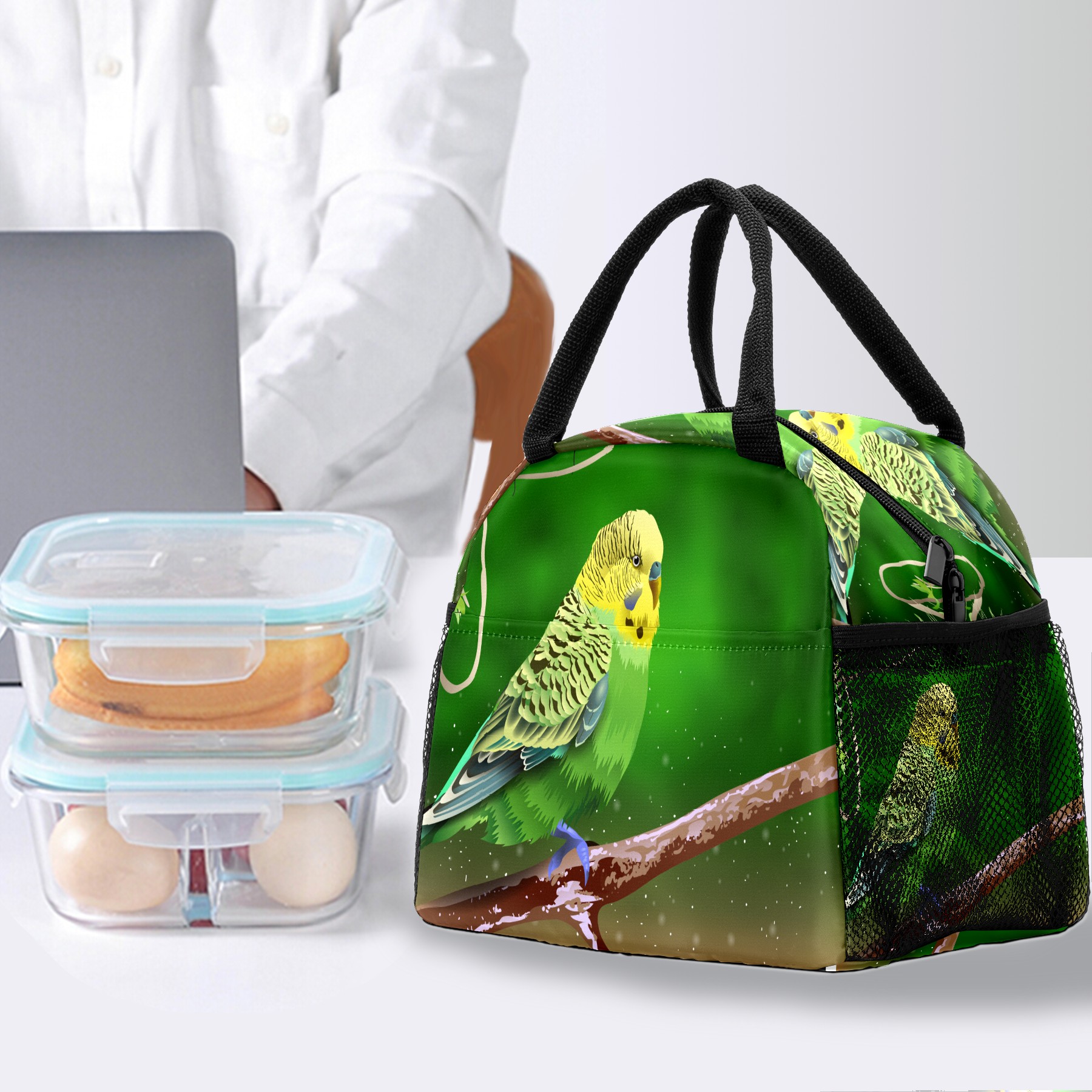 Lunch Bag for Women Men, Spring Budgie Bird At The Tree Insulated Reusable Lunch Box Thermal Cooler Tote Bag for Work Picnic Hiking Travel Beach