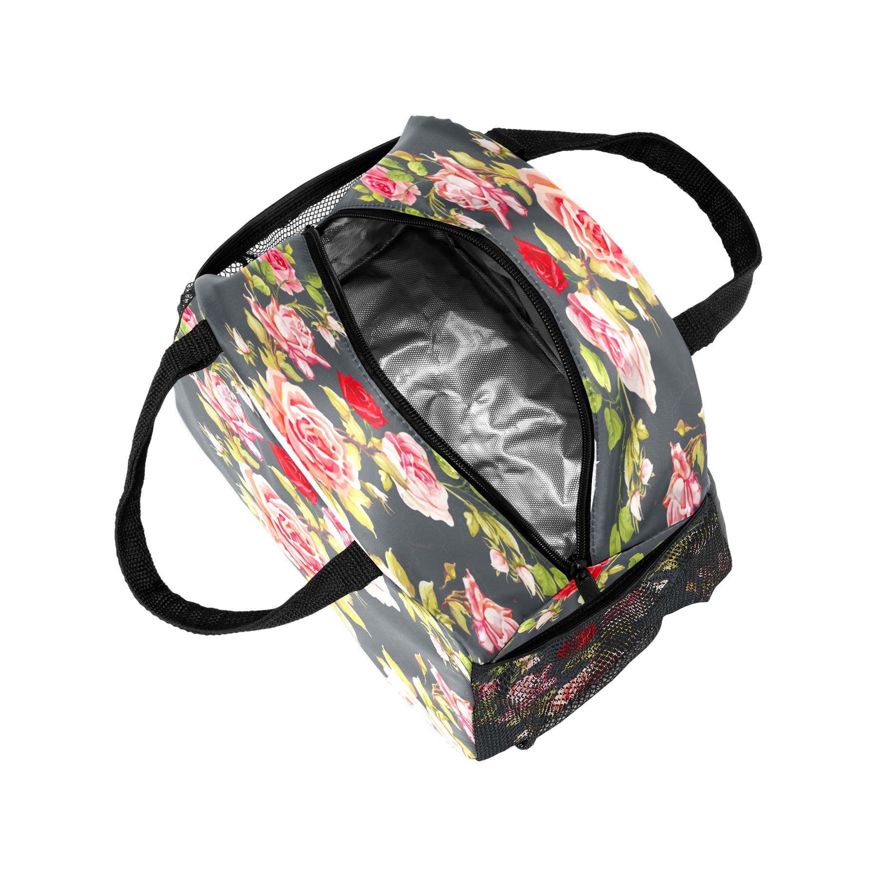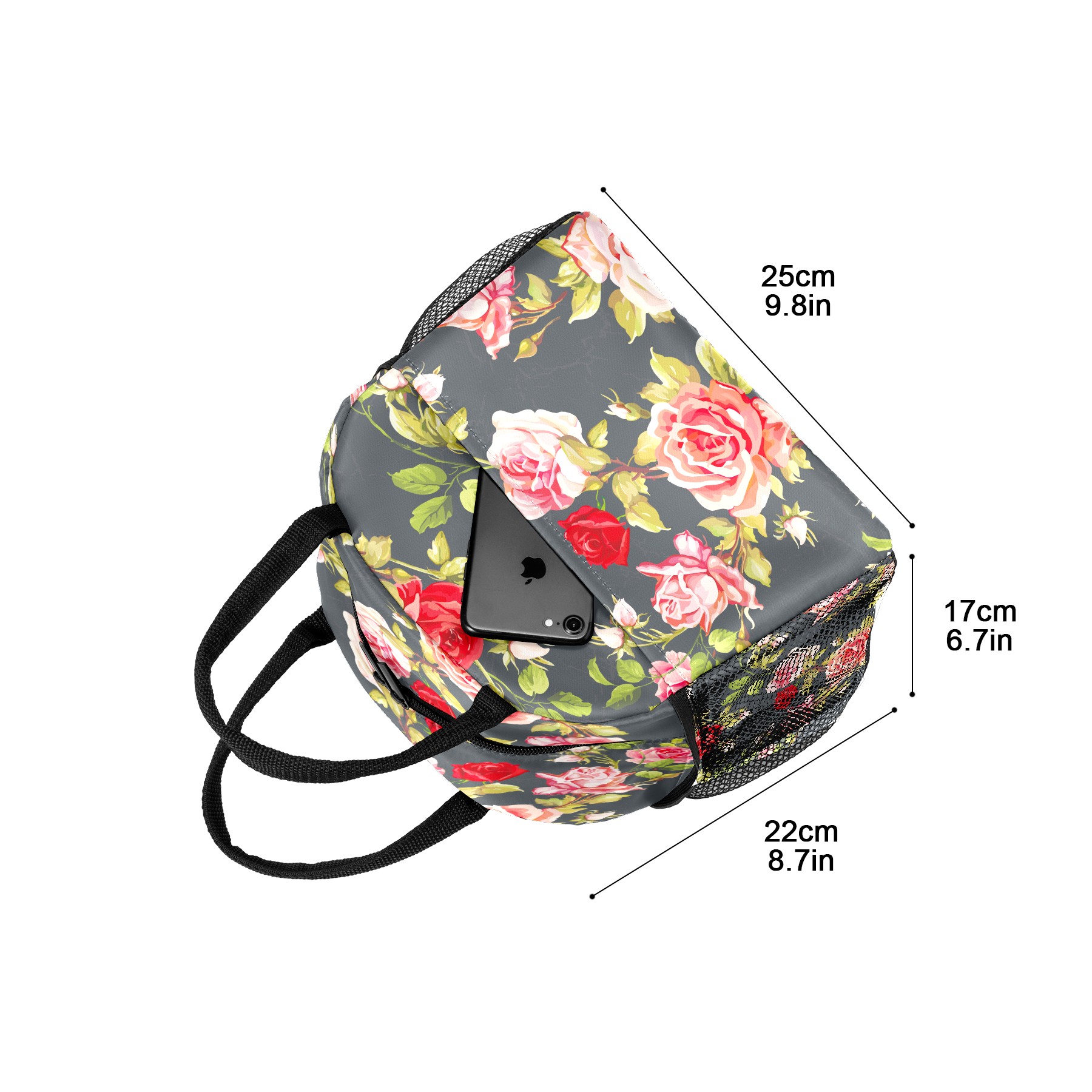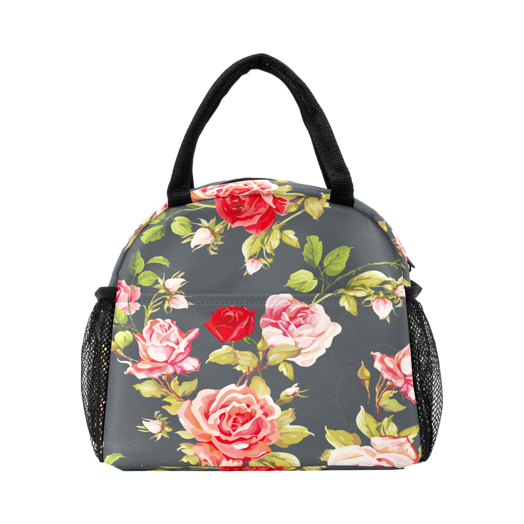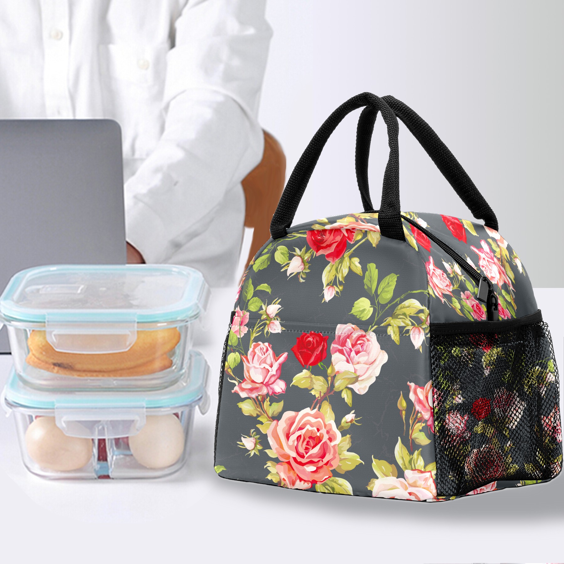 Lunch Bag for Women Men, Retro Rose Floral Pattern Insulated Reusable Lunch Box Thermal Cooler Tote Bag for Work Picnic Hiking Travel Beach