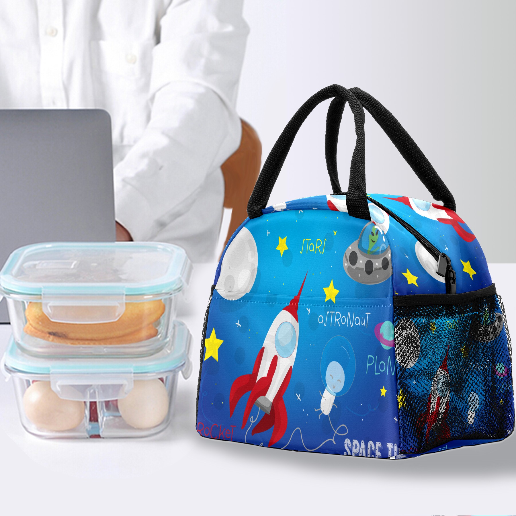 Lunch Bag for Women Men, Space Galacy Rocket Moon UFO Insulated Reusable Lunch Box Thermal Cooler Tote Bag for Work Picnic Hiking Travel Beach