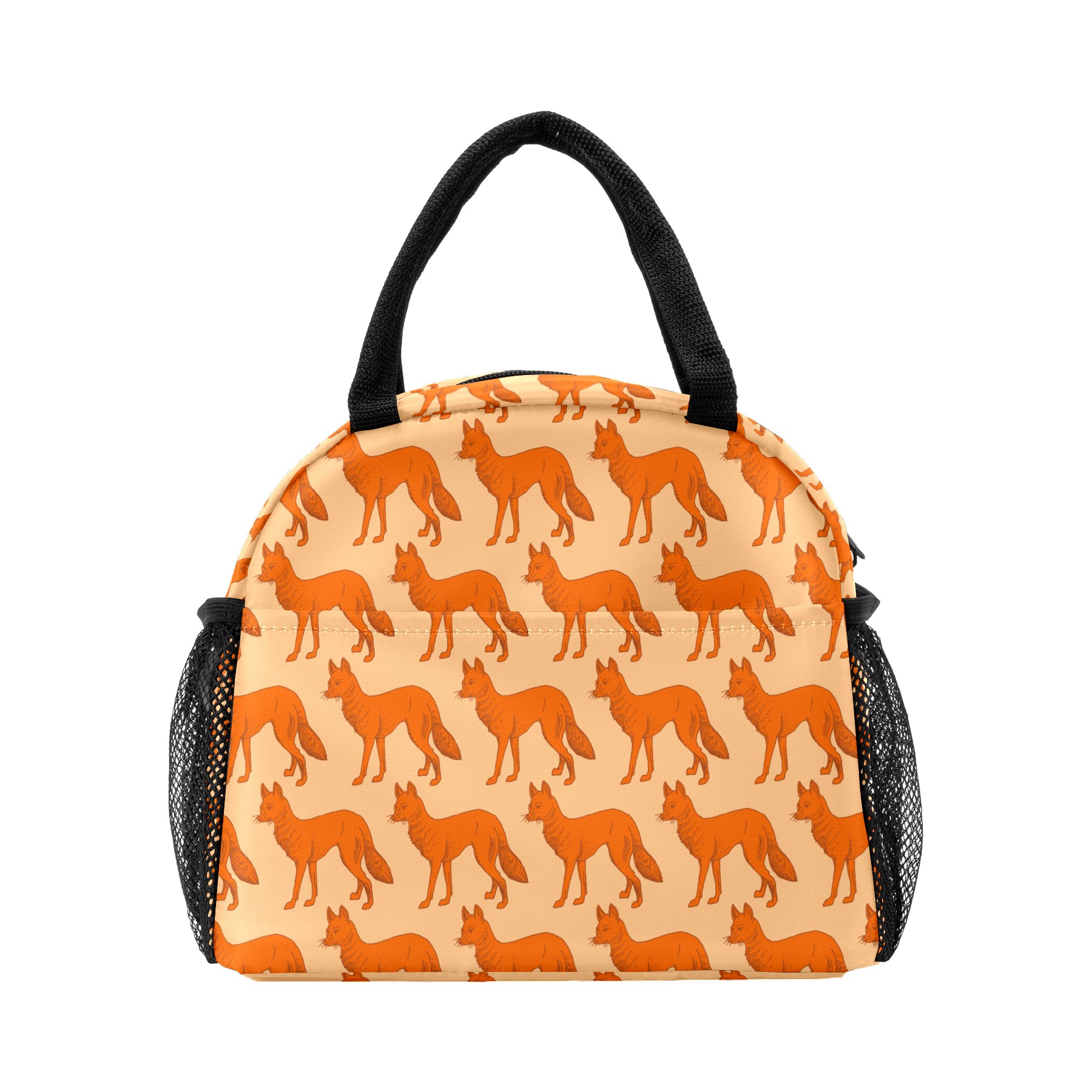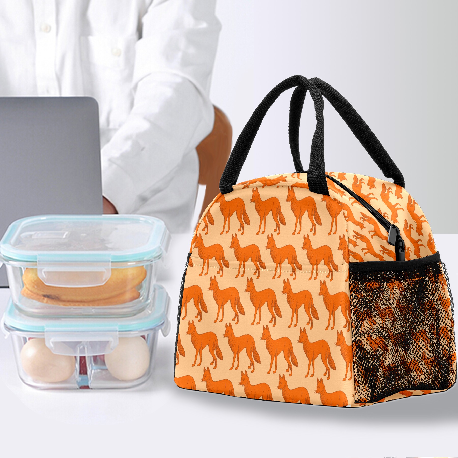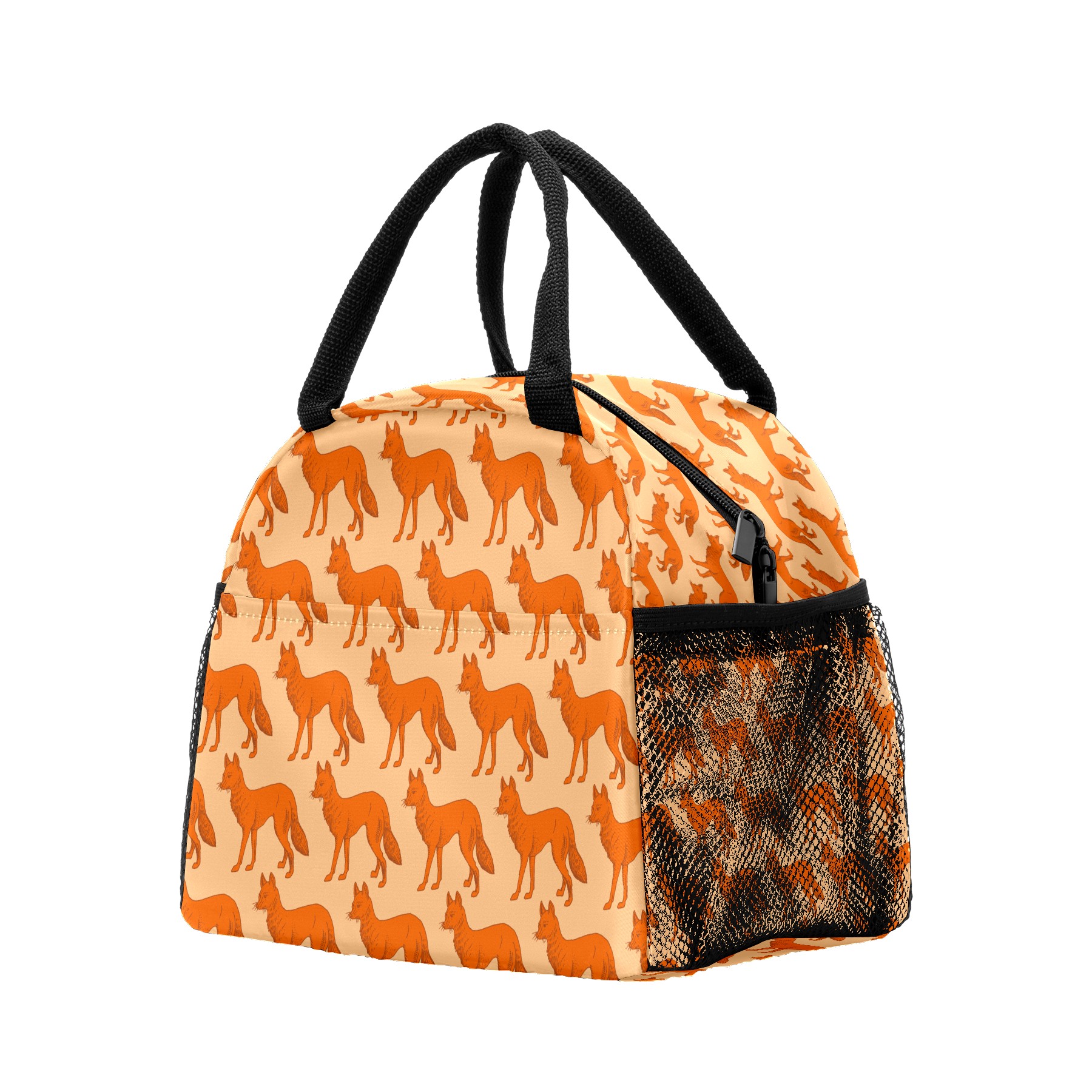 Lunch Bag for Women Men, Orange Fox Pattern Insulated Reusable Lunch Box Thermal Cooler Tote Bag for Work Picnic Hiking Travel Beach