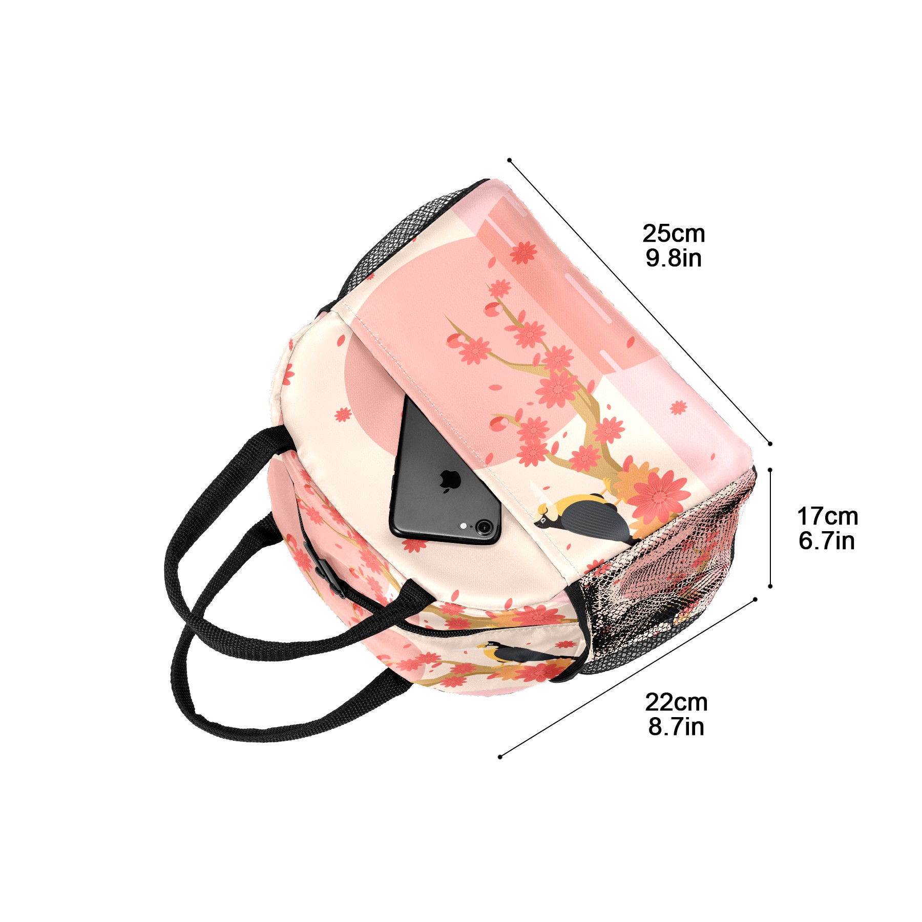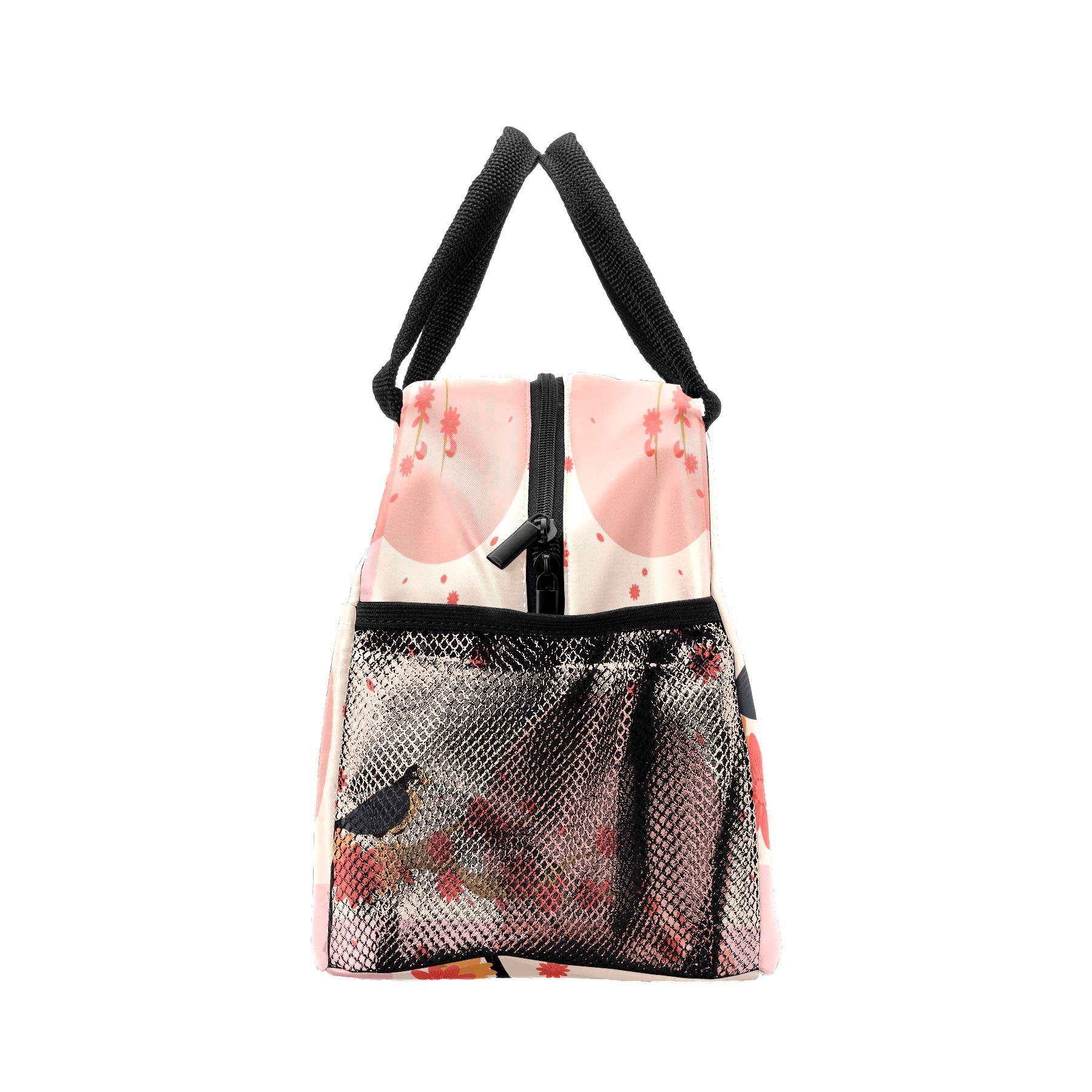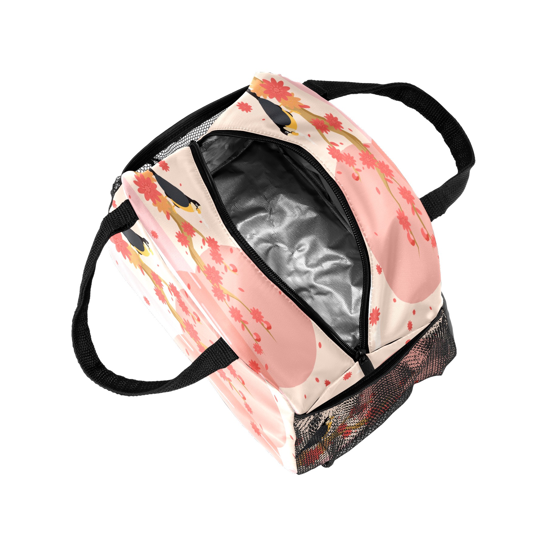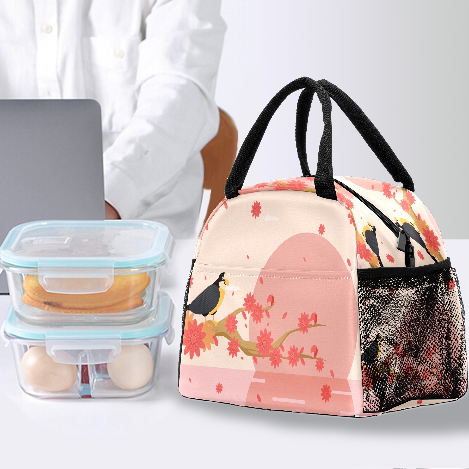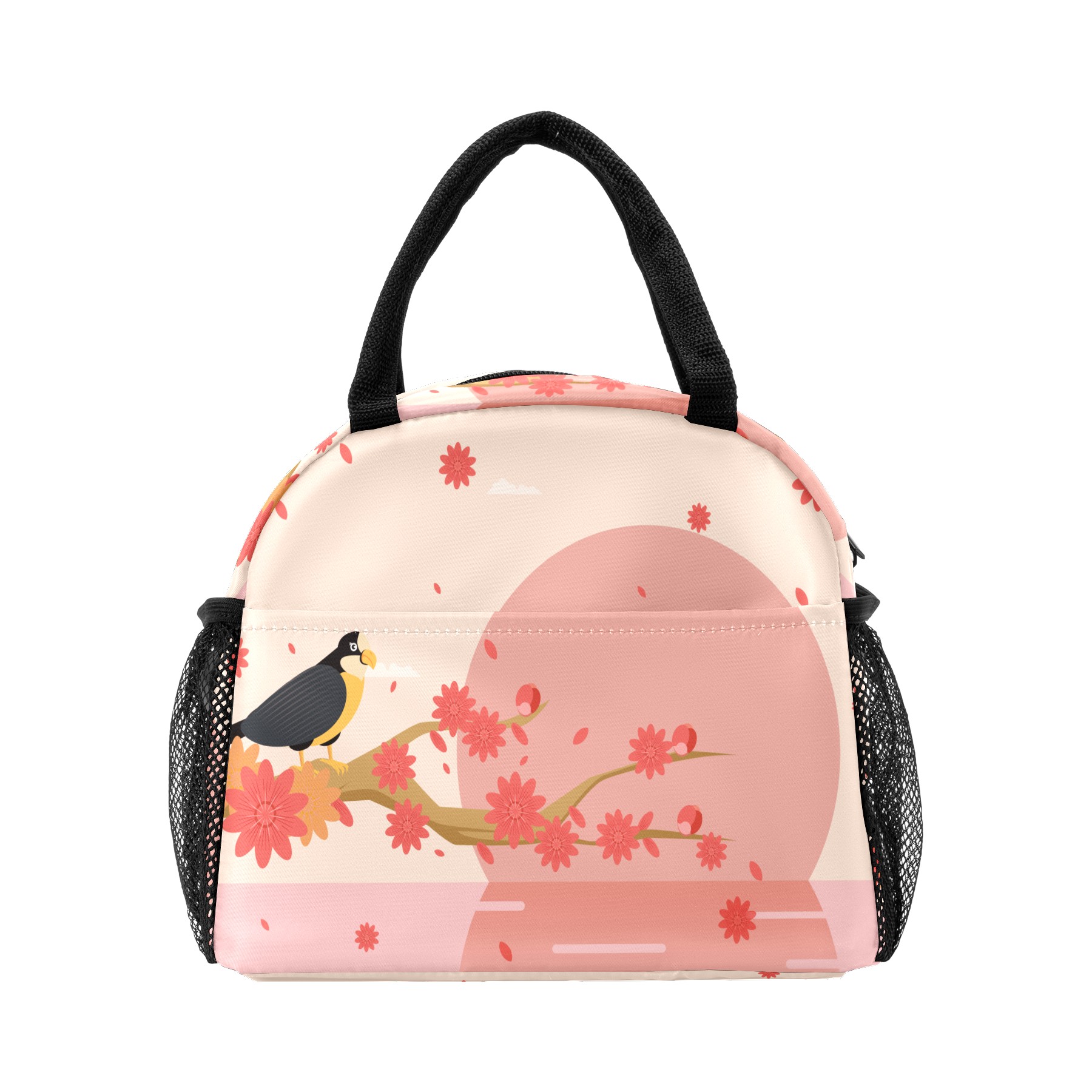Lunch Bag for Women Men, Peach Blossom Floral Bird Insulated Reusable Lunch Box Thermal Cooler Tote Bag for Work Picnic Hiking Travel Beach