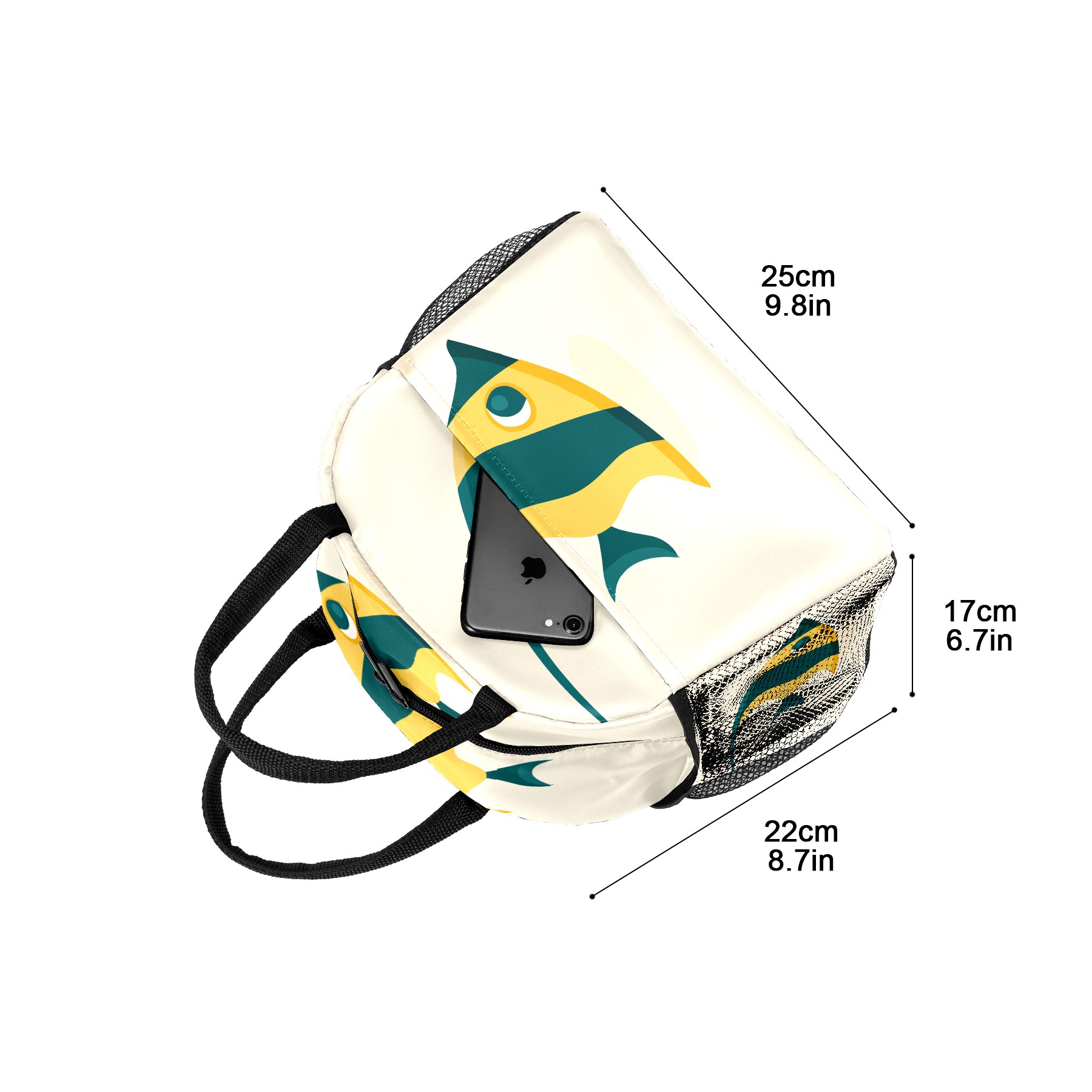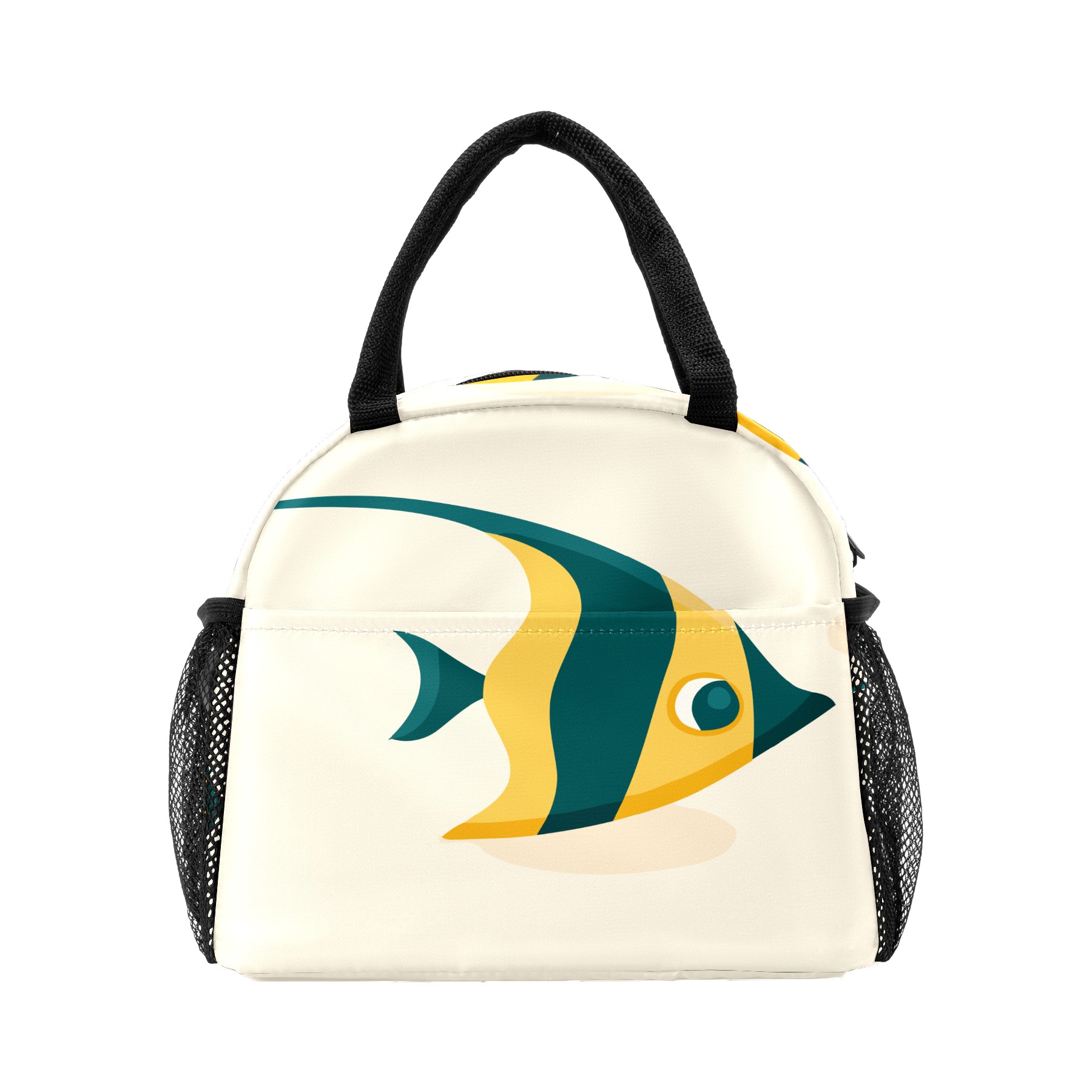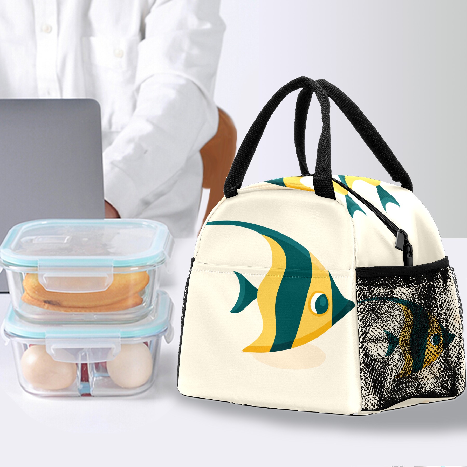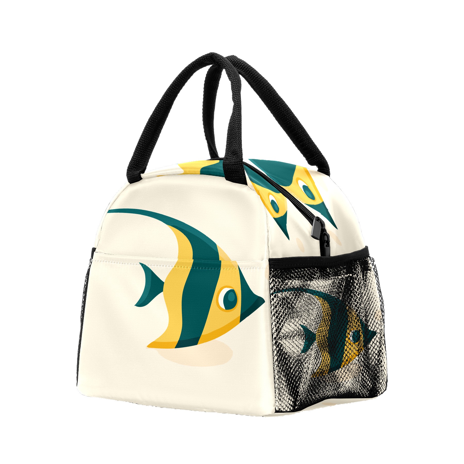 Lunch Bag for Women Men, Retro Cartoon Fish Insulated Reusable Lunch Box Thermal Cooler Tote Bag for Work Picnic Hiking Travel Beach