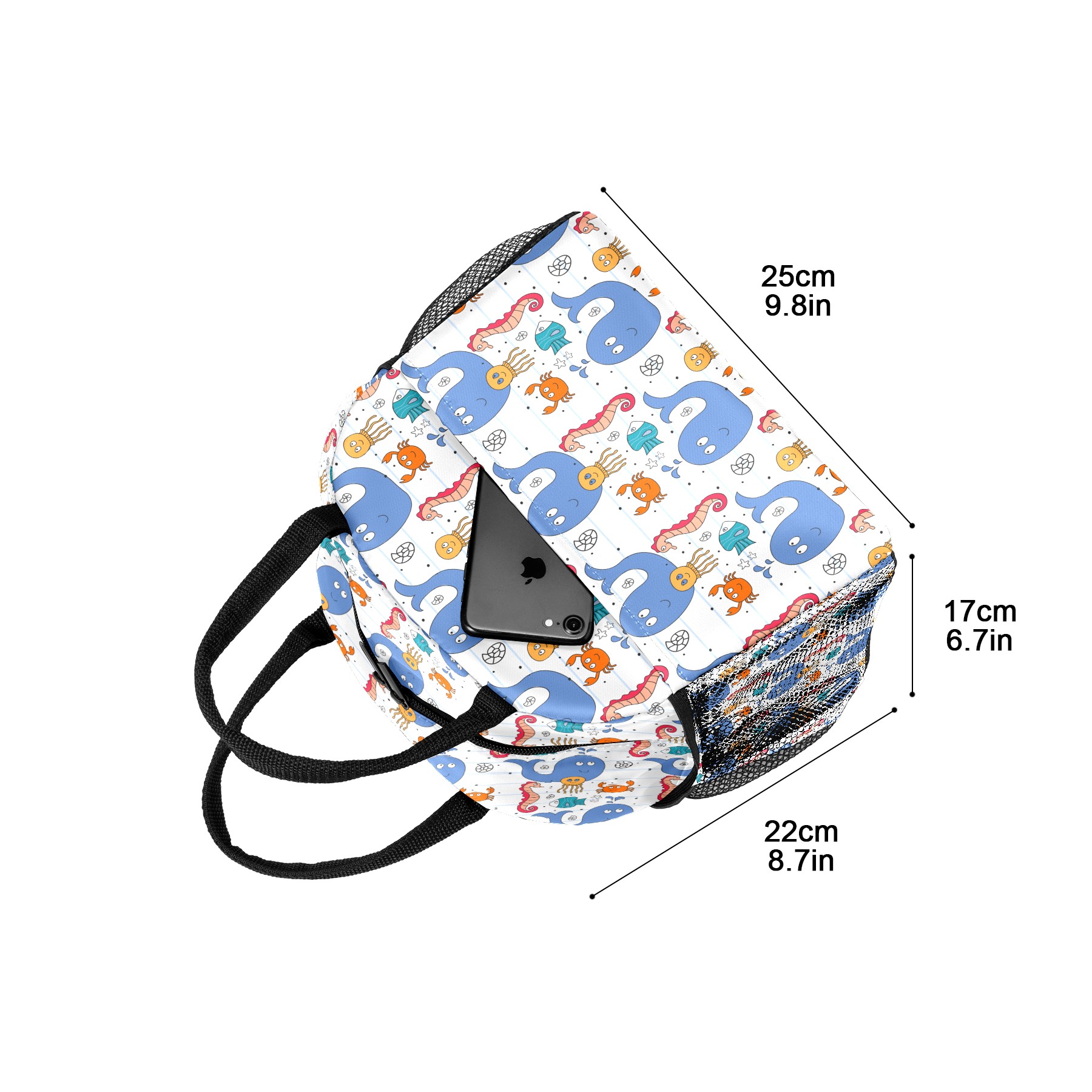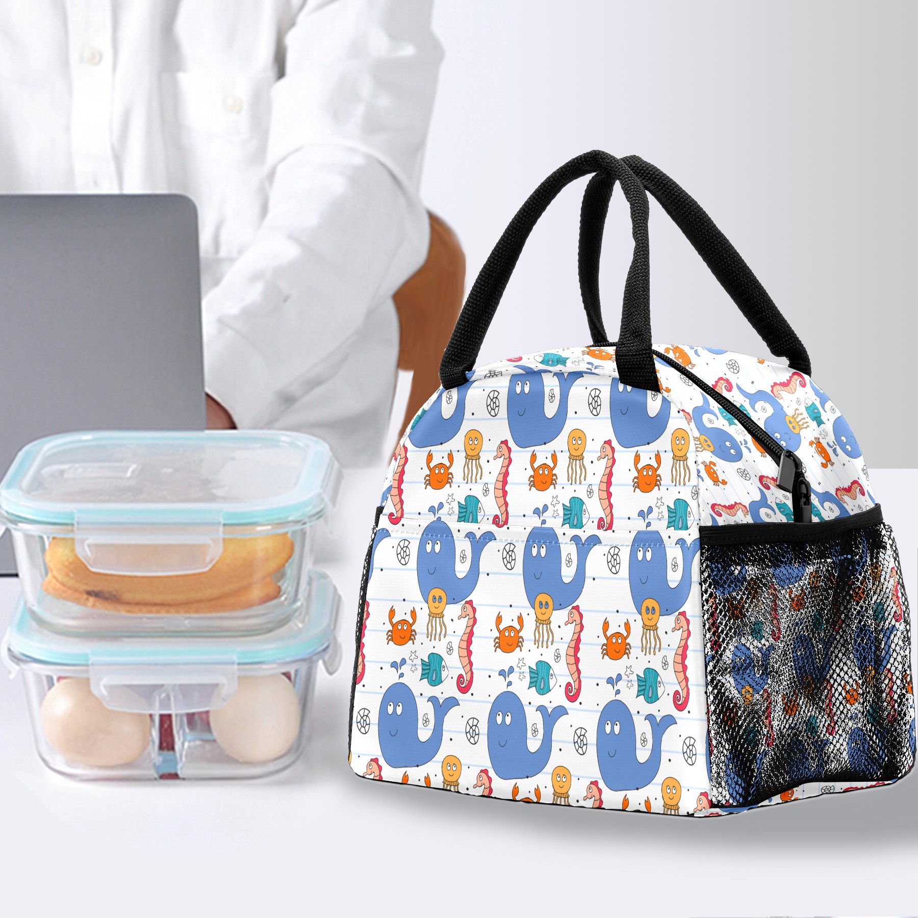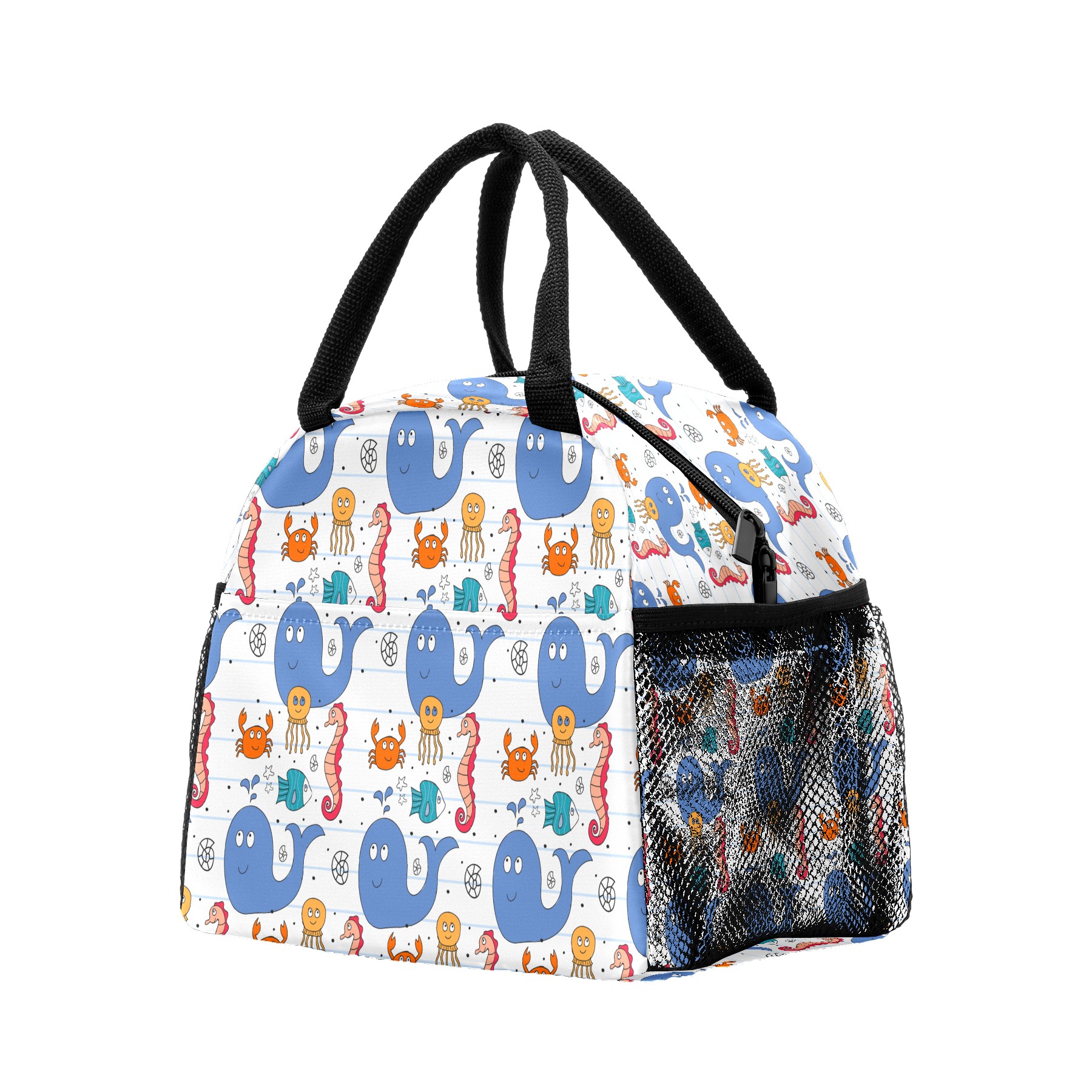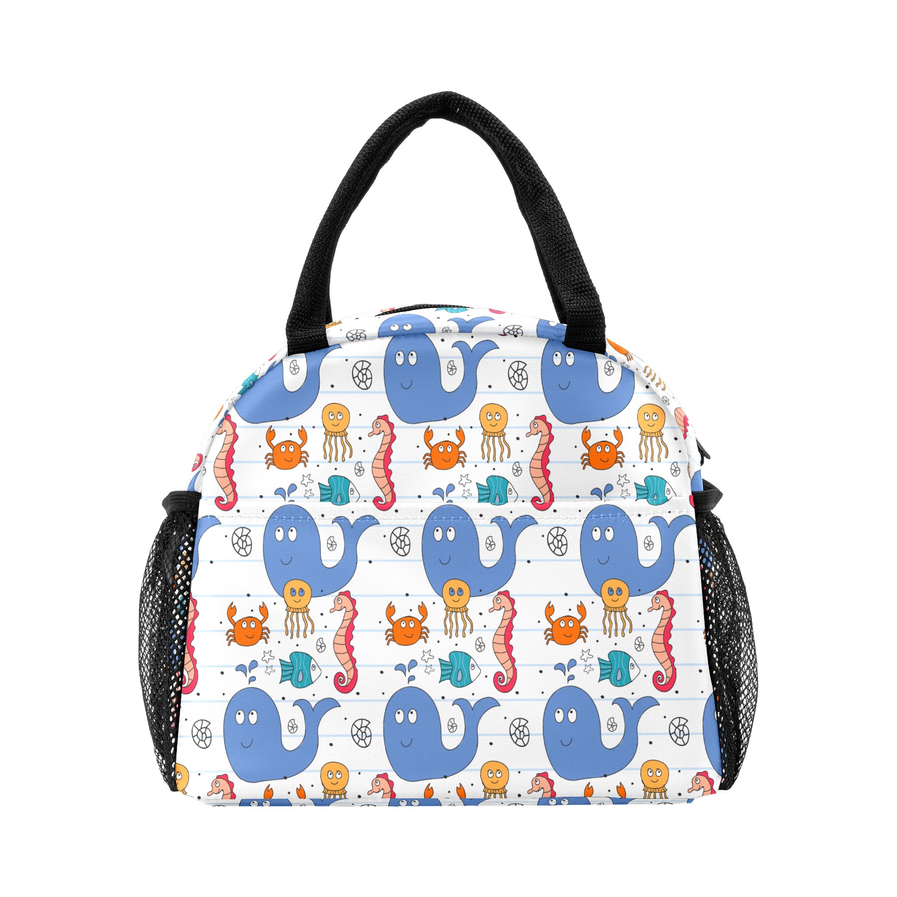 Lunch Bag for Women Men, Marine Animal Dolphin Crab Seahorse Insulated Reusable Lunch Box Thermal Cooler Tote Bag for Work Picnic Hiking Travel Beach