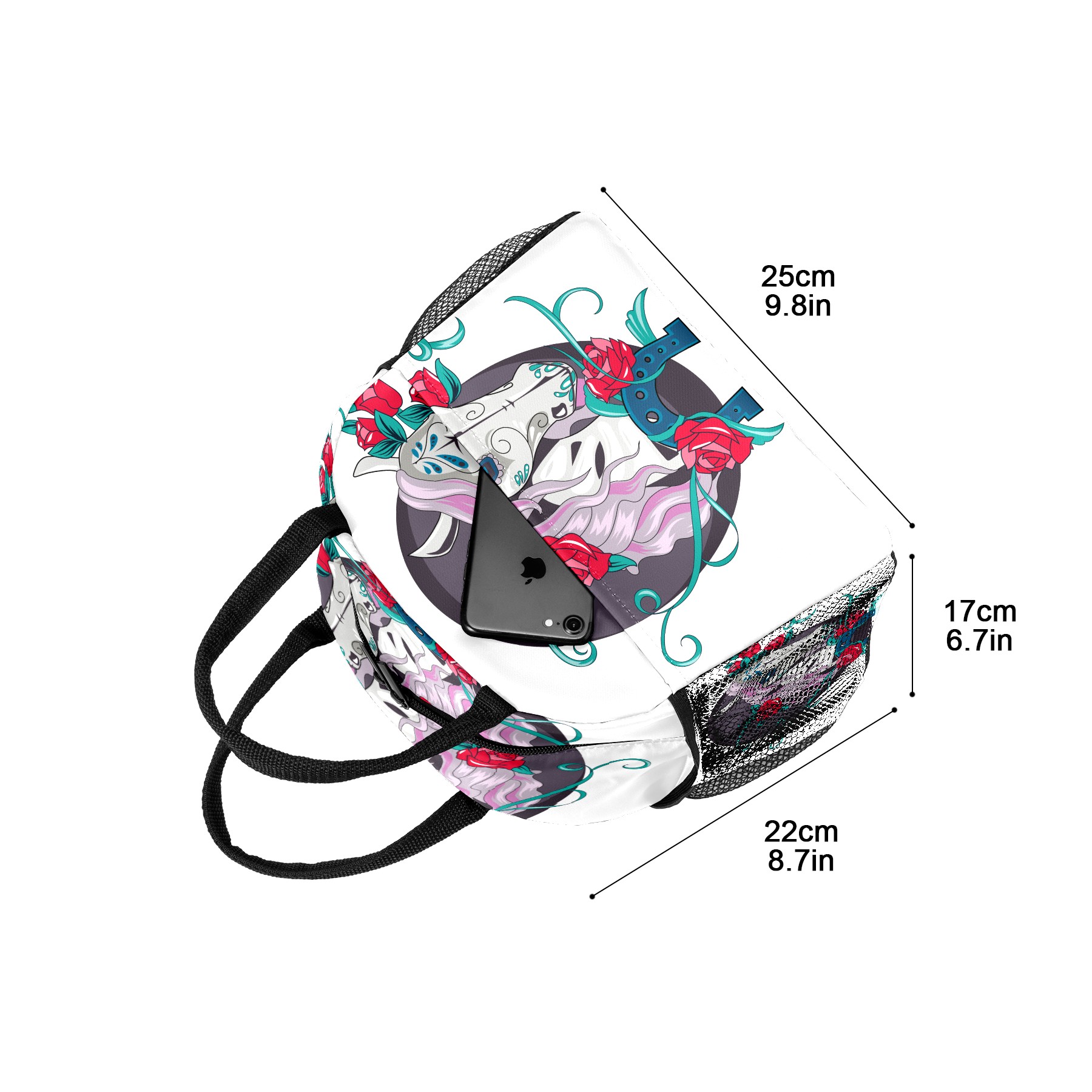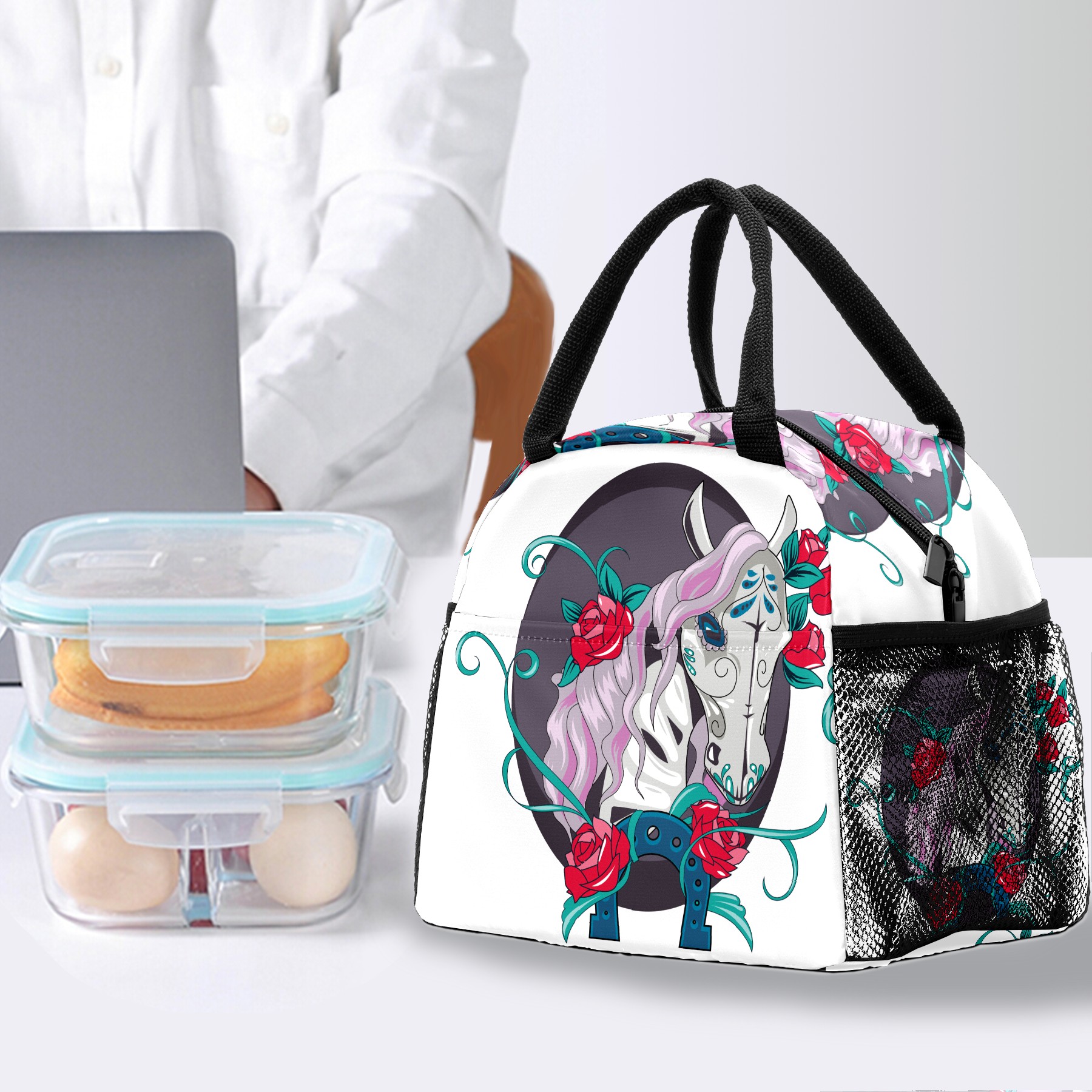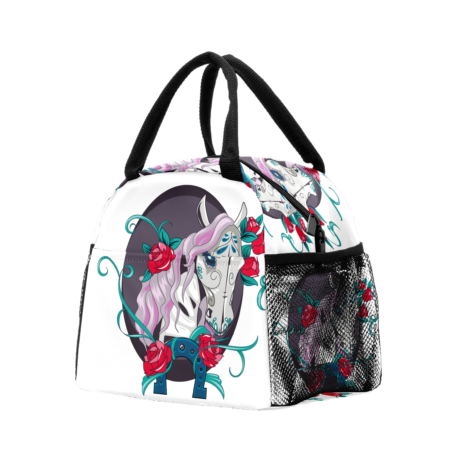 Lunch Bag for Women Men, Mexico Day Of The Dead Horse Floral Insulated Reusable Lunch Box Thermal Cooler Tote Bag for Work Picnic Hiking Travel Beach