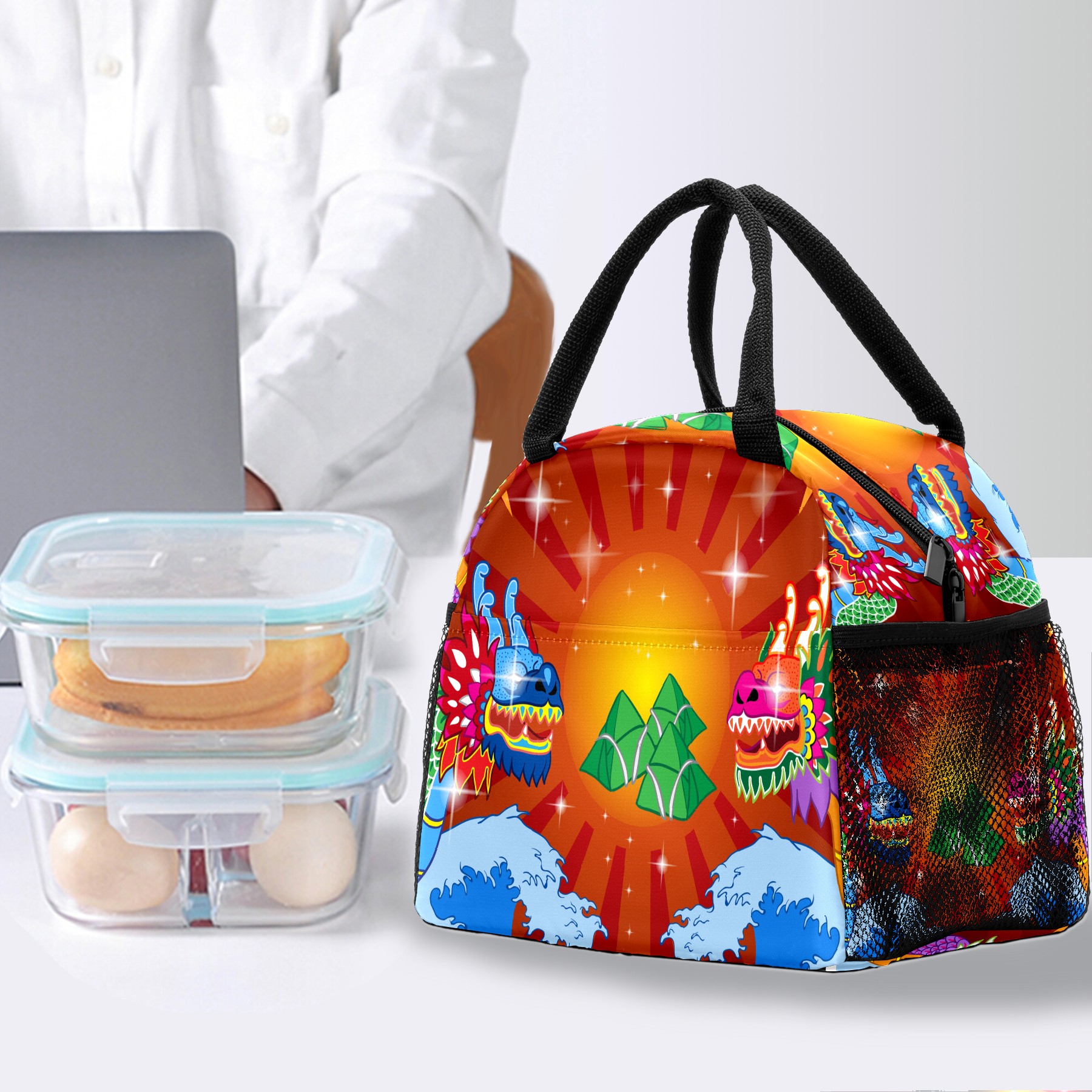 Lunch Bag for Women Men, Happy Dragon Boat Festival Insulated Reusable Lunch Box Thermal Cooler Tote Bag for Work Picnic Hiking Travel Beach