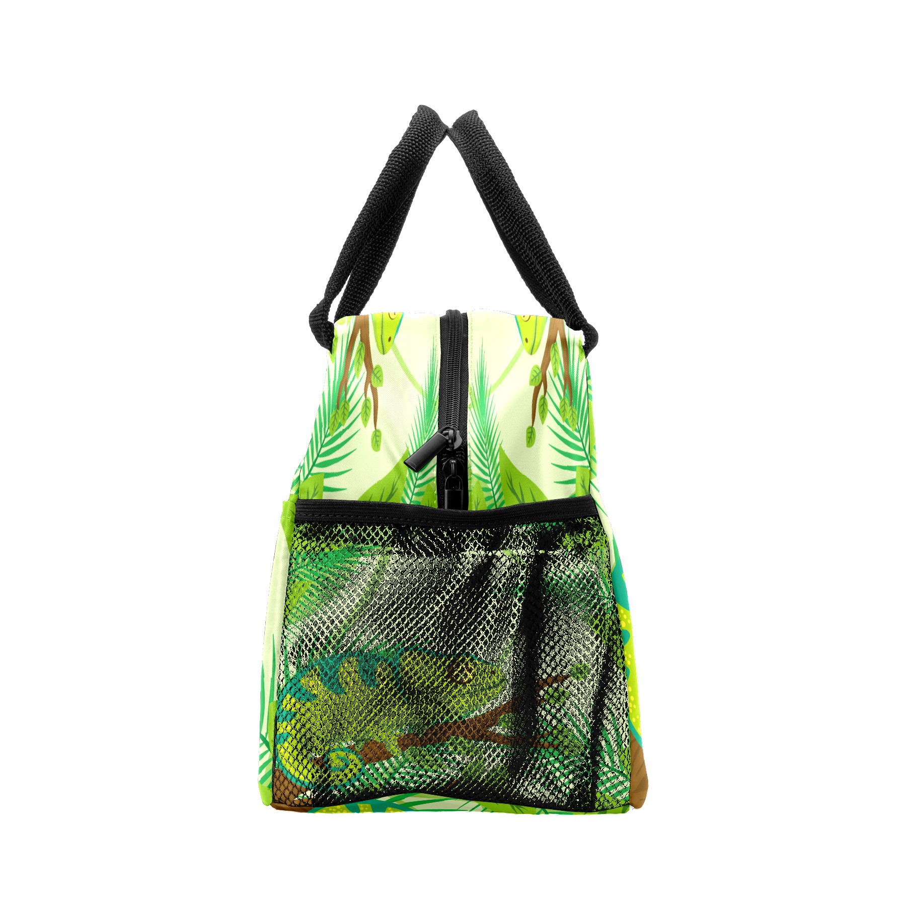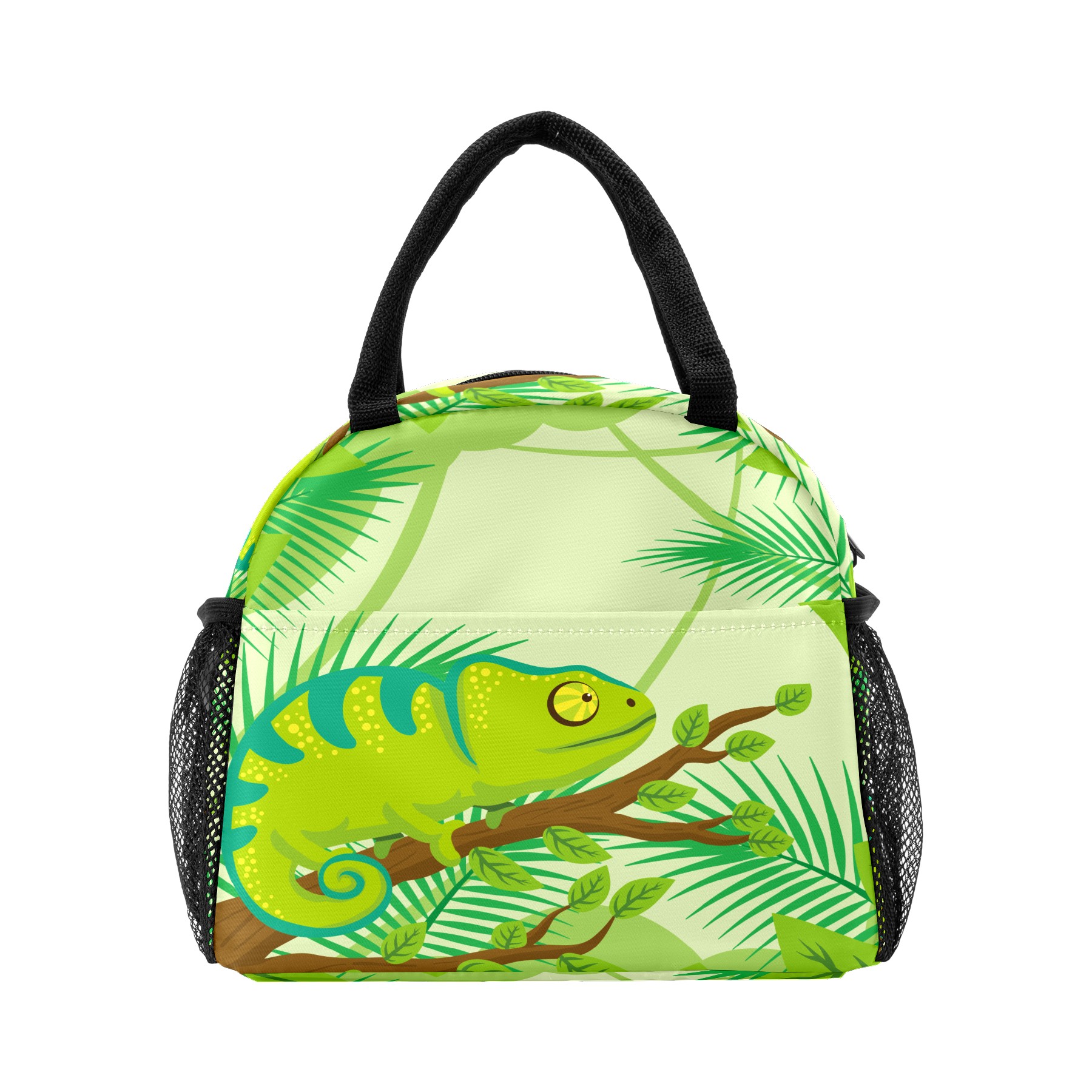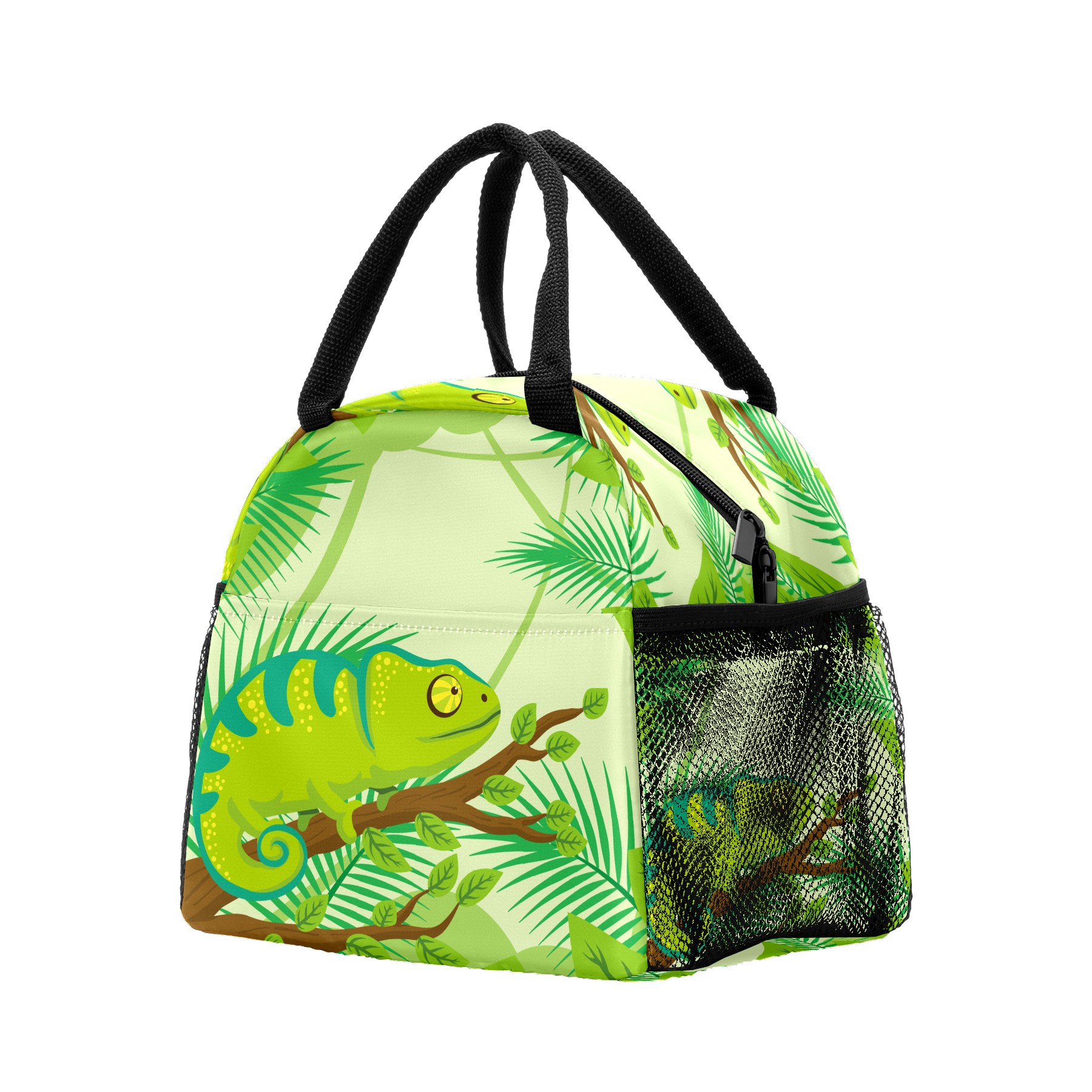 Lunch Bag for Women Men, Green Cameleon With Forest Insulated Reusable Lunch Box Thermal Cooler Tote Bag for Work Picnic Hiking Travel Beach