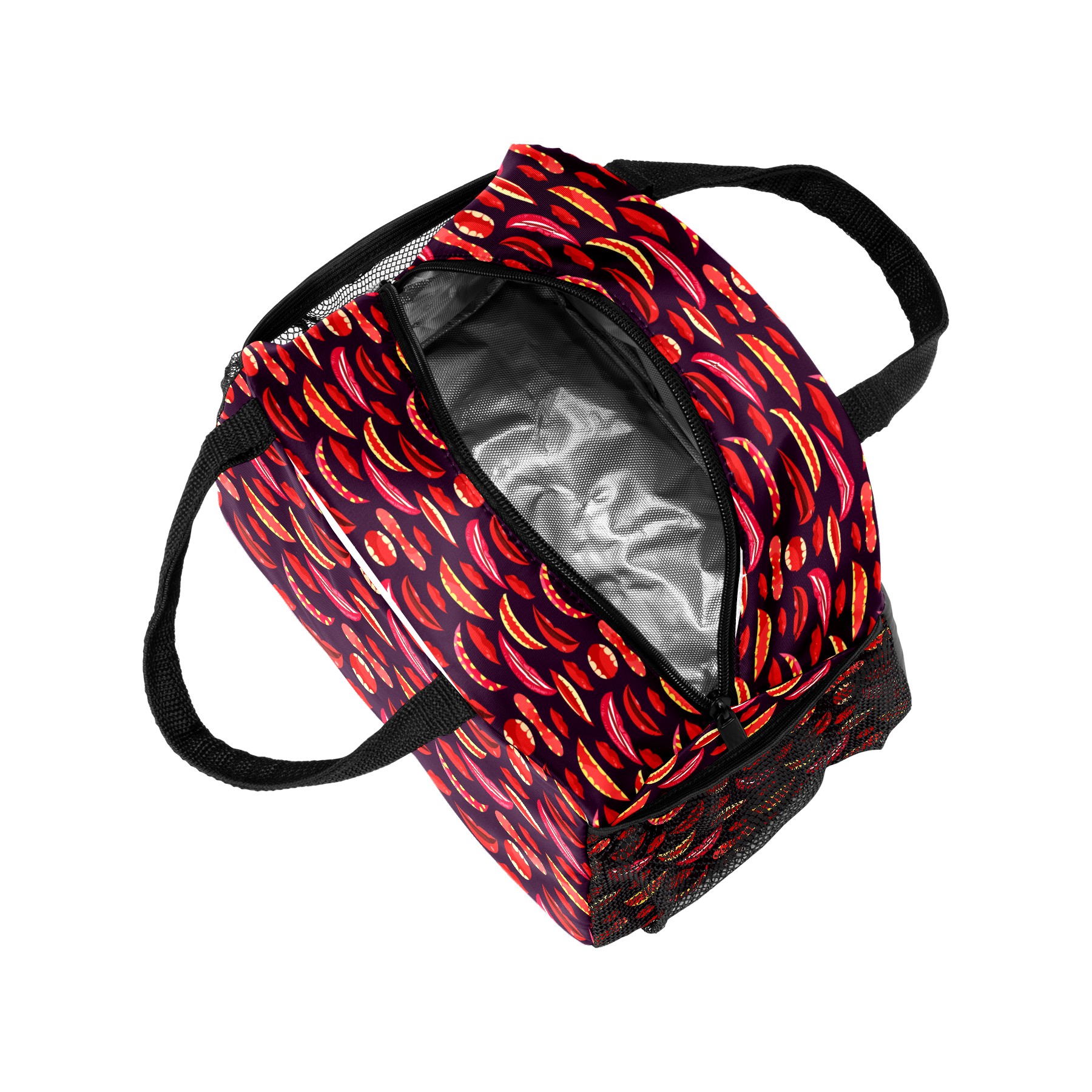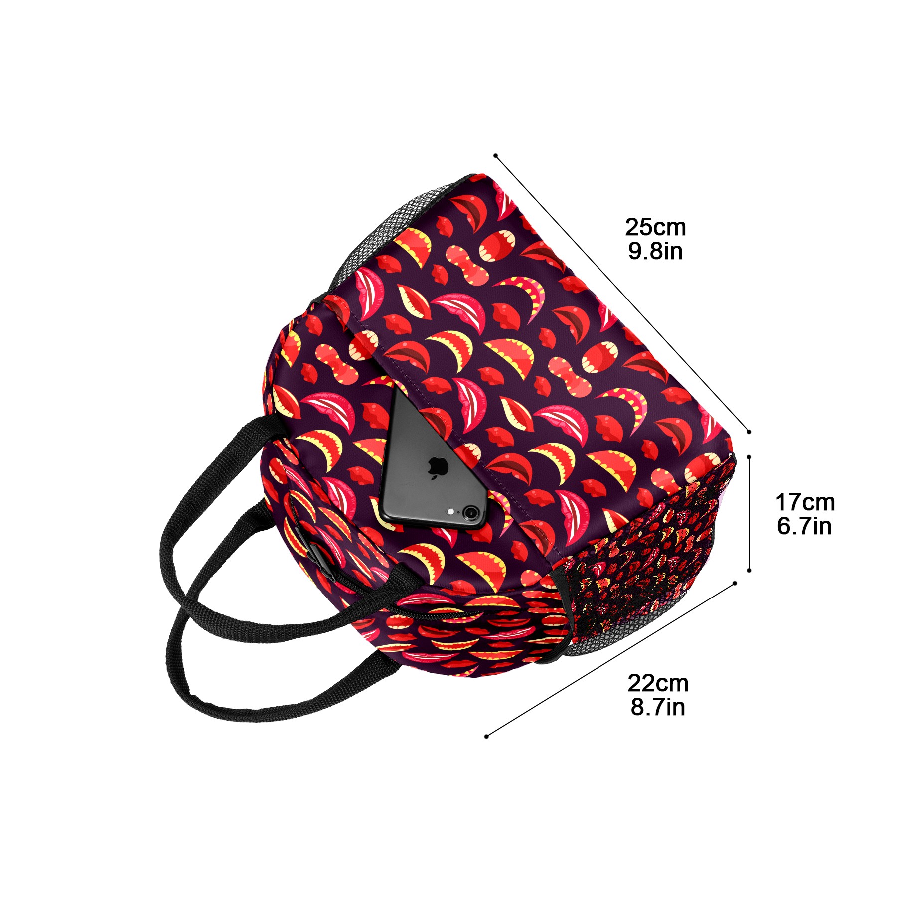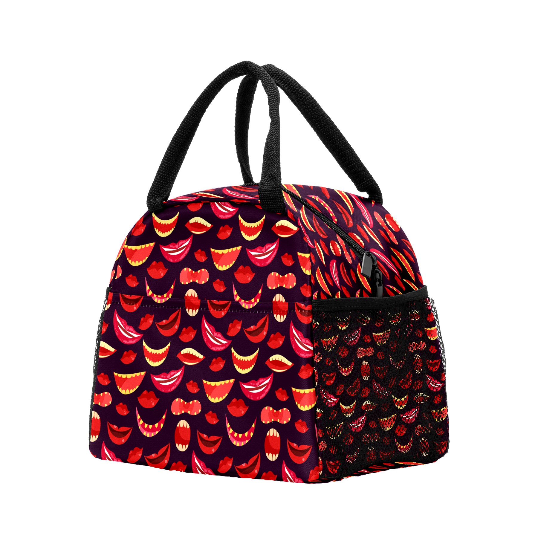 Lunch Bag for Women Men, Halloween Red Lips Pattern Insulated Reusable Lunch Box Thermal Cooler Tote Bag for Work Picnic Hiking Travel Beach
