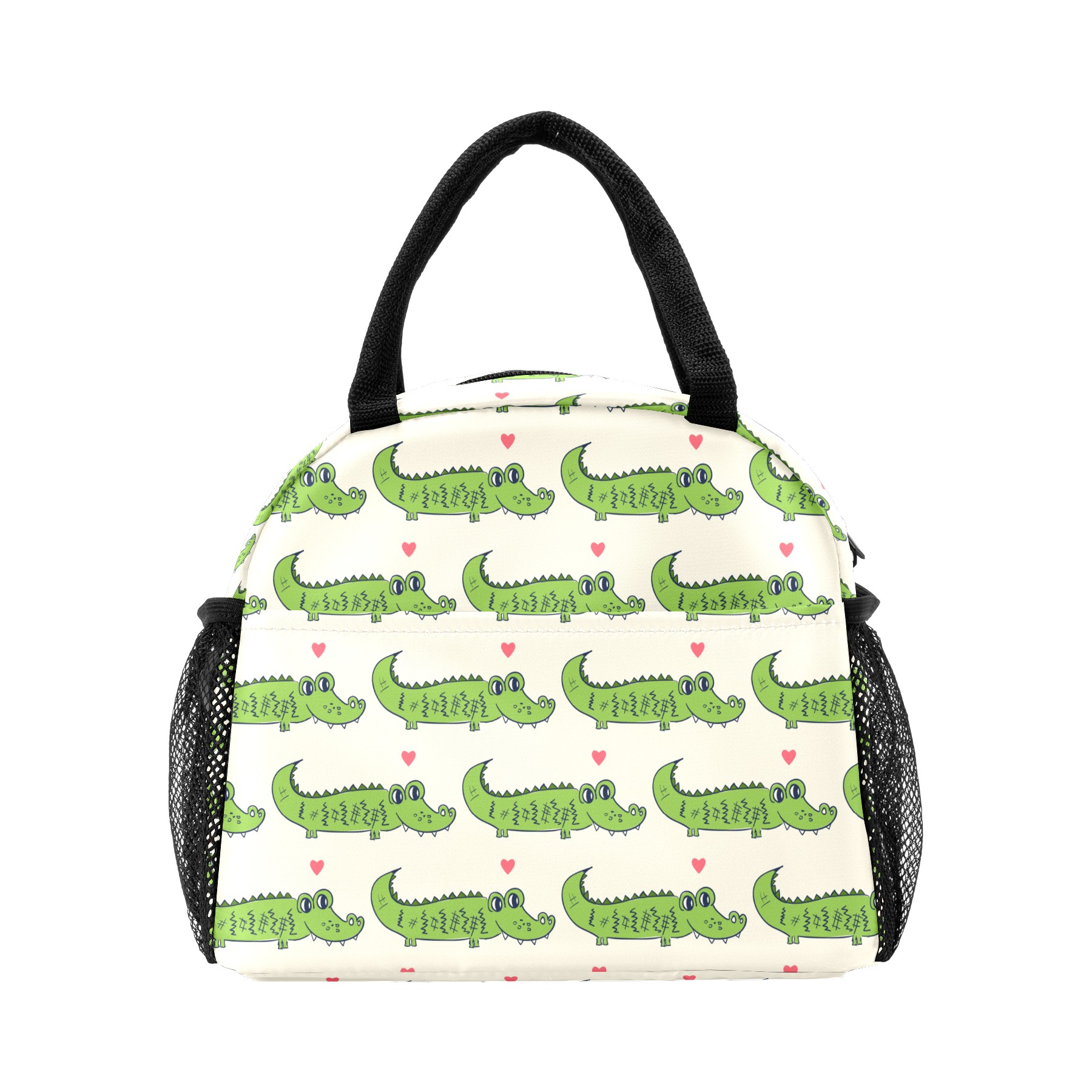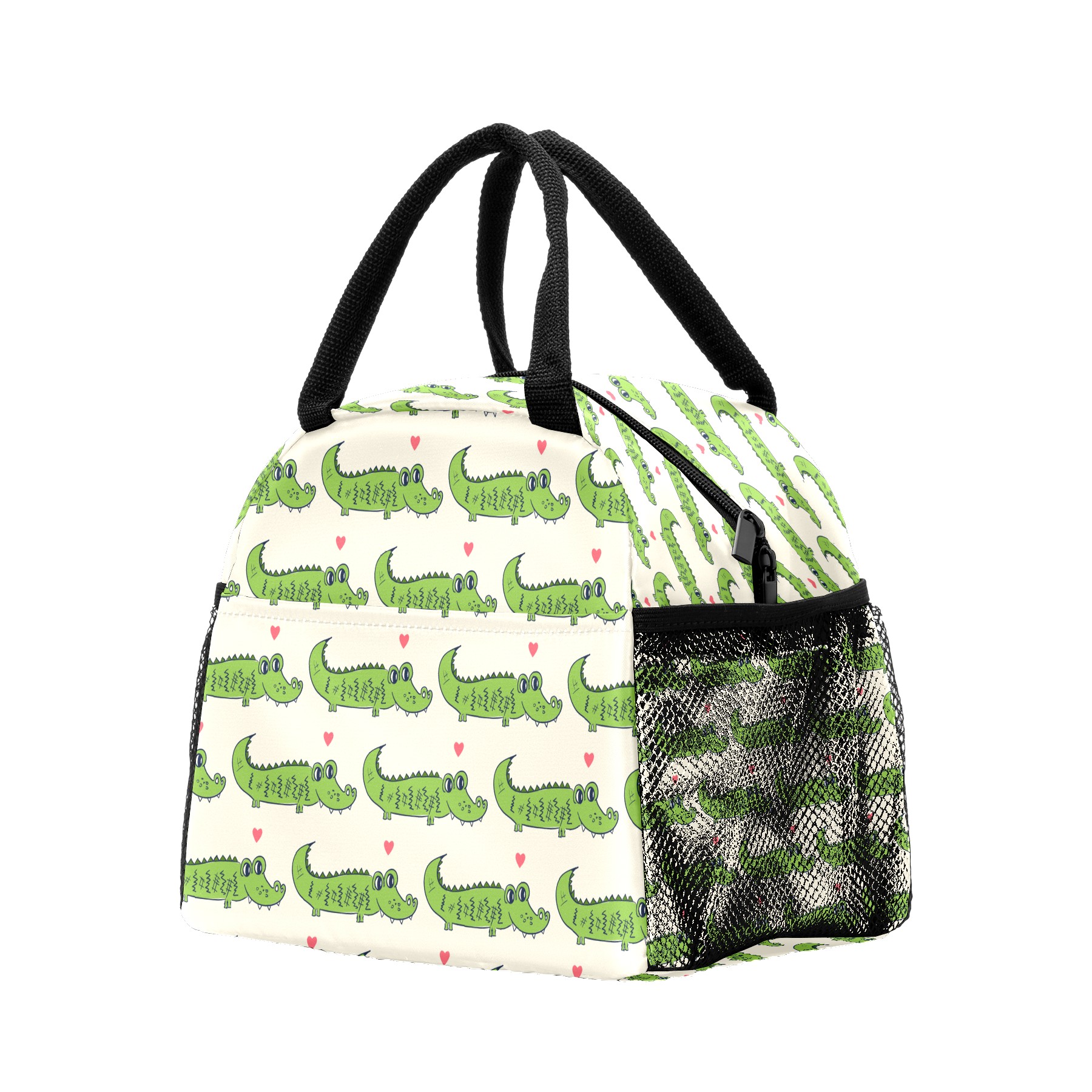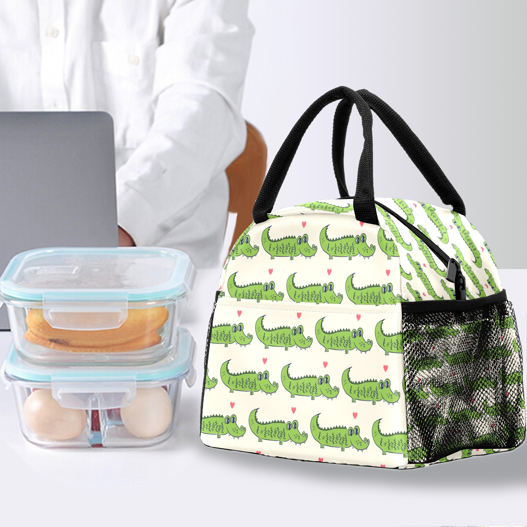 Lunch Bag for Women Men, Green Crocodile Pattern Insulated Reusable Lunch Box Thermal Cooler Tote Bag for Work Picnic Hiking Travel Beach