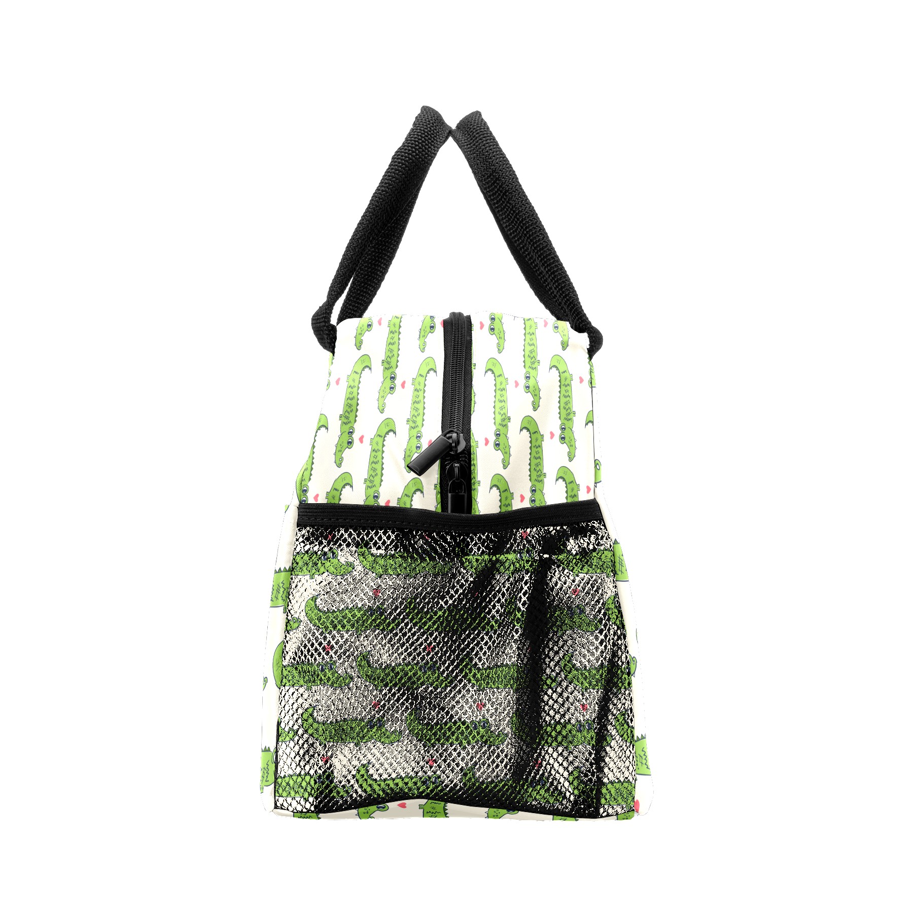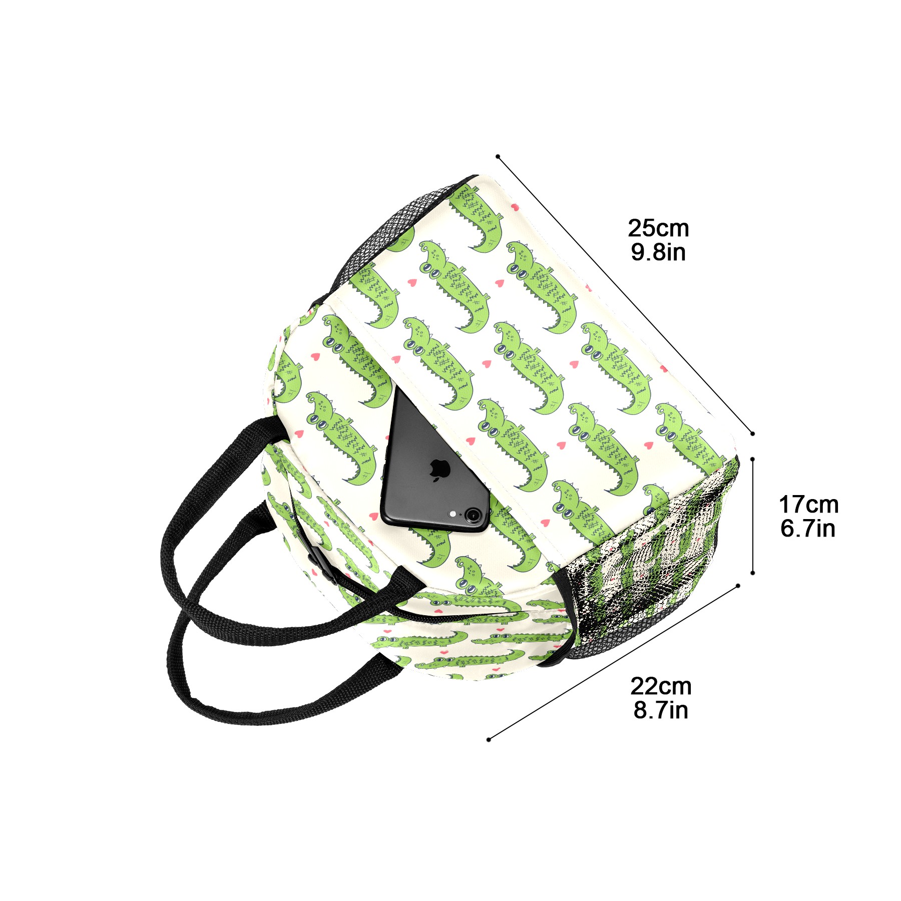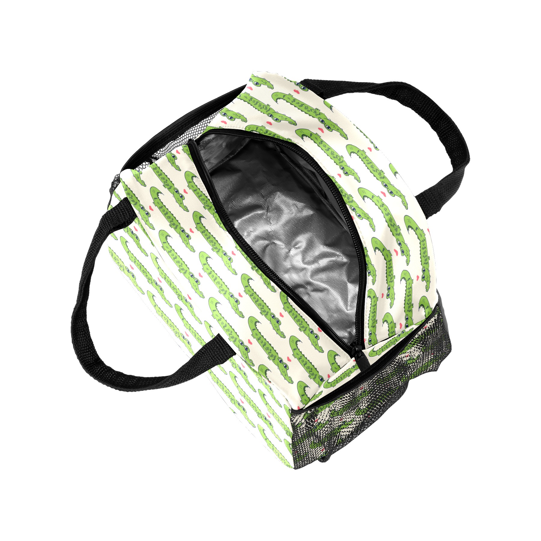 Lunch Bag for Women Men, Green Crocodile Pattern Insulated Reusable Lunch Box Thermal Cooler Tote Bag for Work Picnic Hiking Travel Beach