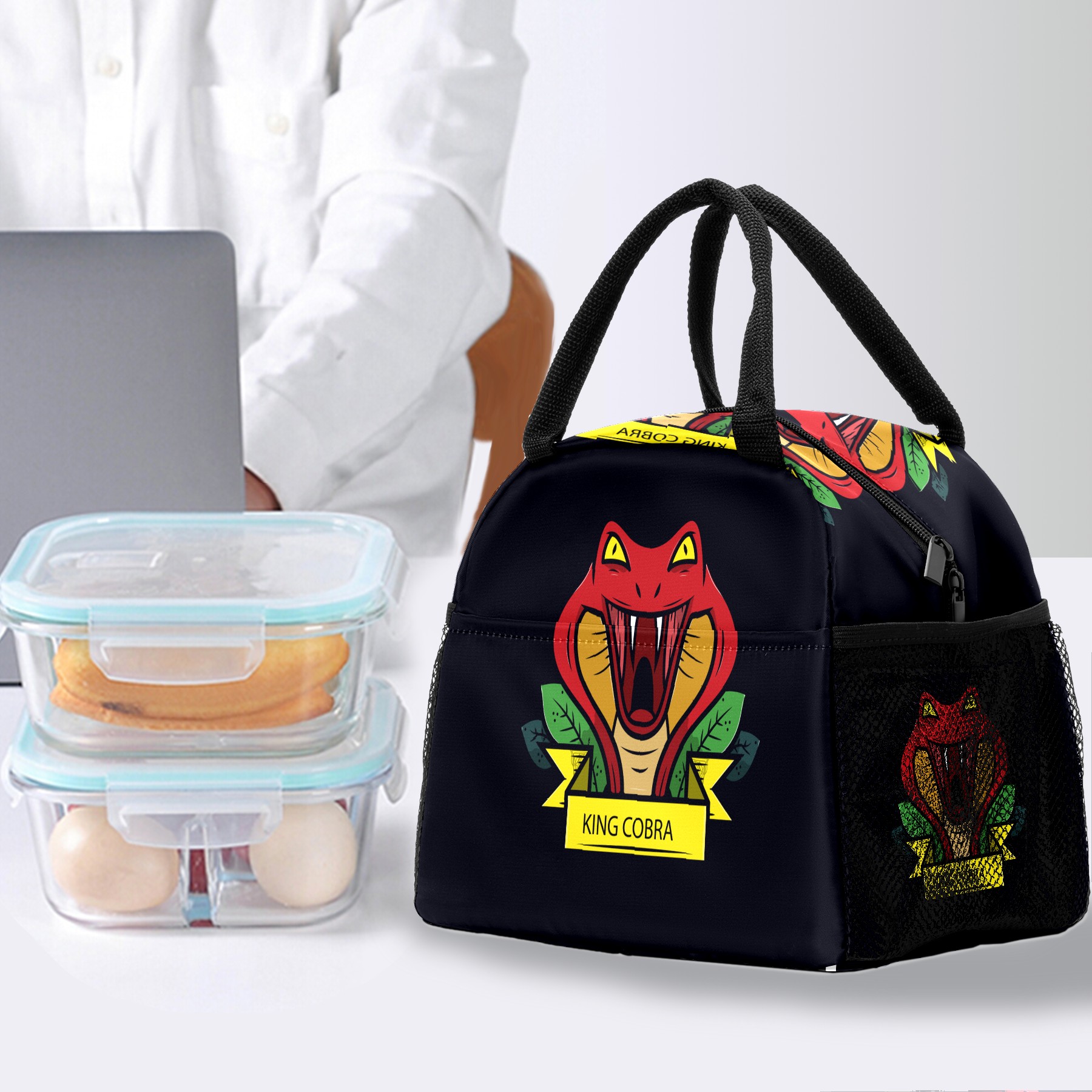 Lunch Bag for Women Men, Funny Snake Insulated Reusable Lunch Box Thermal Cooler Tote Bag for Work Picnic Hiking Travel Beach