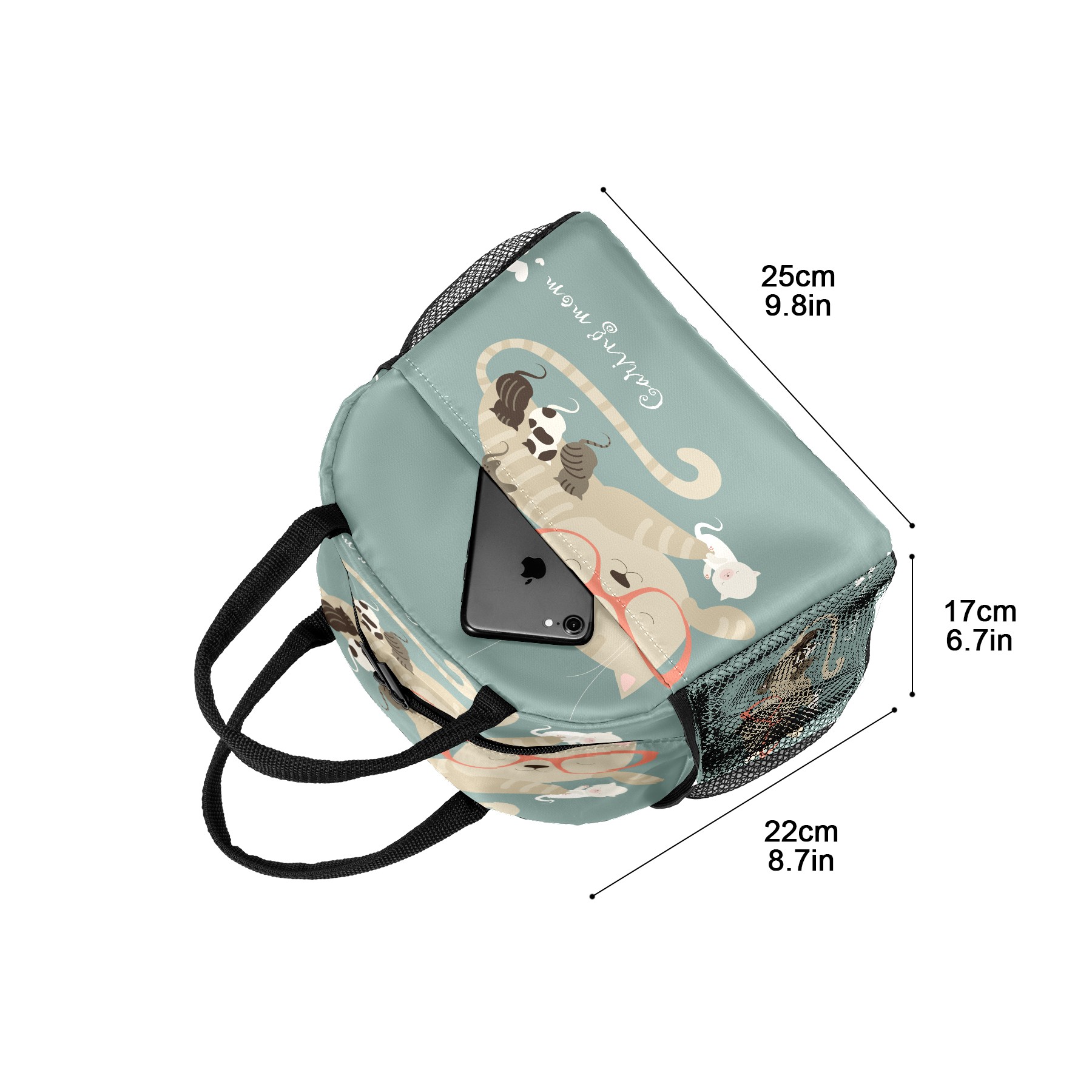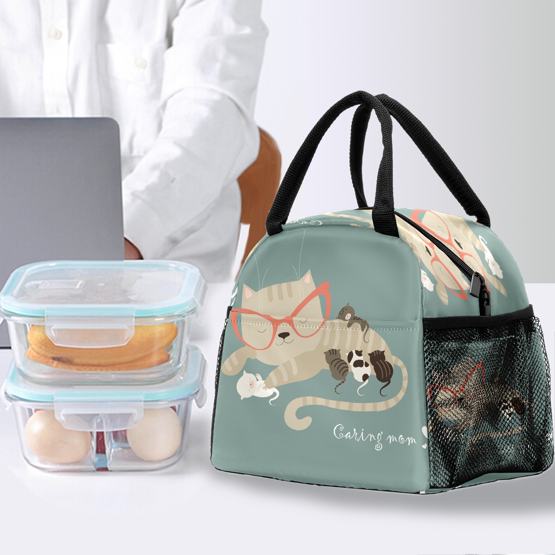 Lunch Bag for Women Men, Funny Sleeping Cat Insulated Reusable Lunch Box Thermal Cooler Tote Bag for Work Picnic Hiking Travel Beach