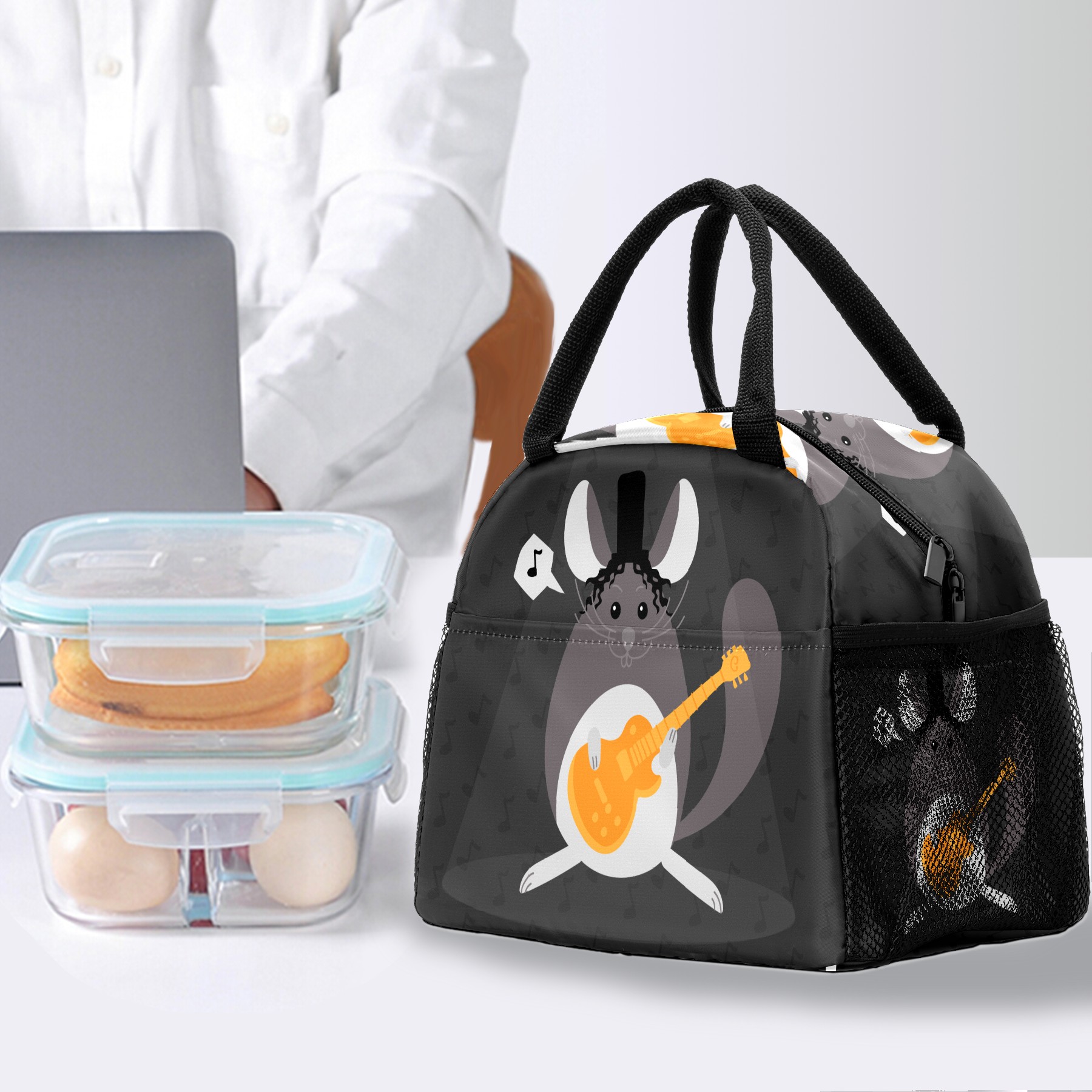 Lunch Bag for Women Men, Funny Mouse Play The Guitar Insulated Reusable Lunch Box Thermal Cooler Tote Bag for Work Picnic Hiking Travel Beach