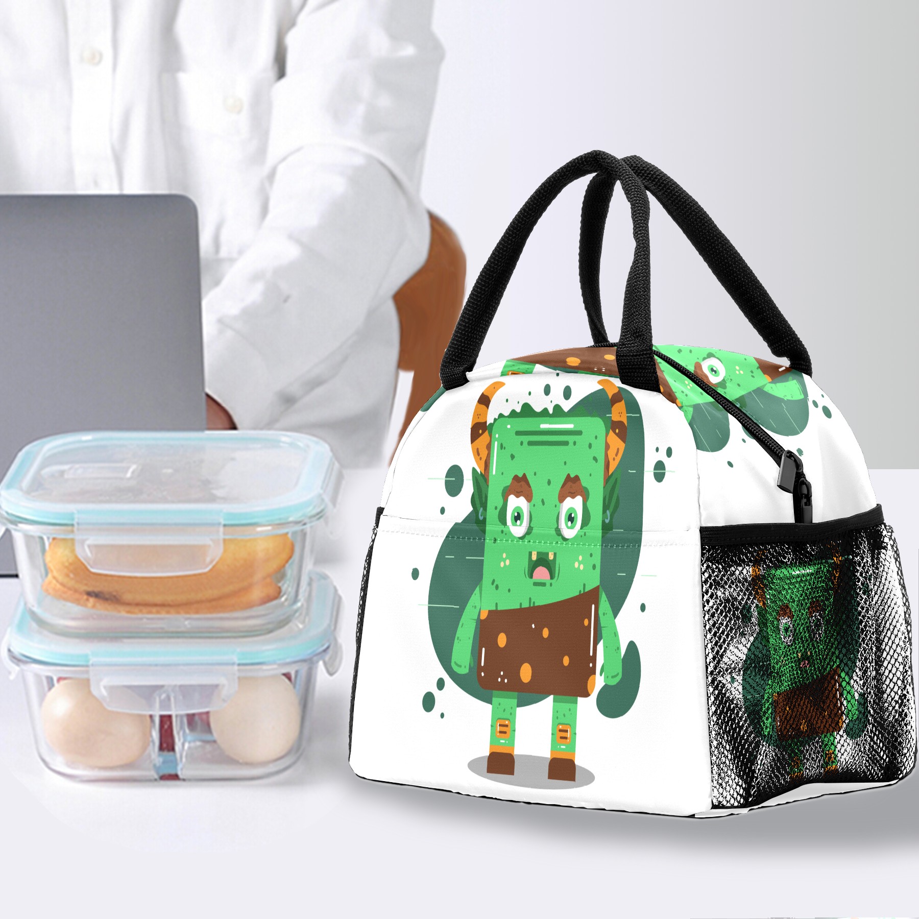 Lunch Bag for Women Men, Funny Monster Insulated Reusable Lunch Box Thermal Cooler Tote Bag for Work Picnic Hiking Travel Beach