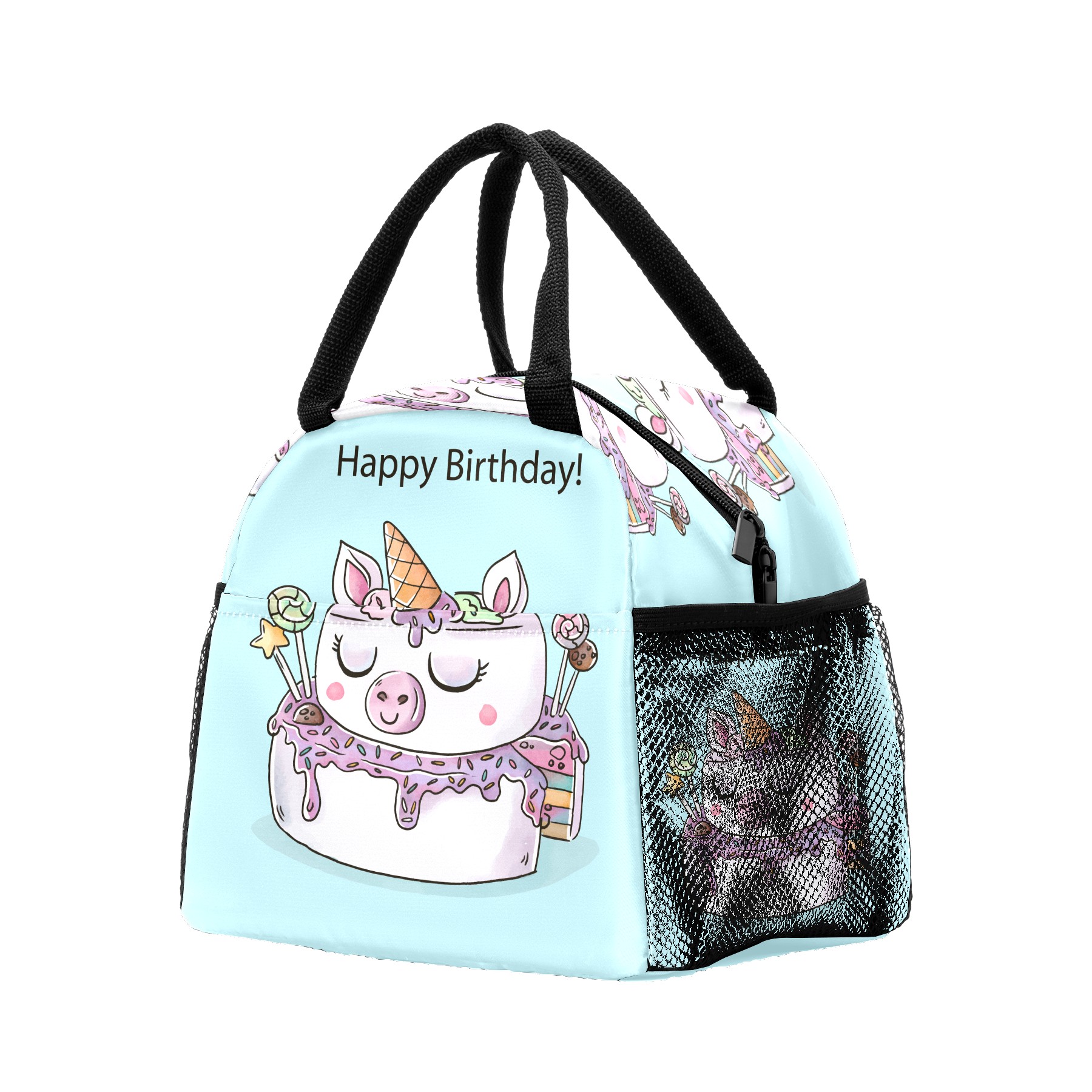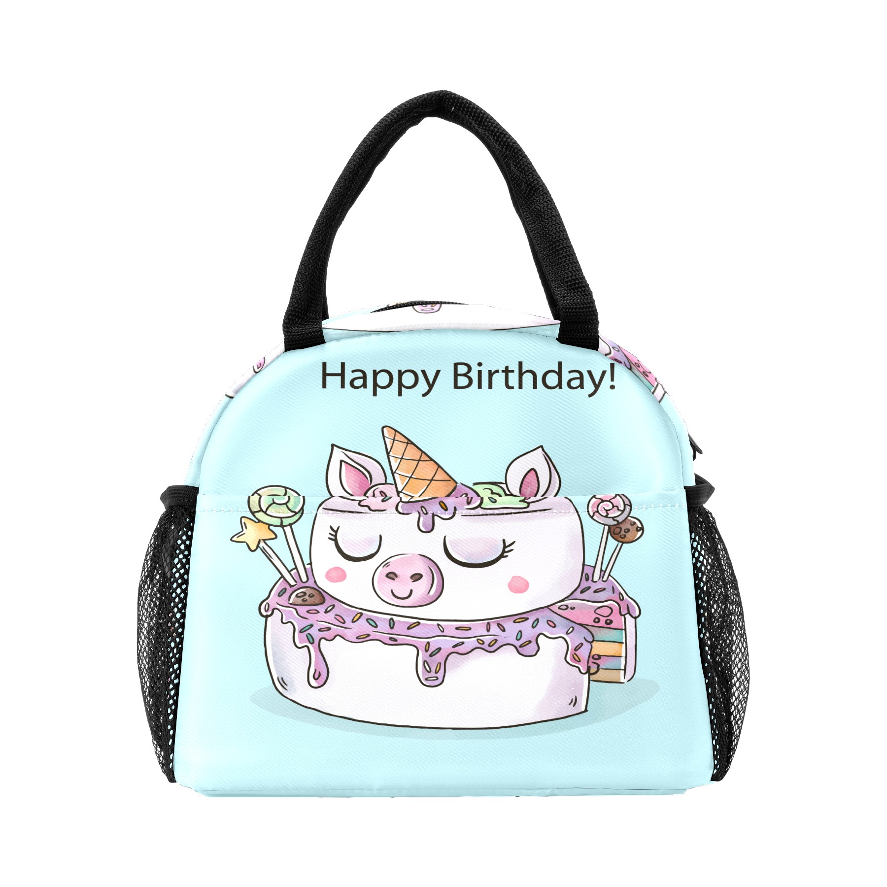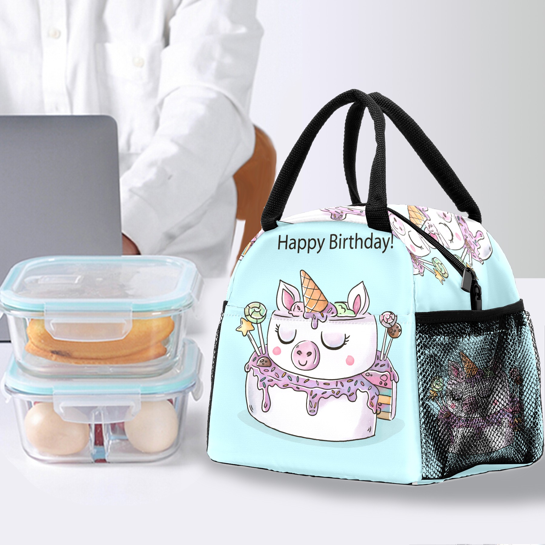 Lunch Bag for Women Men, Funny Cute Pig Unicorn Cake Happy Birthday Insulated Reusable Lunch Box Thermal Cooler Tote Bag for Work Picnic Hiking Travel Beach