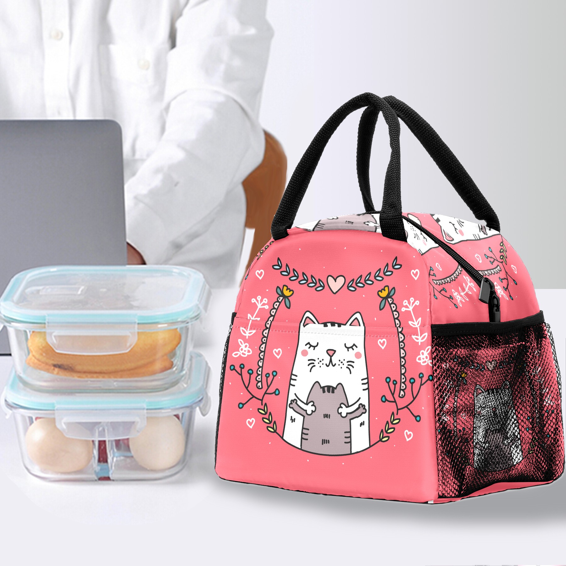 Lunch Bag for Women Men, Funny Cat With Mother Insulated Reusable Lunch Box Thermal Cooler Tote Bag for Work Picnic Hiking Travel Beach