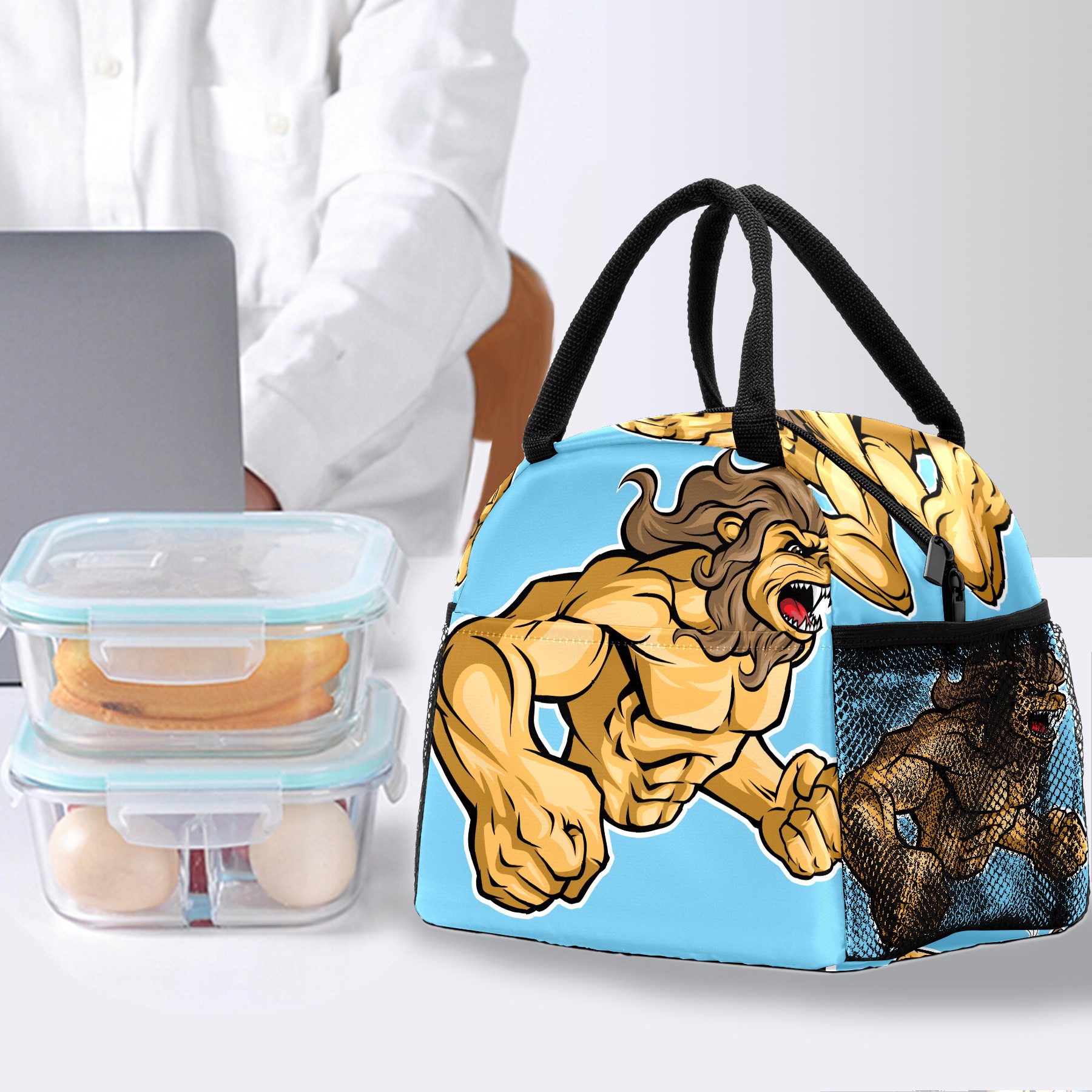 Lunch Bag for Women Men, Funny Cartoon Lion Insulated Reusable Lunch Box Thermal Cooler Tote Bag for Work Picnic Hiking Travel Beach