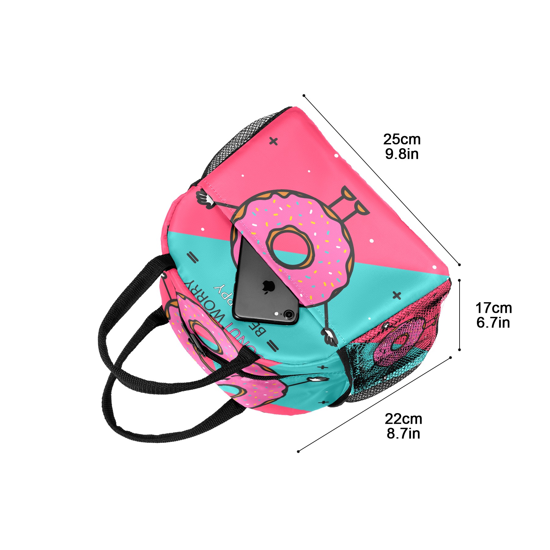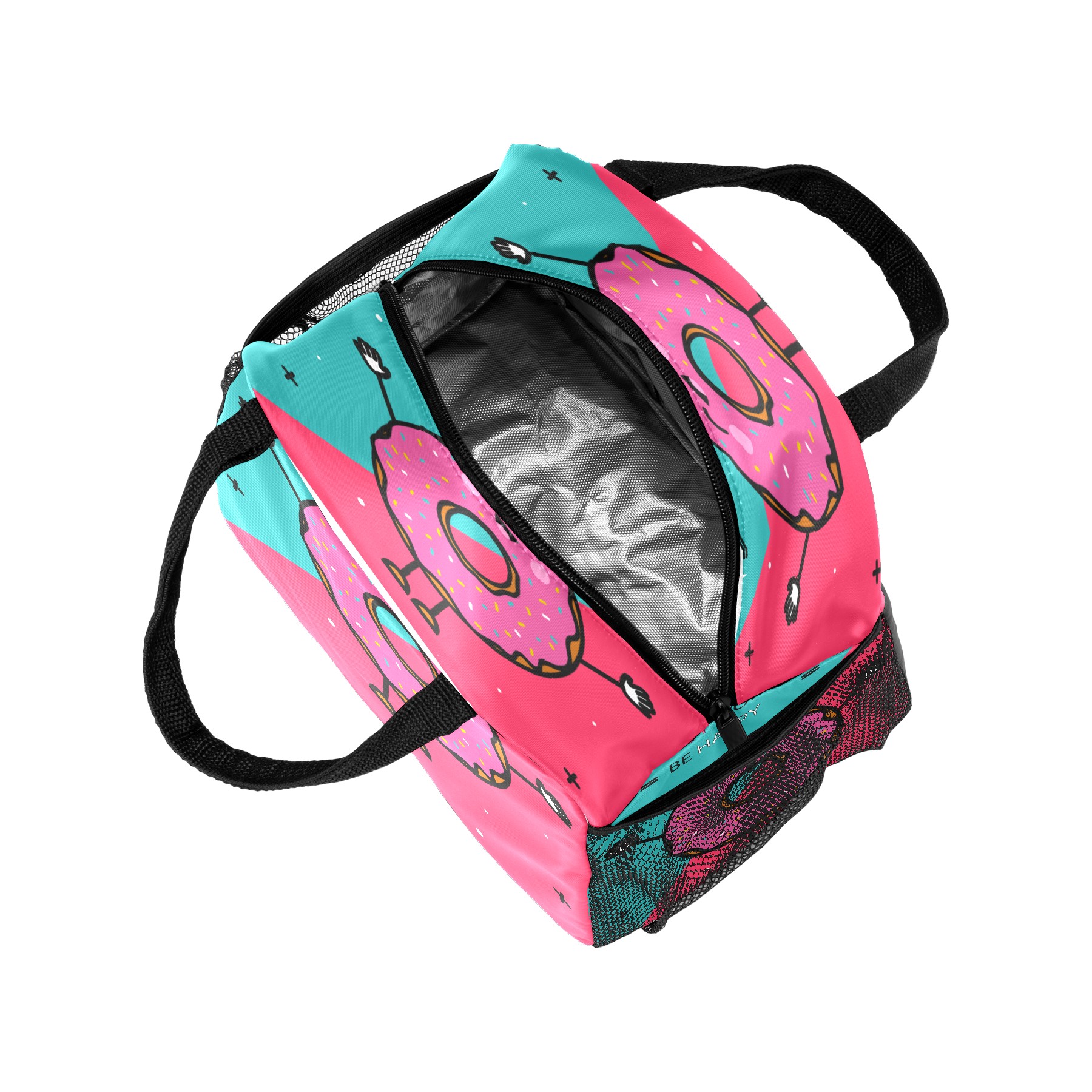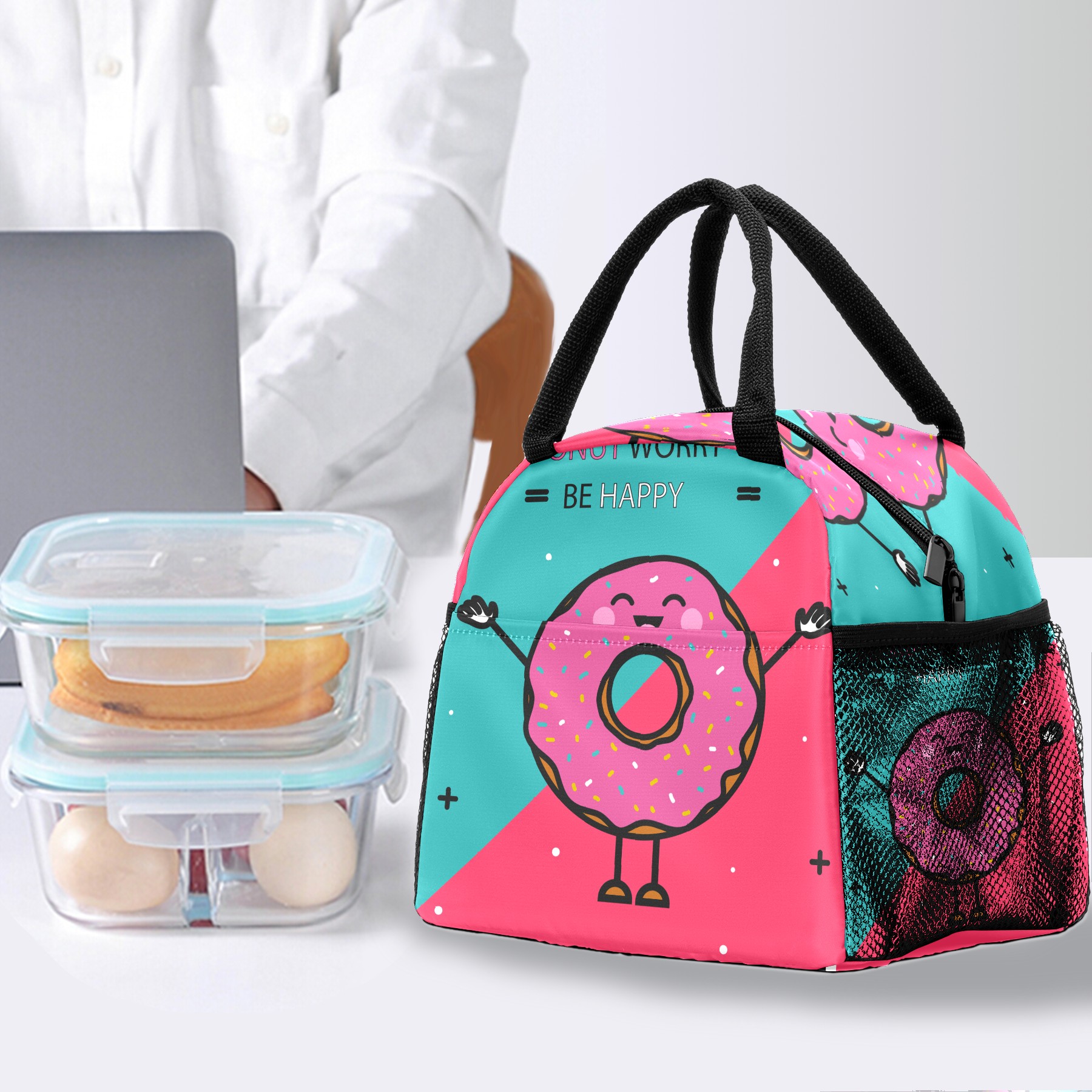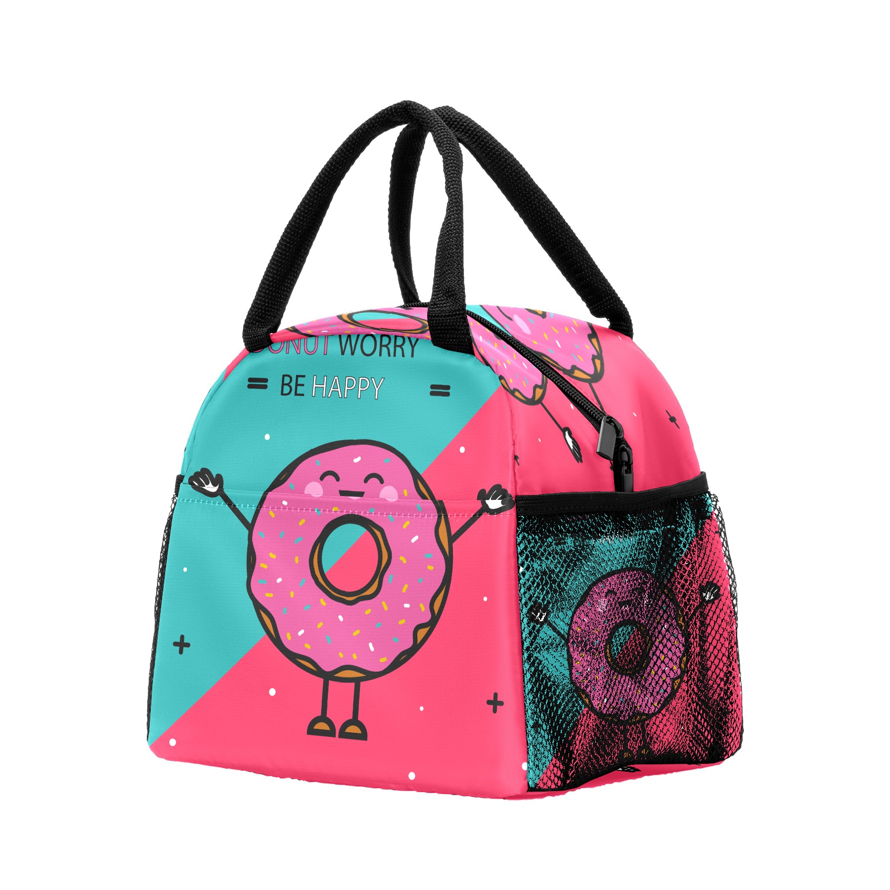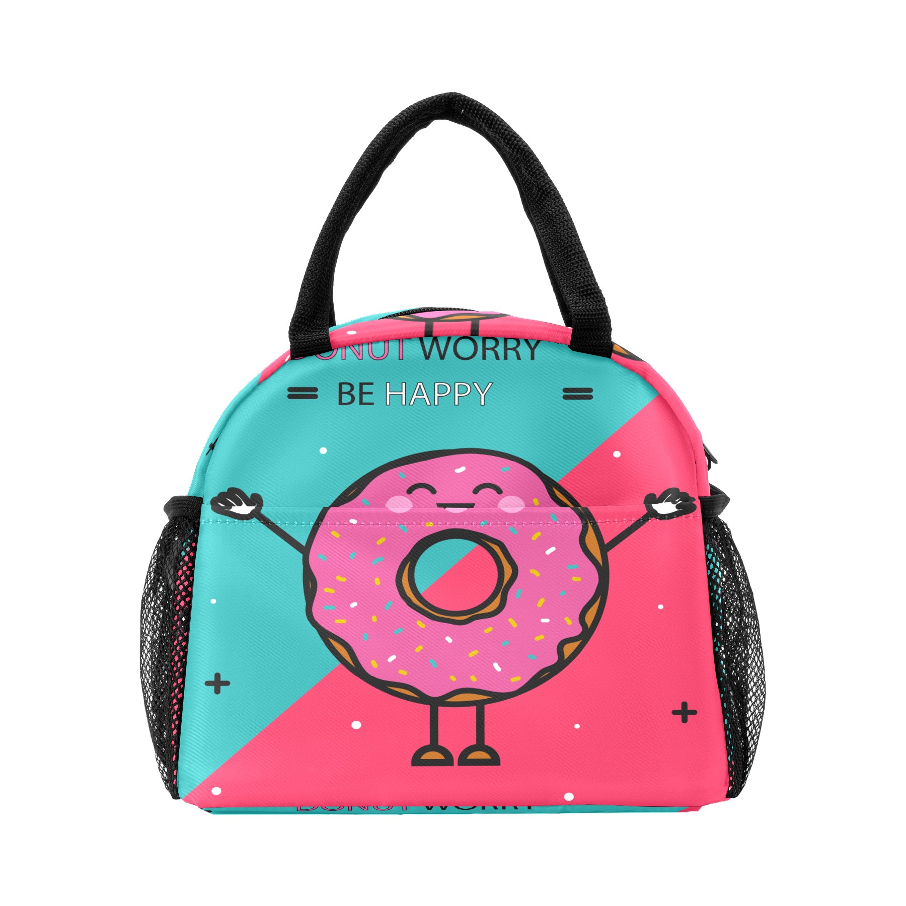 Lunch Bag for Women Men, Funny Cartoon Happy Donuts Insulated Reusable Lunch Box Thermal Cooler Tote Bag for Work Picnic Hiking Travel Beach